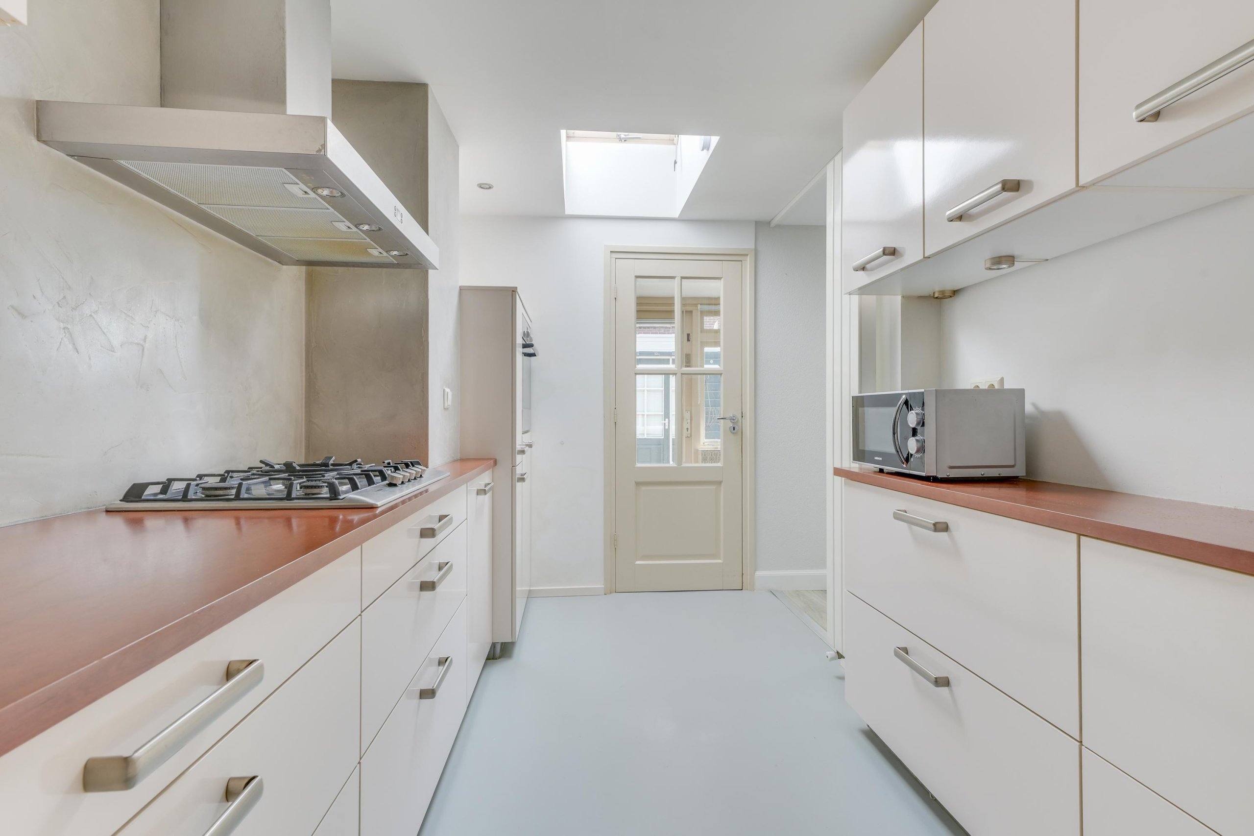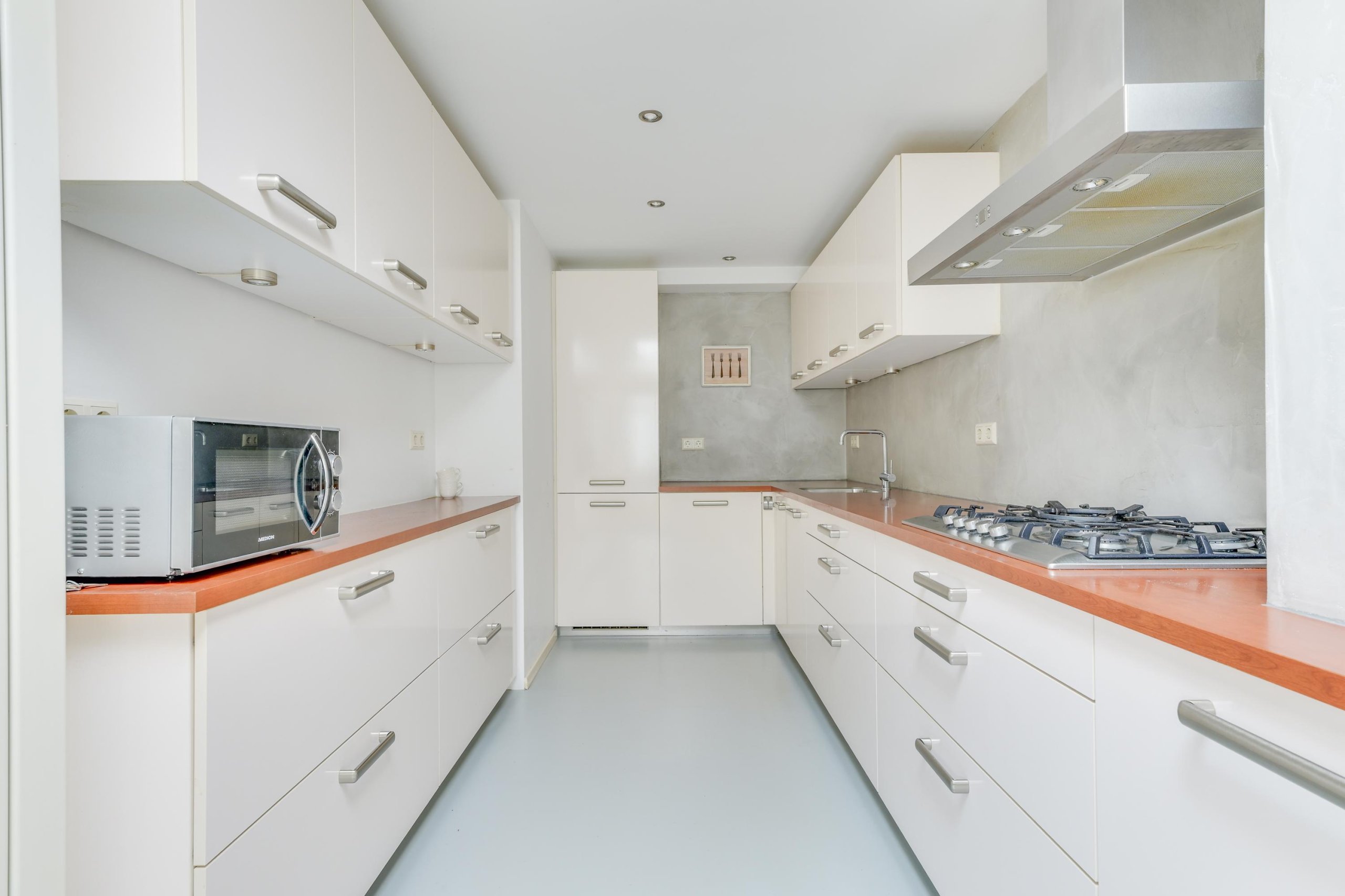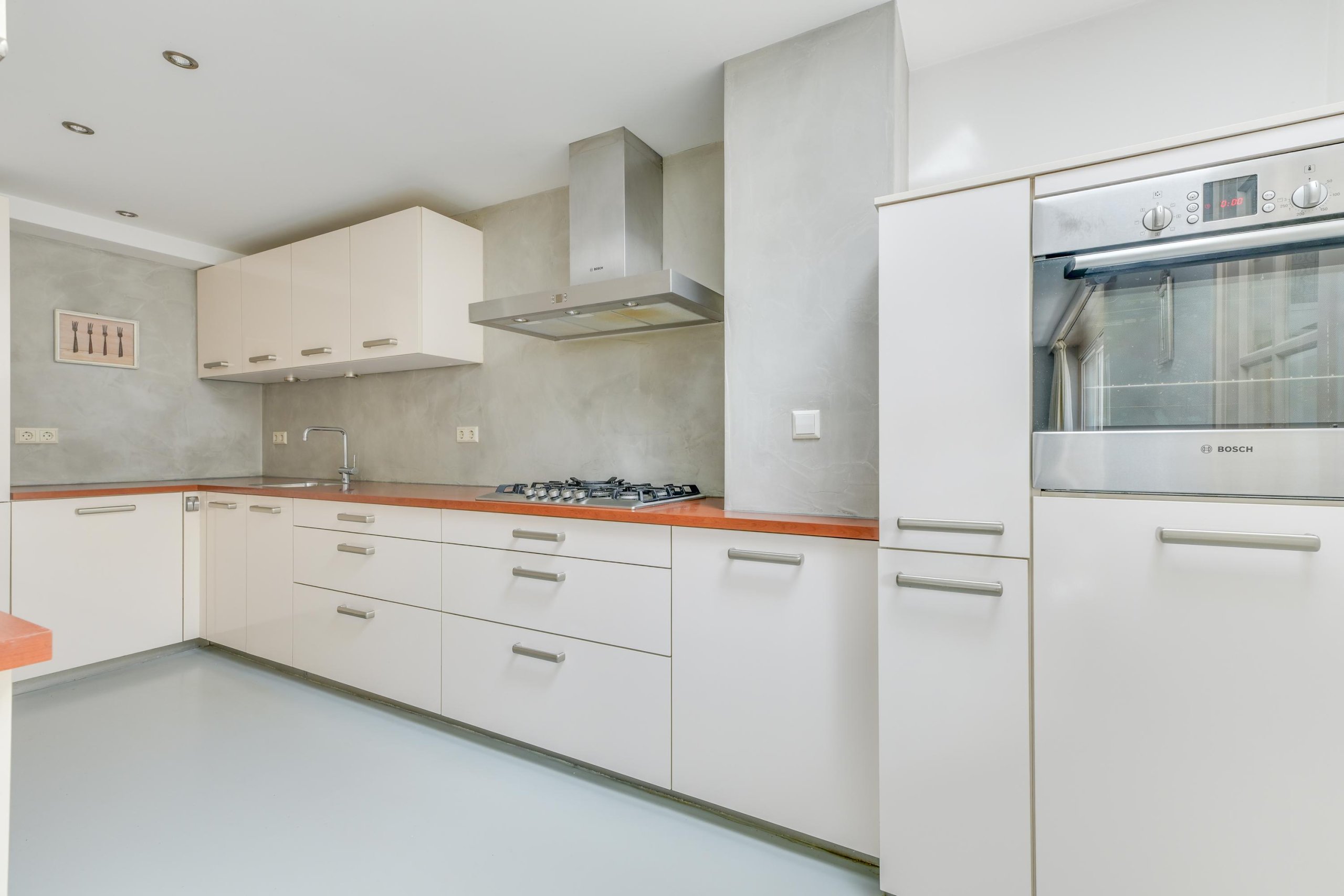 De keuken is afgesloten en sluit aan op de woonkamer. Deze is modern uitgevoerd en voorzien van diverse apparatuur. Vanuit hier bereik je de aangebouwde bijkeuken met toiletruimte en toegang tot de tuin.