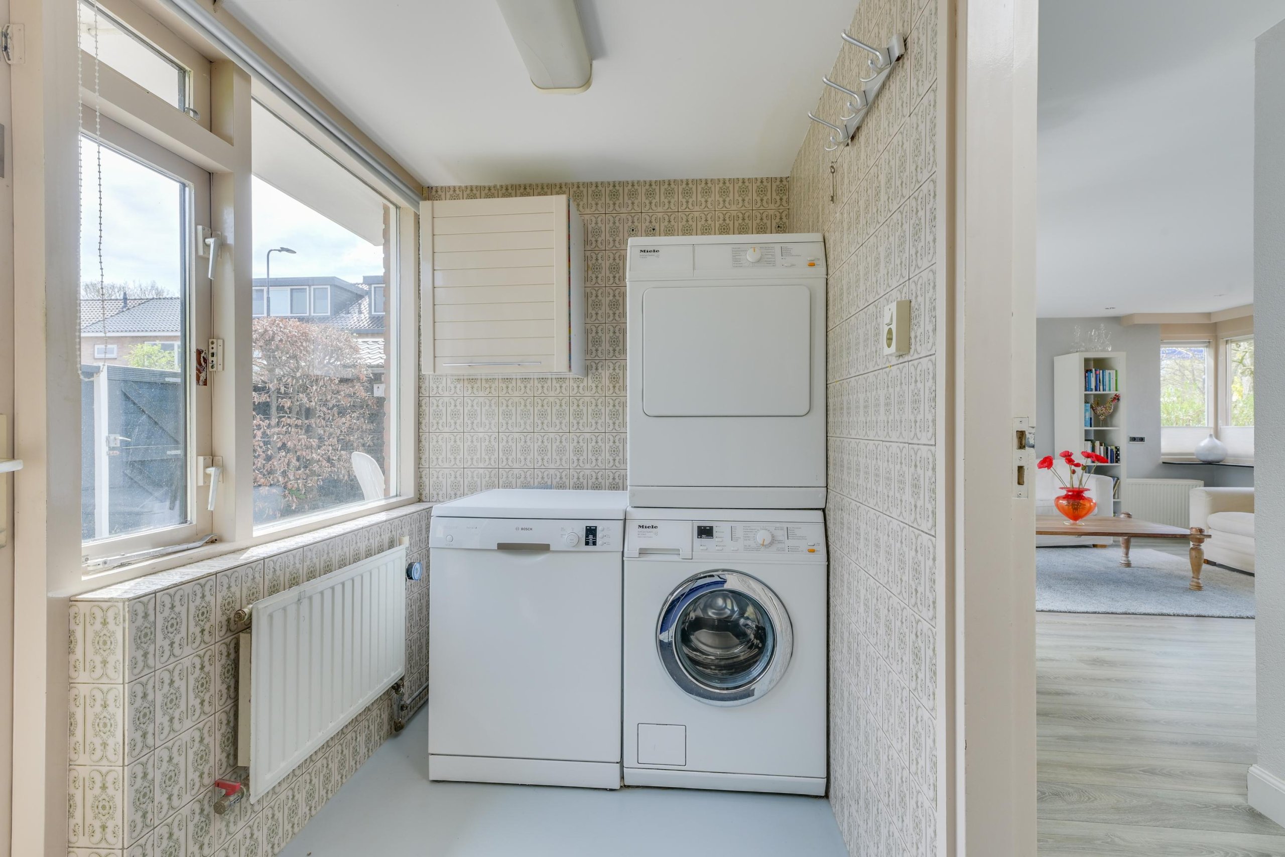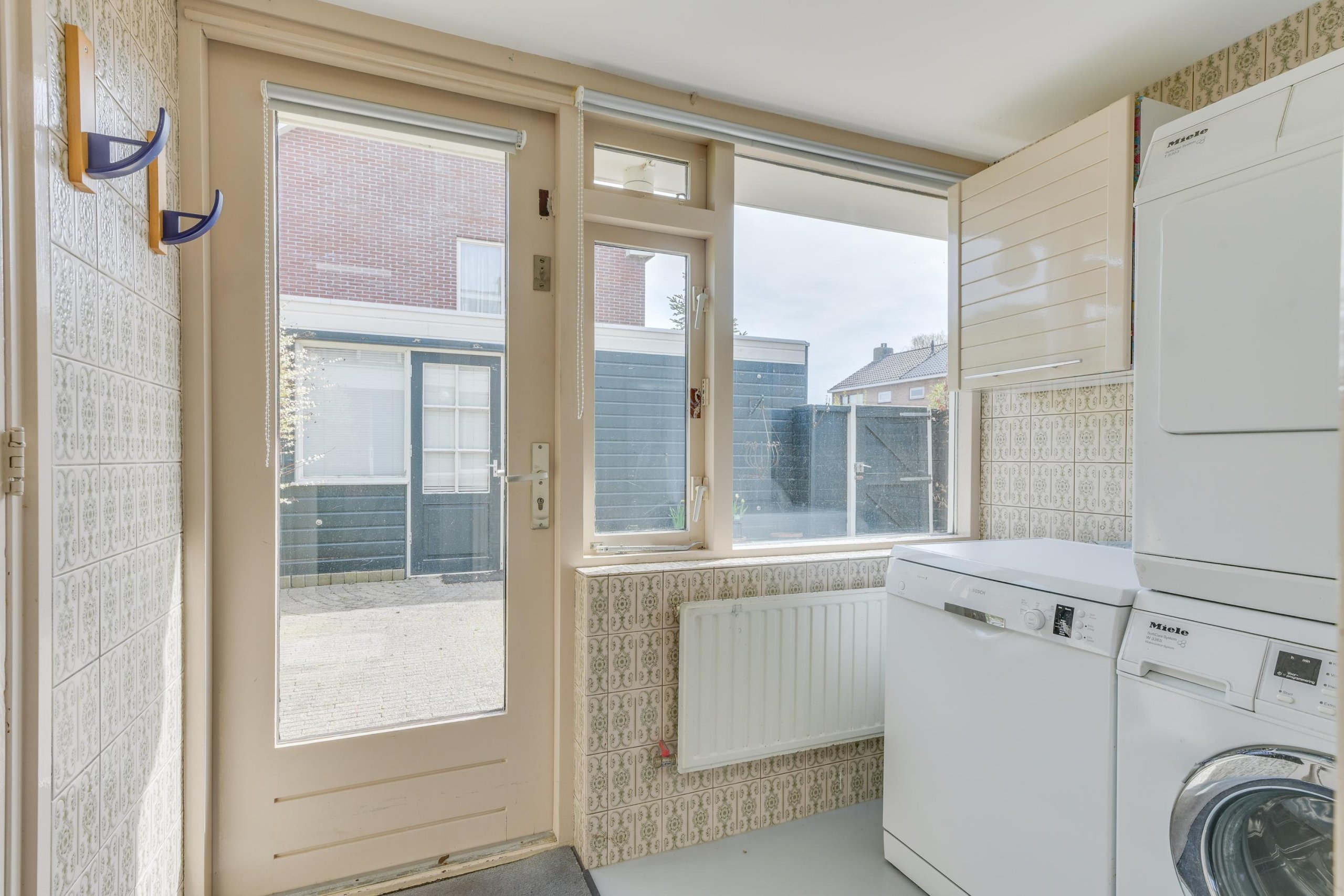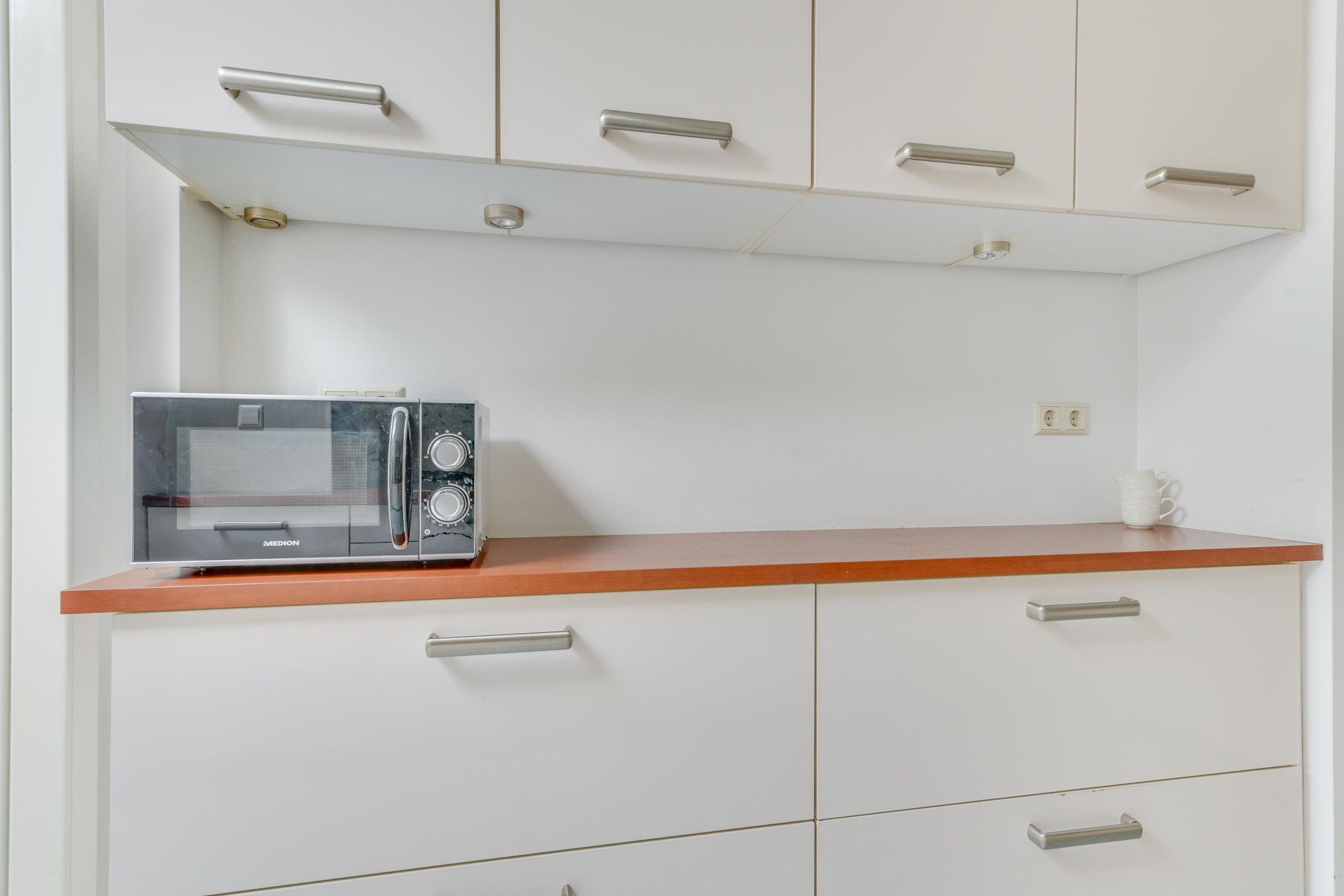 De keuken is afgesloten en sluit aan op de woonkamer. Deze is modern uitgevoerd en voorzien van diverse apparatuur. Vanuit hier bereik je de aangebouwde bijkeuken met toiletruimte en toegang tot de tuin.