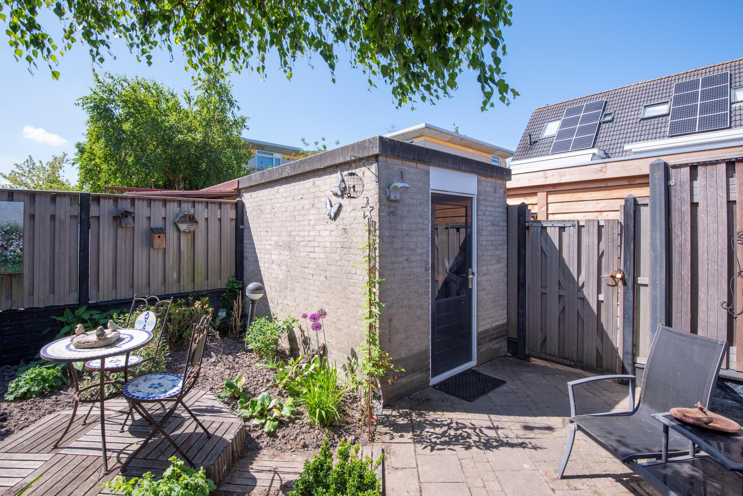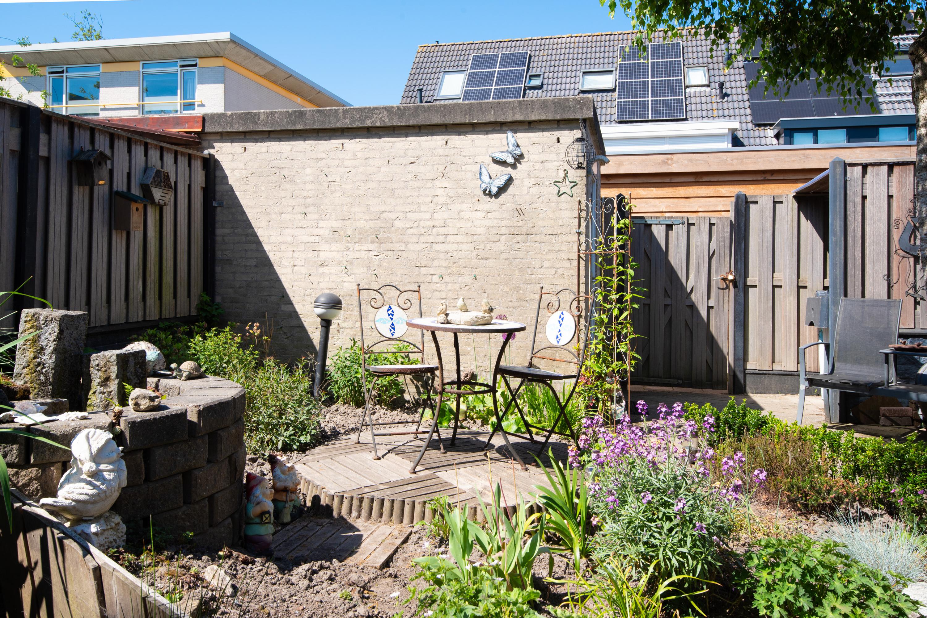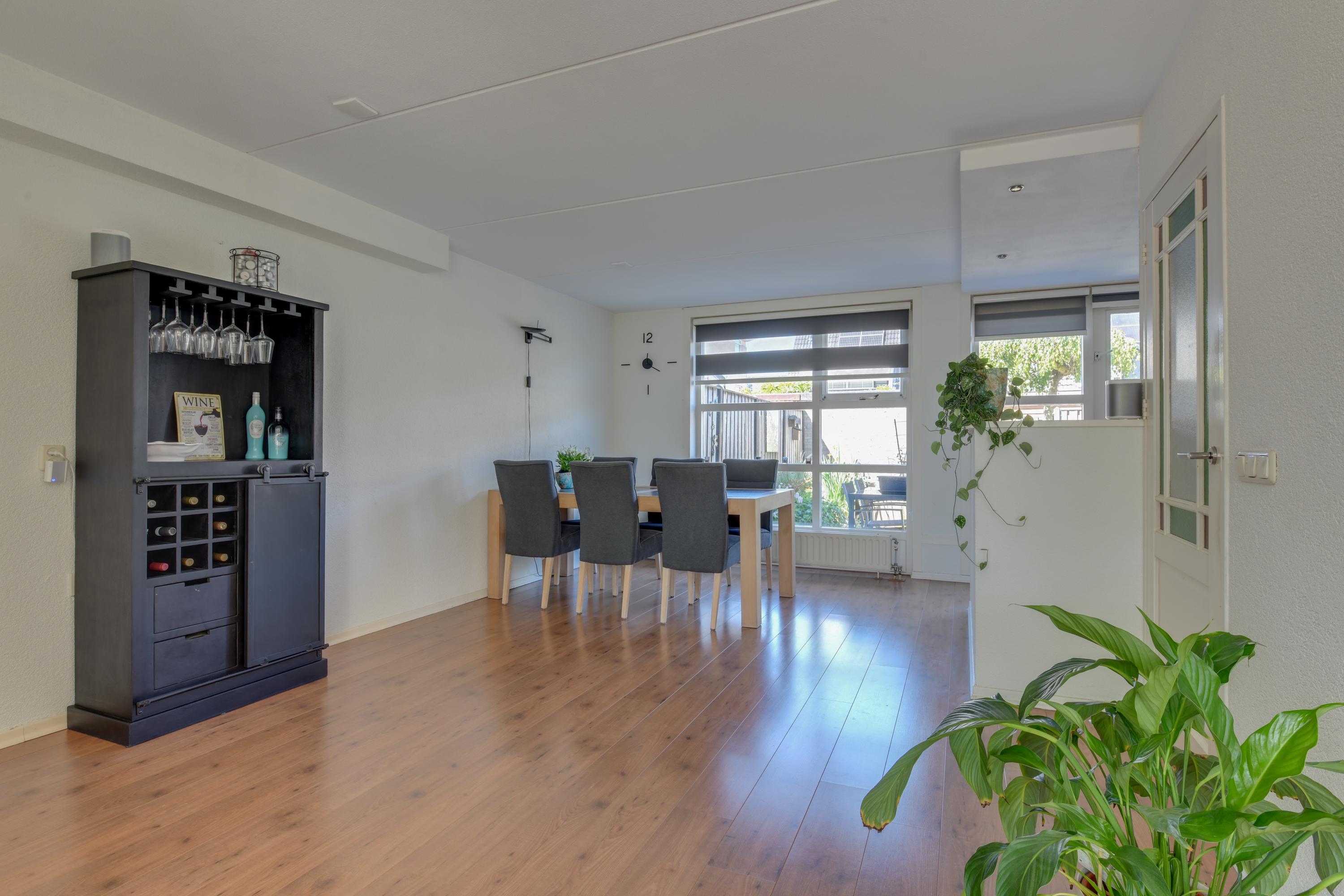 Je betreedt de woning via de ruime entree met meterkast (voorzien van voldoende groepen), een moderne toiletruimte en toegang tot het woongedeelte. De woonkamer bevindt zich aan de voorzijde en is licht en ruim opgezet. Aan de achterzijde ligt het eetgedeelte met een fraaie U-keuken, compleet uitgerust met alle wenselijke inbouwapparatuur. Via de loopdeur heb je direct toegang tot de zonnige en verzorgde achtertuin, voorzien van een stenen berging en een achterom.