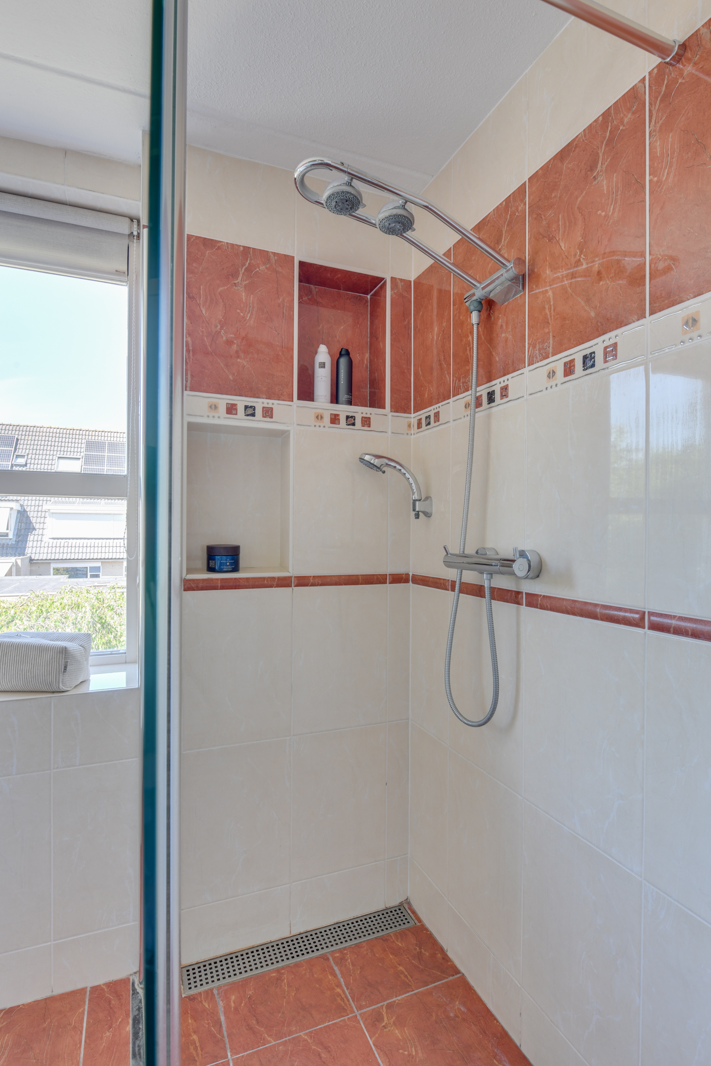 Op de eerste verdieping bevinden zich drie volwaardige slaapkamers, waarvan twee met vaste kasten. Genoeg slaapkamers voor gezinnen of om een fijne werkruimte te creëren. De ruime en nette badkamer is voorzien van een inloopdouche, dubbele wastafel en een toilet.