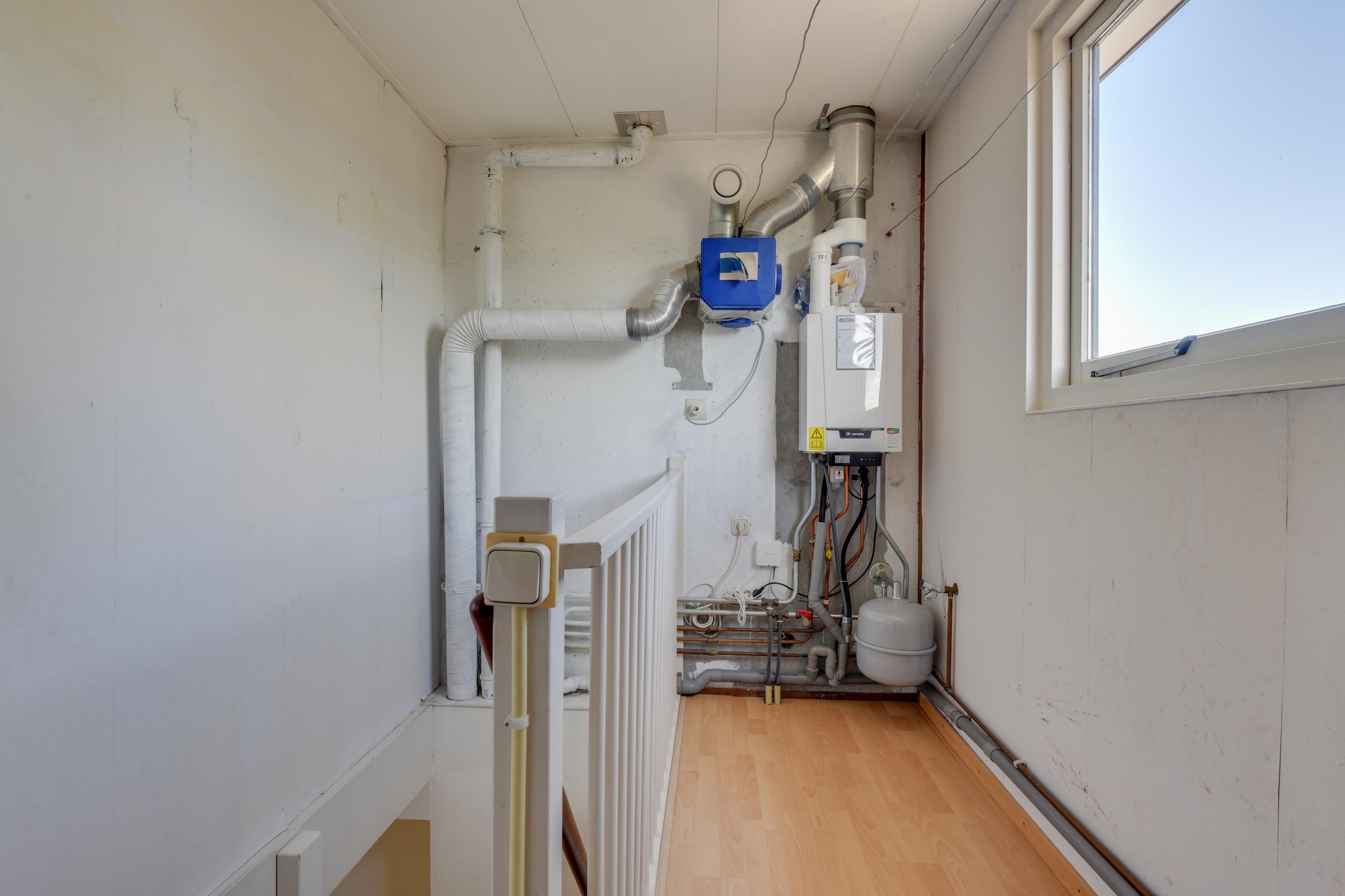 De zolderverdieping is praktisch ingedeeld met een voorzolder waar de cv-ketel en wasmachineopstelling zijn gesitueerd. Aansluitend vind je een ruime vierde slaapkamer, perfect als logeerkamer, tienerkamer of werkkamer.