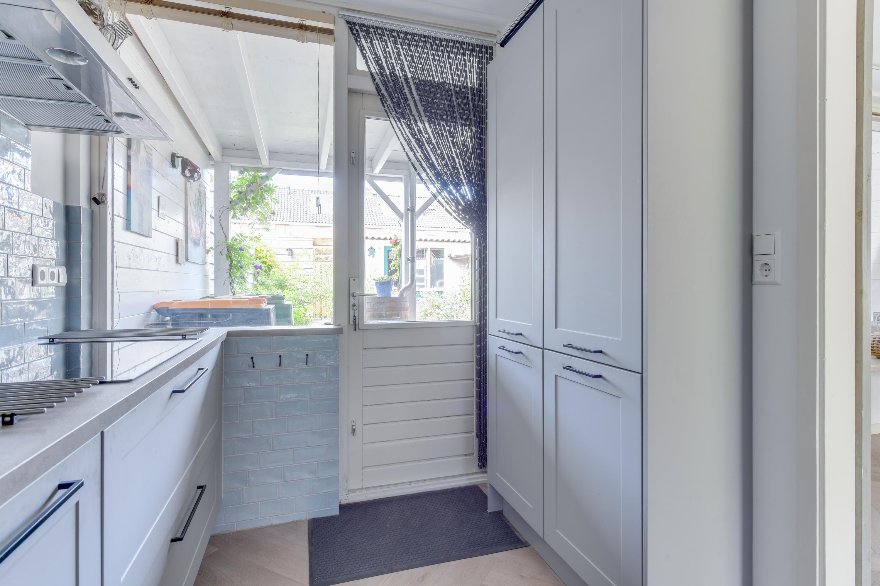 De keuken is modern uitgevoerd met een kunststof werkblad, grijze kastjes, een losstaande koel-/vriescombinatie (ter overname), 4-pits kookplaat, heteluchtoven, vaatwasser en volop kastruimte. Aan de achterzijde is er een grote raampartij richting de tuin, waardoor het geheel heerlijk licht aanvoelt.