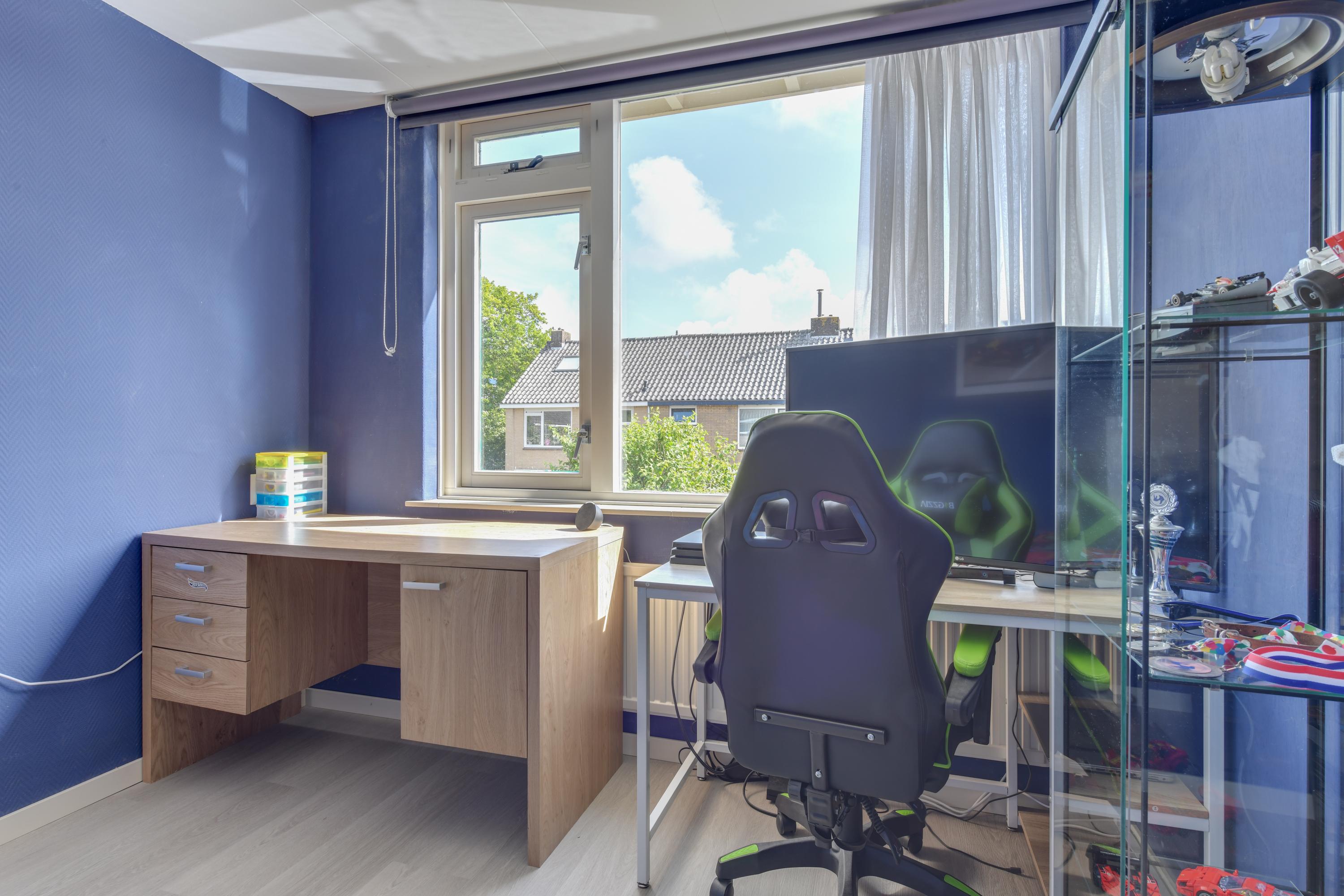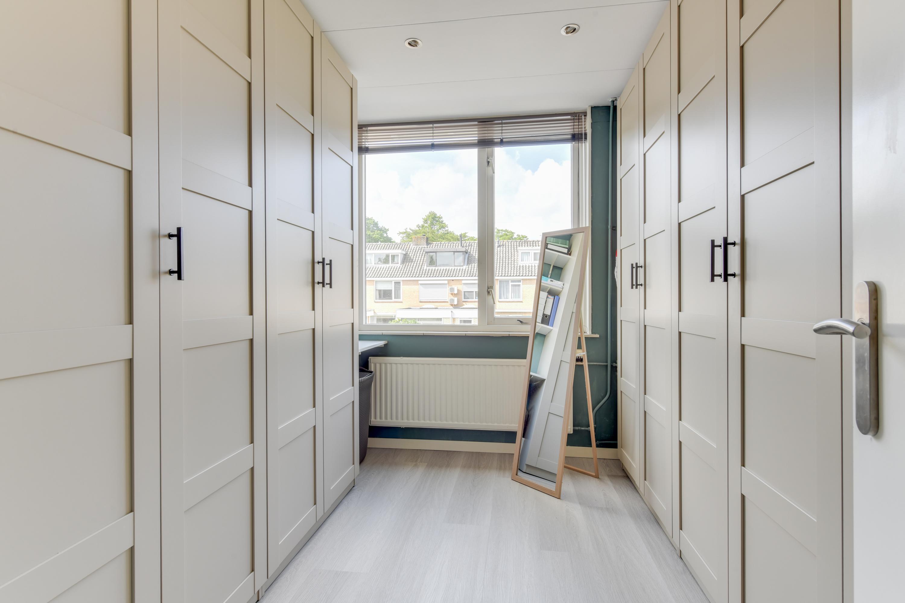 Op de eerste verdieping bevinden zich drie slaapkamers, alle voorzien van een PVC vloer en nette wandafwerking. Slaapkamer 1 is momenteel in gebruik als kledingkamer. Slaapkamer 2 is netjes en voorzien van een zonnescherm. Slaapkamer 3 is eveneens keurig afgewerkt en een vernieuwd kozijn en raam.