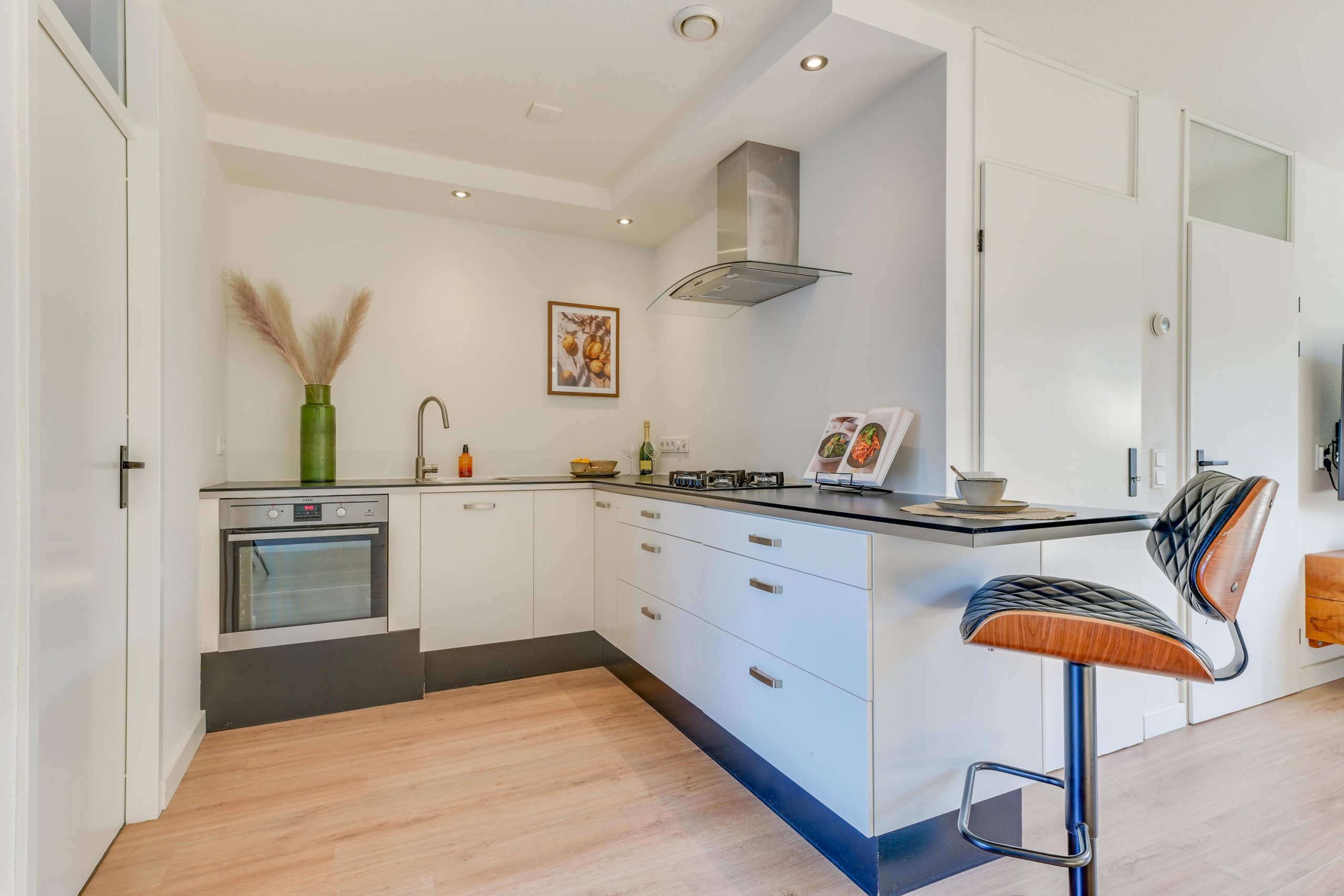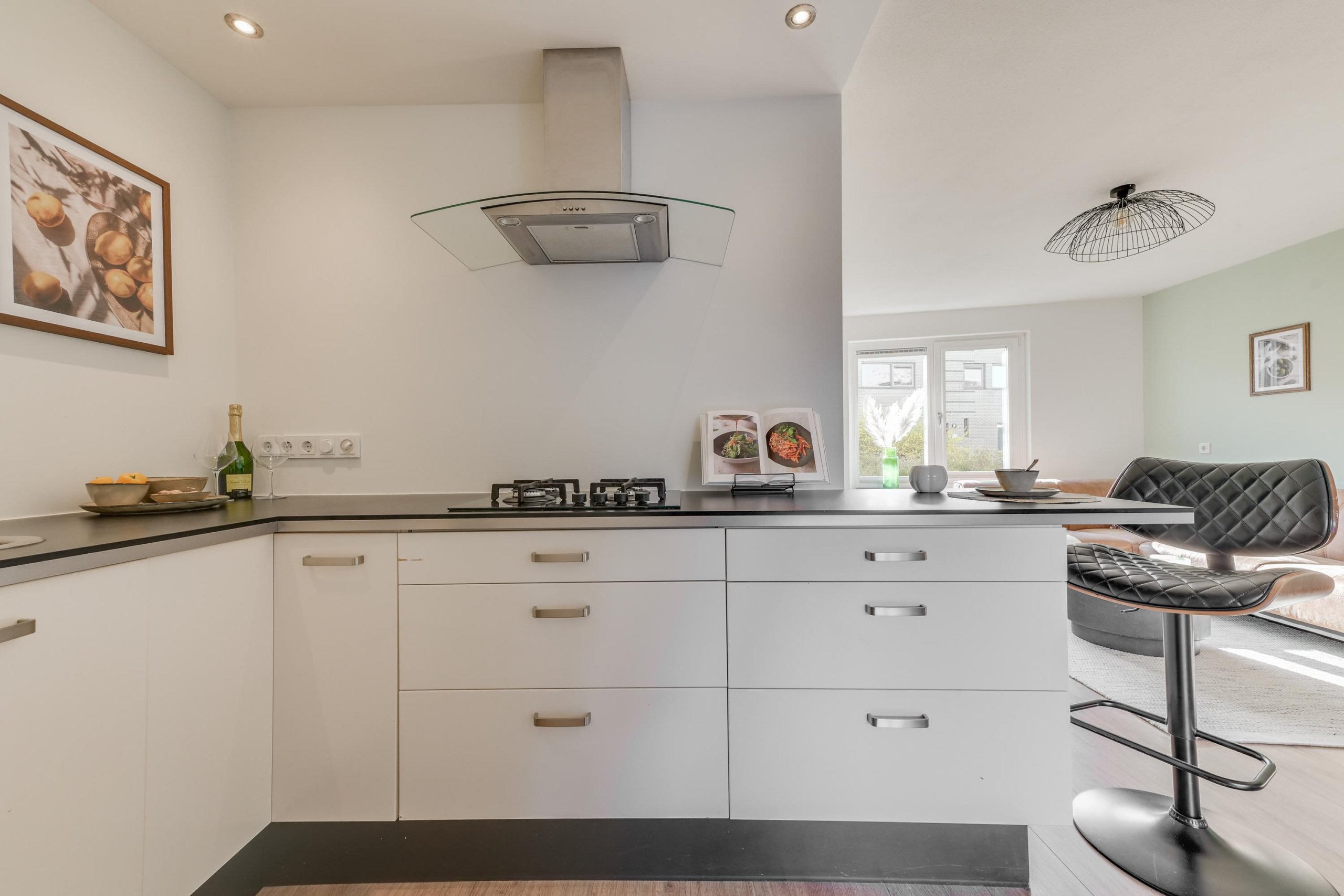 - Luxe L-keuken met inbouwapparatuur;