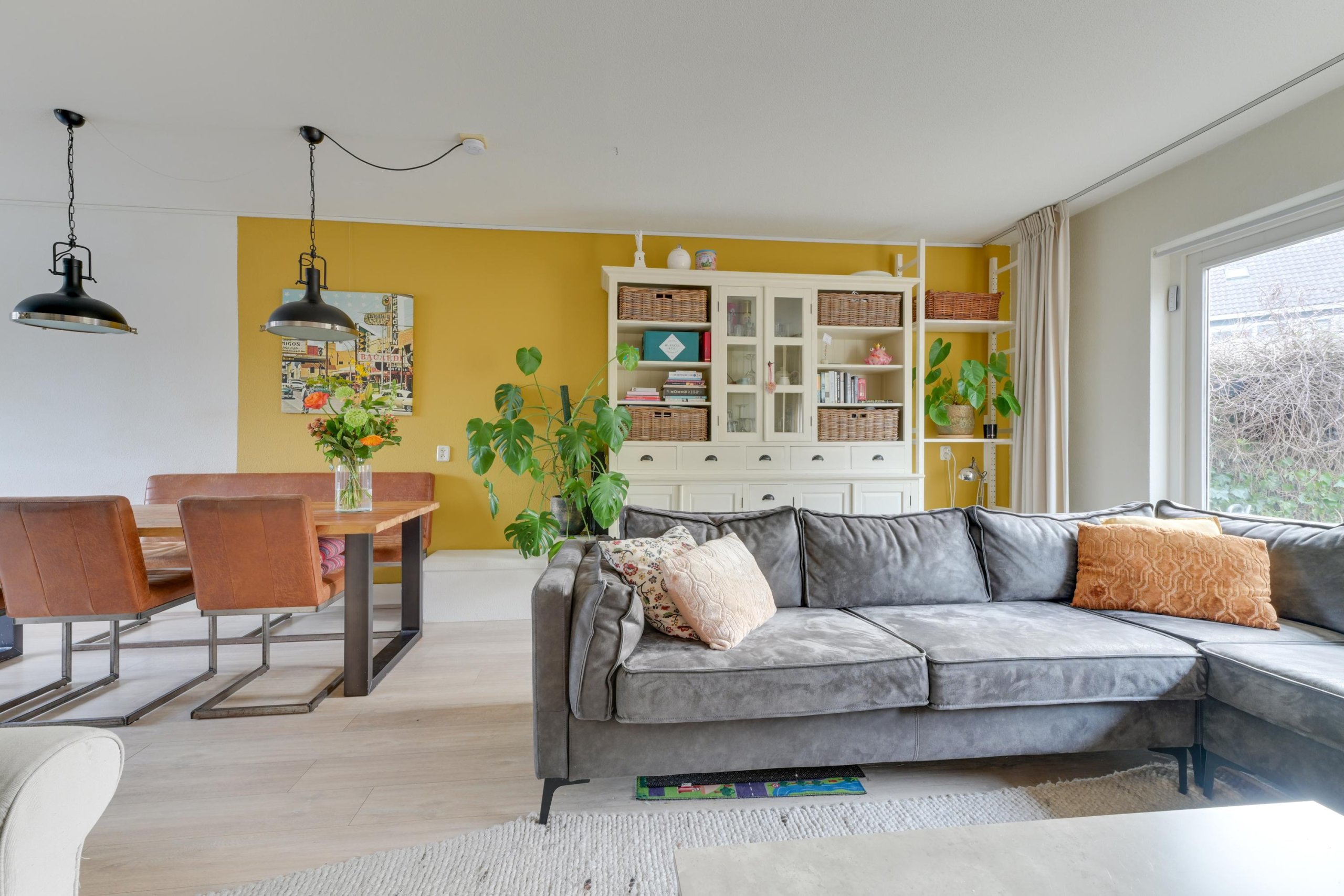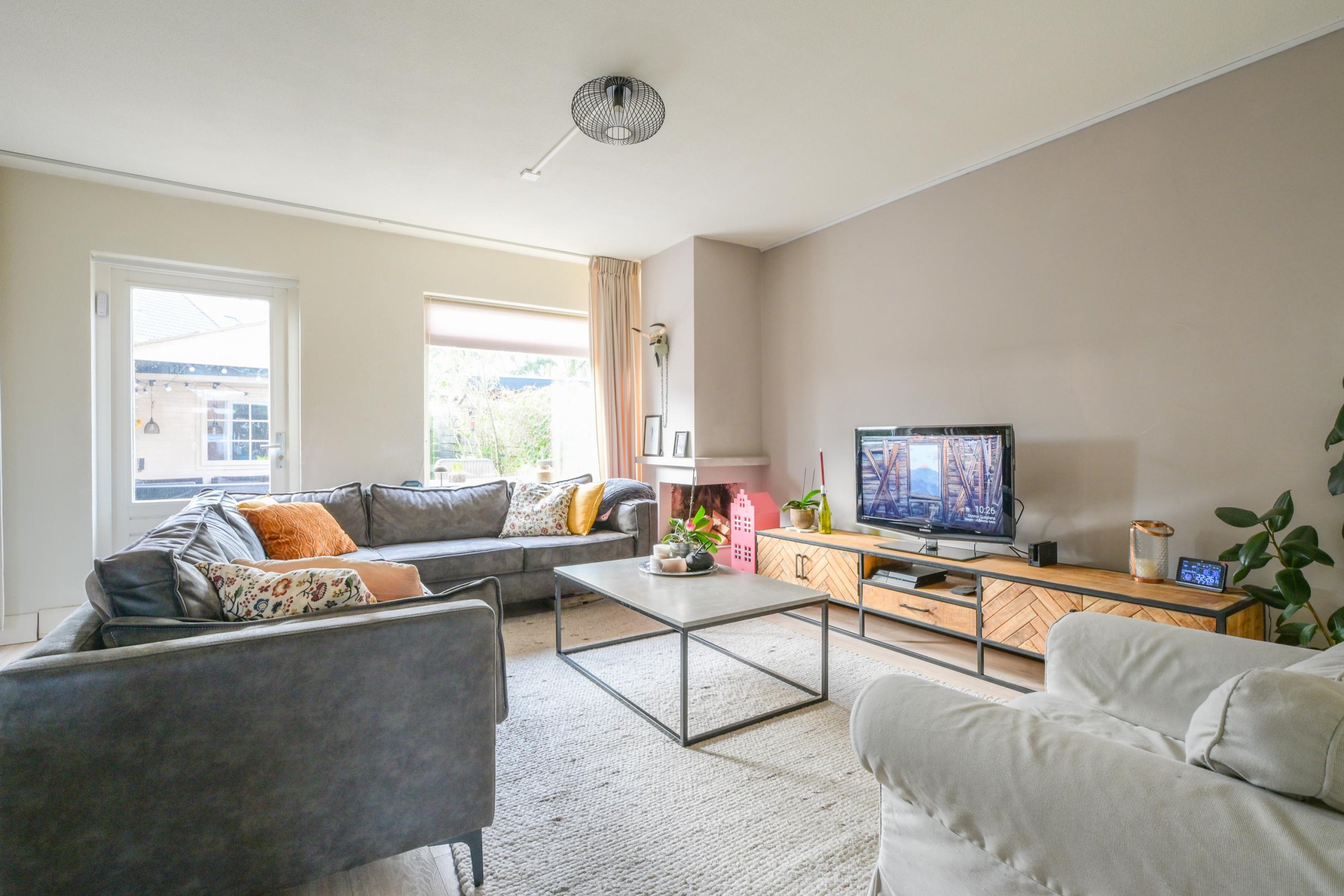 De woonkamer is prettig van formaat en door de ligging aan de tuin heerlijk licht. De open haard is momenteel niet in gebruik, maar draagt bij aan de sfeer en biedt mogelijkheden voor de toekomst. Aan de buitenzijde is een zonnescherm aanwezig.