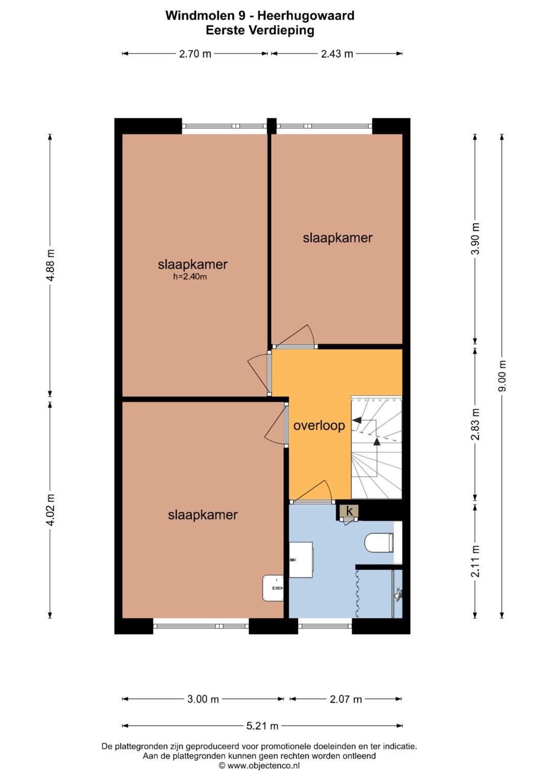 Vanaf de overloop is er toegang tot 3 slaapkamers en de badkamer.
