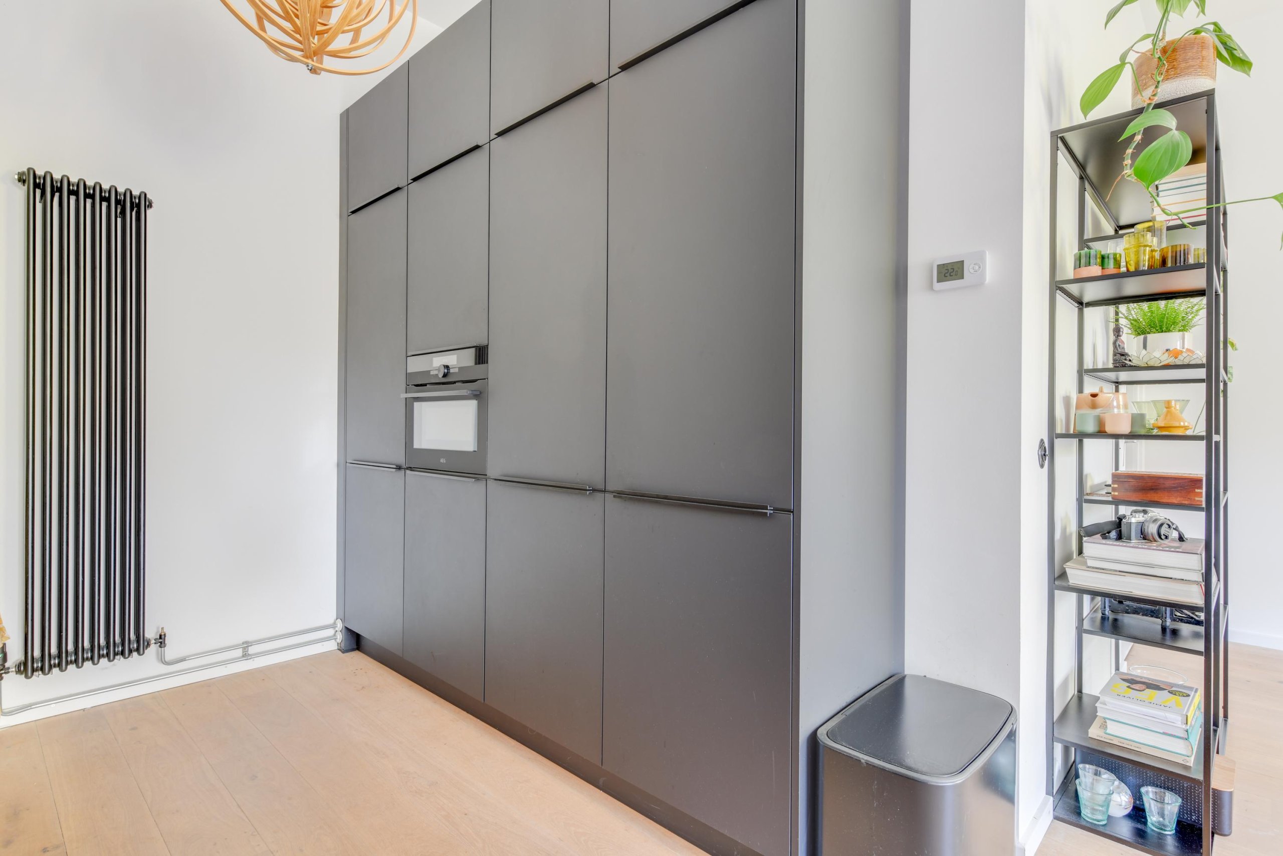 Tweede woonlaag: Bij binnenkomst valt direct de warme sfeer op. De gehele verdieping is voorzien van een fraaie eikenhouten vloer en strak gestucte wanden. De ruime woonkamer met authentieke balken en dakkapel ademt karakter en licht. De open keuken is recent vernieuwd en voorzien van diverse moderne inbouwapparatuur, noemenswaardig zijn natuurlijk onder andere de Quooker, kookplaat met geïntegreerde afzuiging, vaatwasser, koel-vriescombinatie en combimagnetron en met een natuursteen keukenblad maakt het dit plaatje compleet. Daarnaast is er op deze verdieping een separaat toilet aanwezig.