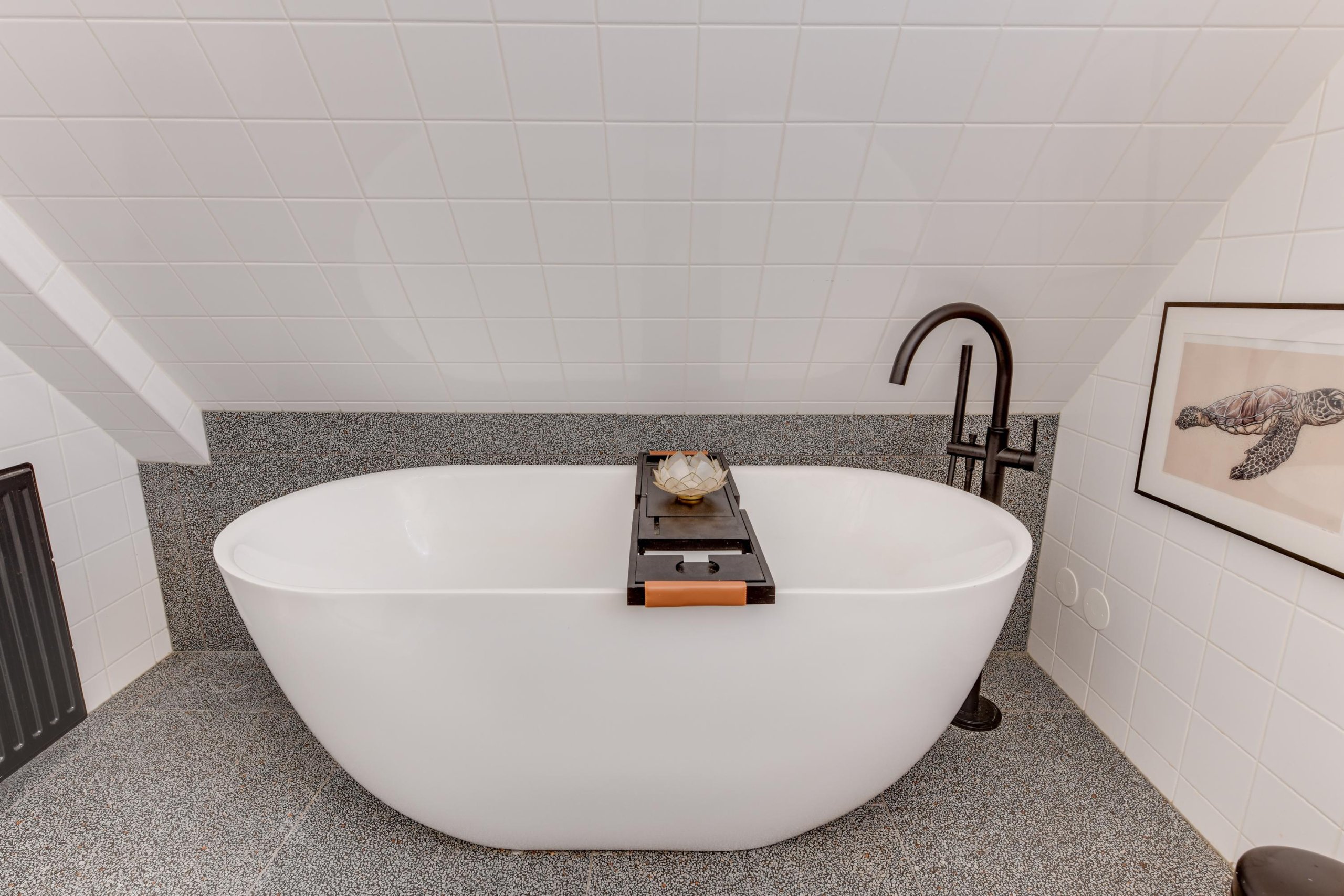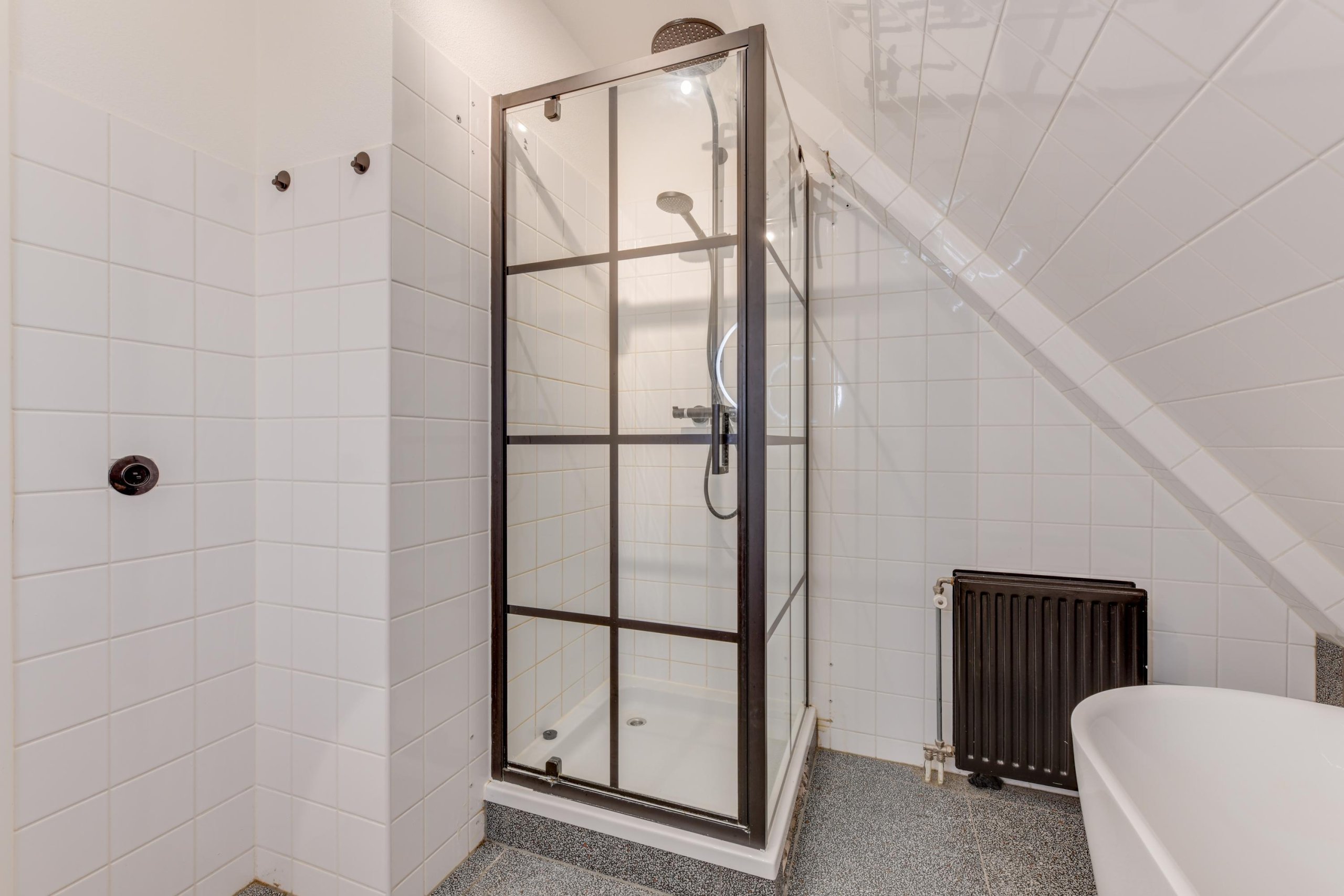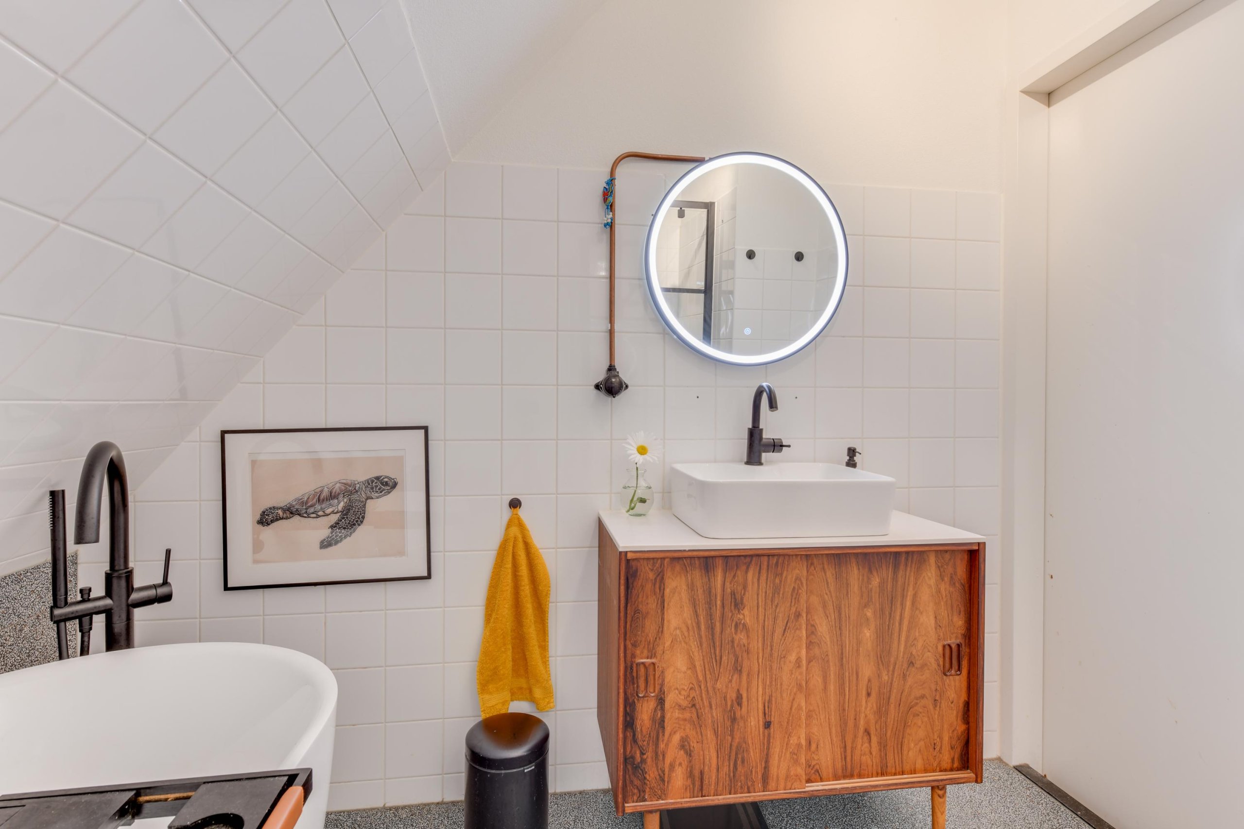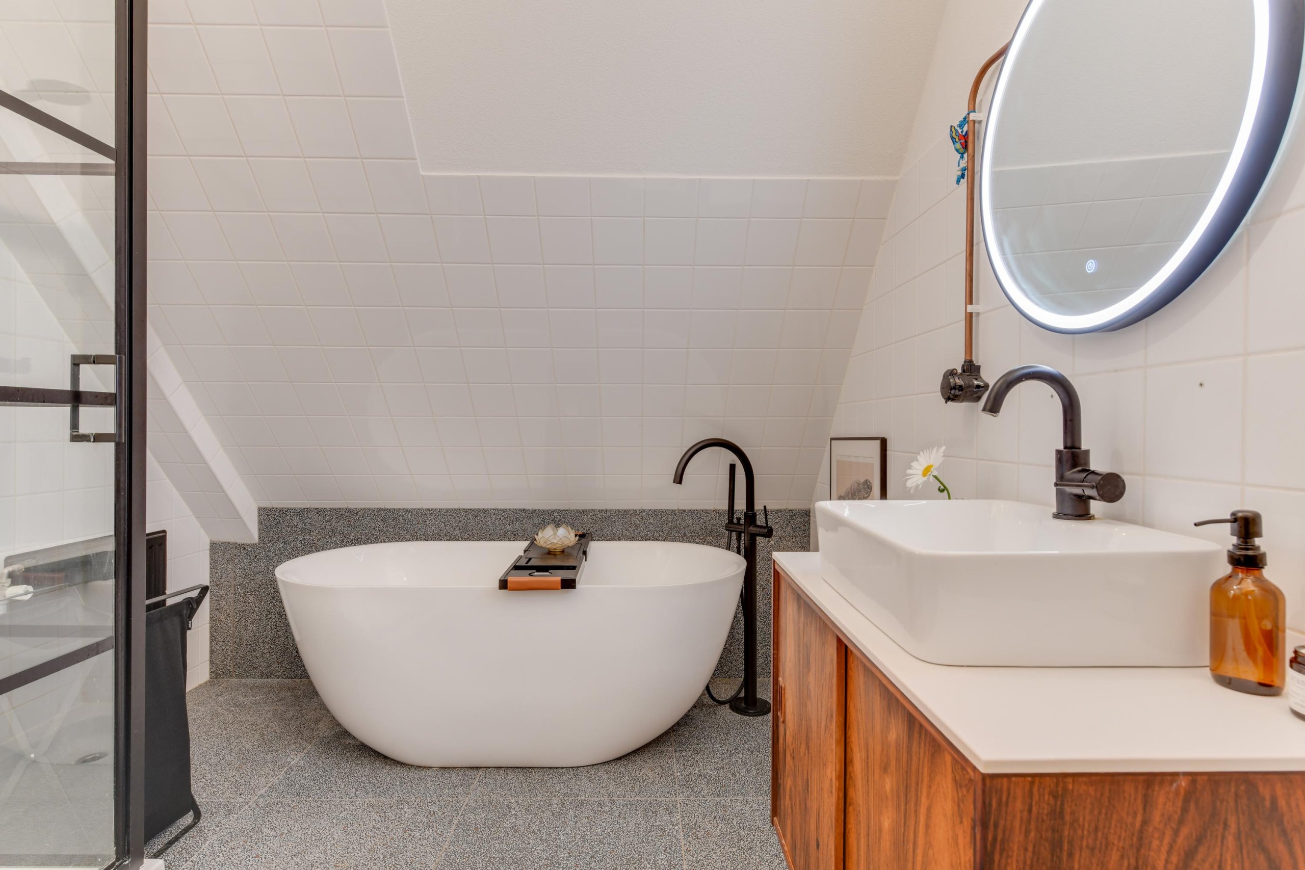 Tussenverdieping; Via de vaste trap bereik je de nette badkamer voorzien van een bad, douche, wastafelmeubel en wasmachineaansluiting.