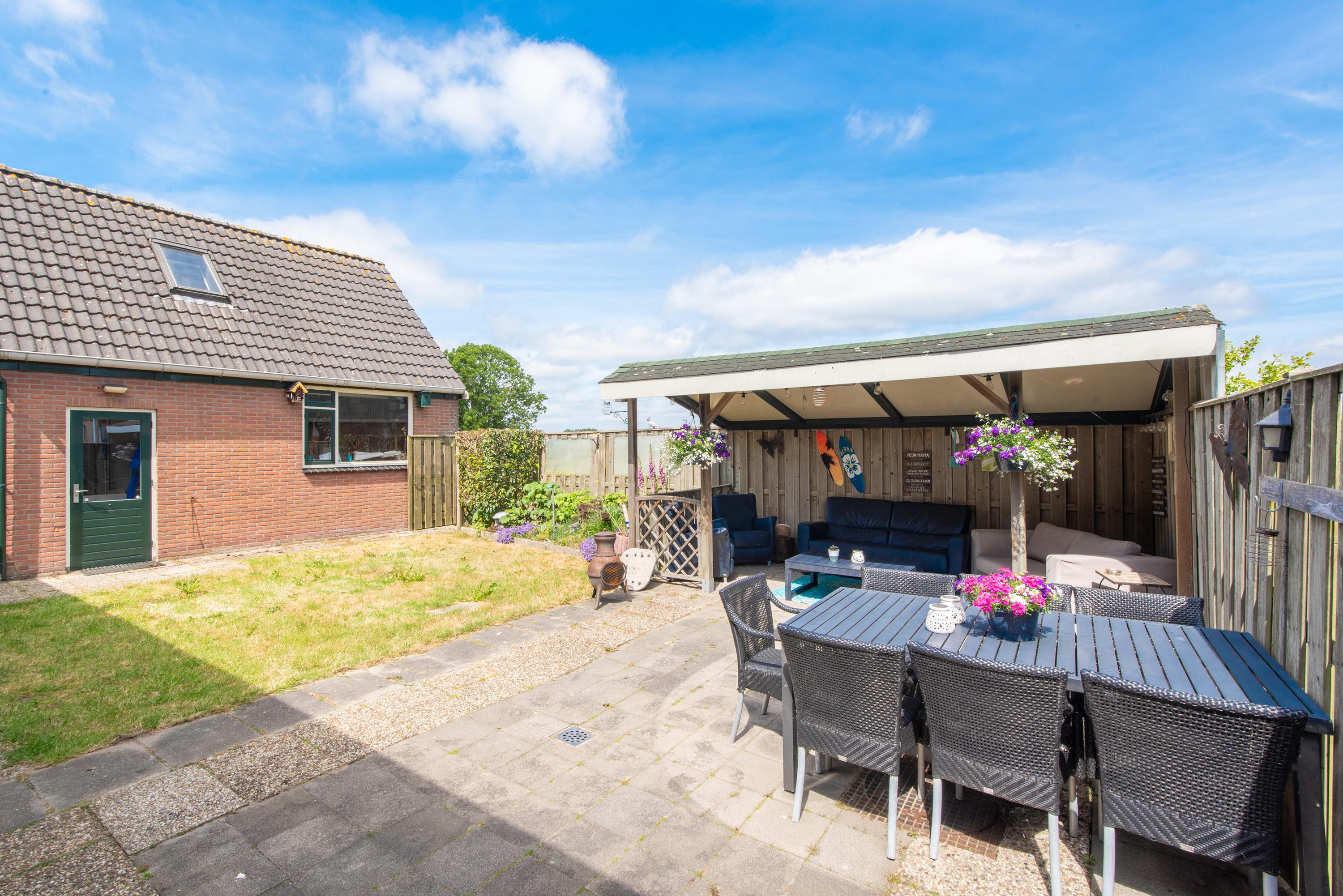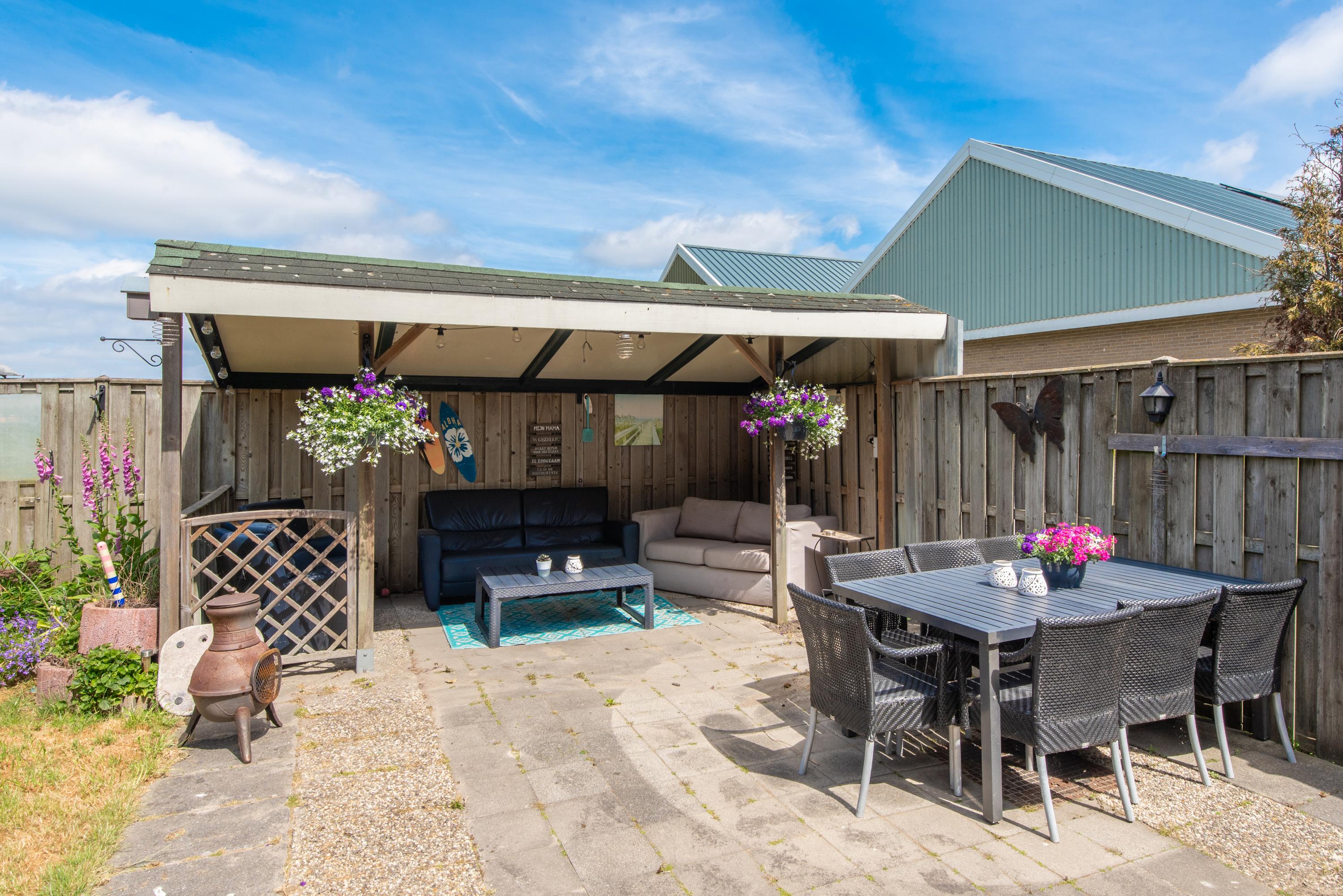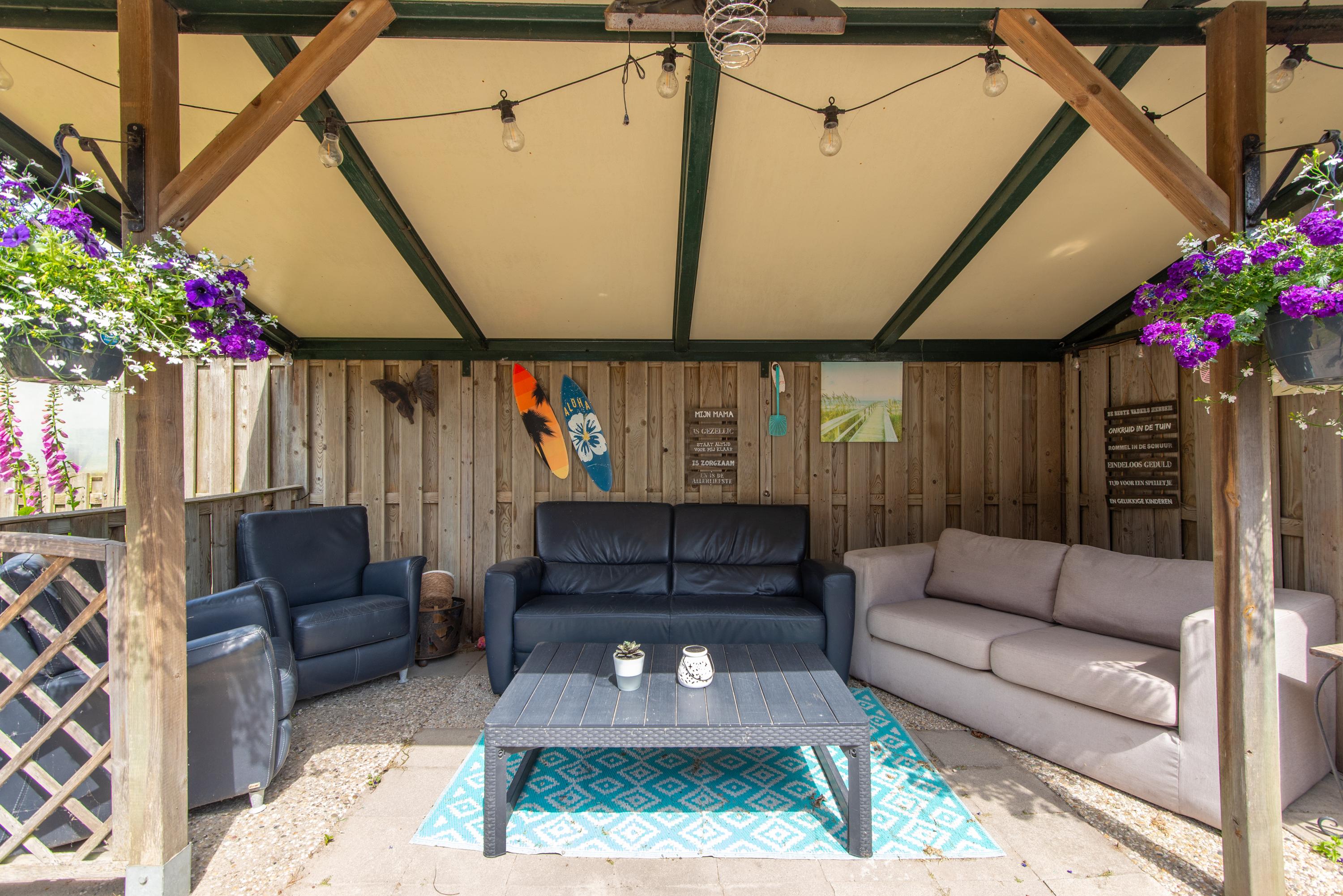 De tuin is gelegen op het noordwesten, met volop zon en privacy. Achterin de tuin is een gezellige overkapping geplaatst. De vrijstaande garage is voorzien van een elektrische deur, wateraansluiting en heeft een verdiepingsvloer. Boven de garage is een extra ruimte aanwezig, geschikt als berging of hobbyruimte (niet voorzien van verwarming of sanitair).