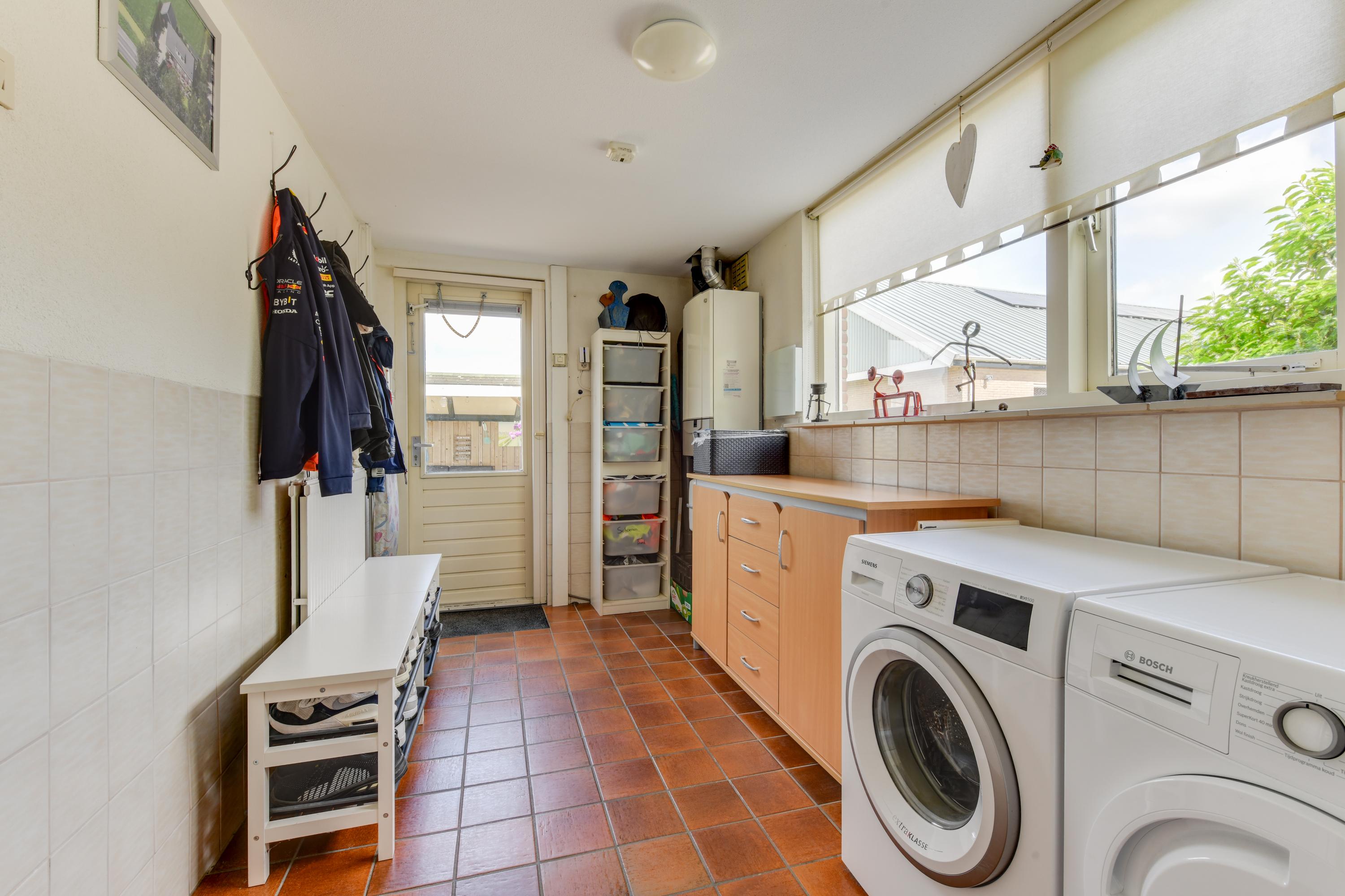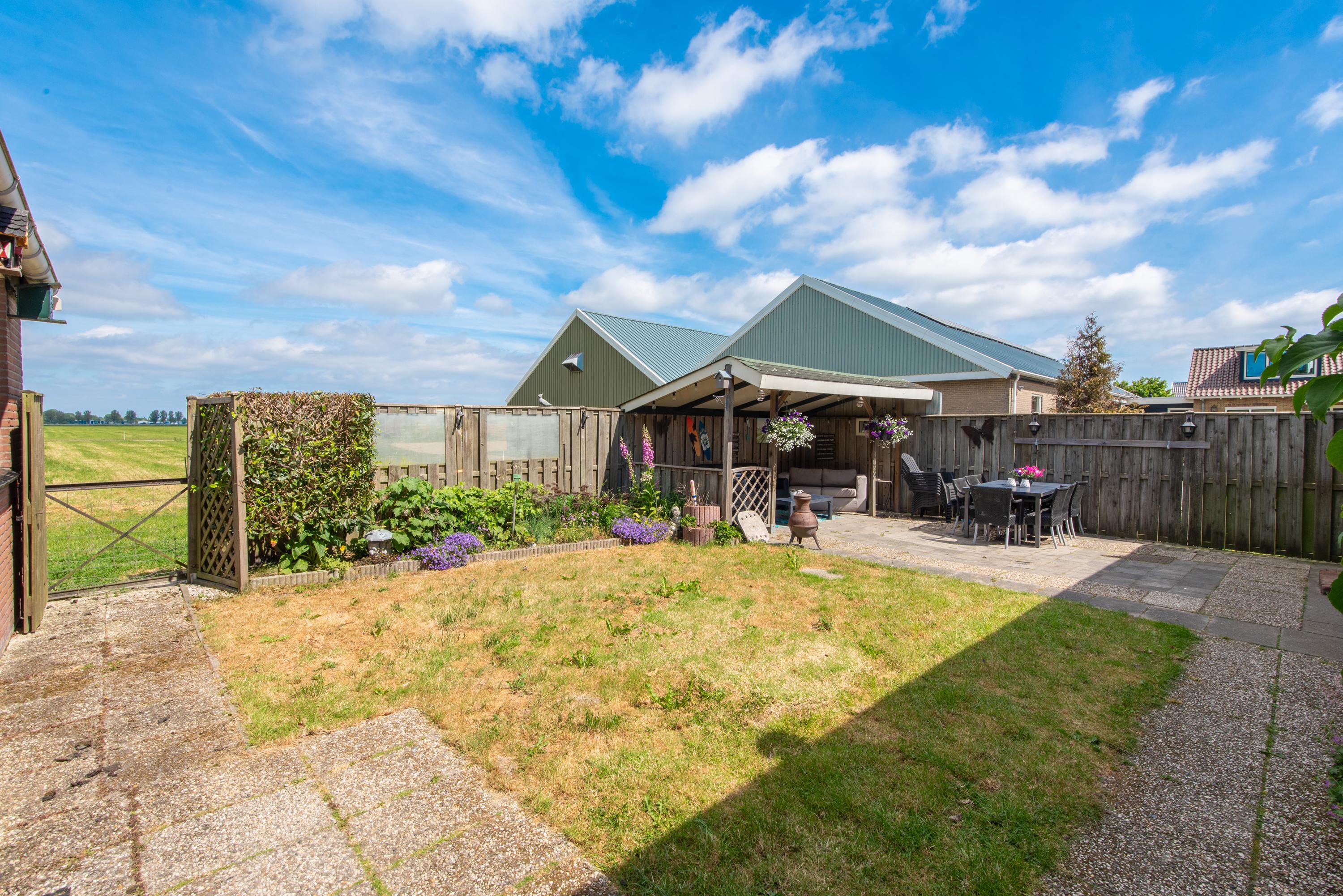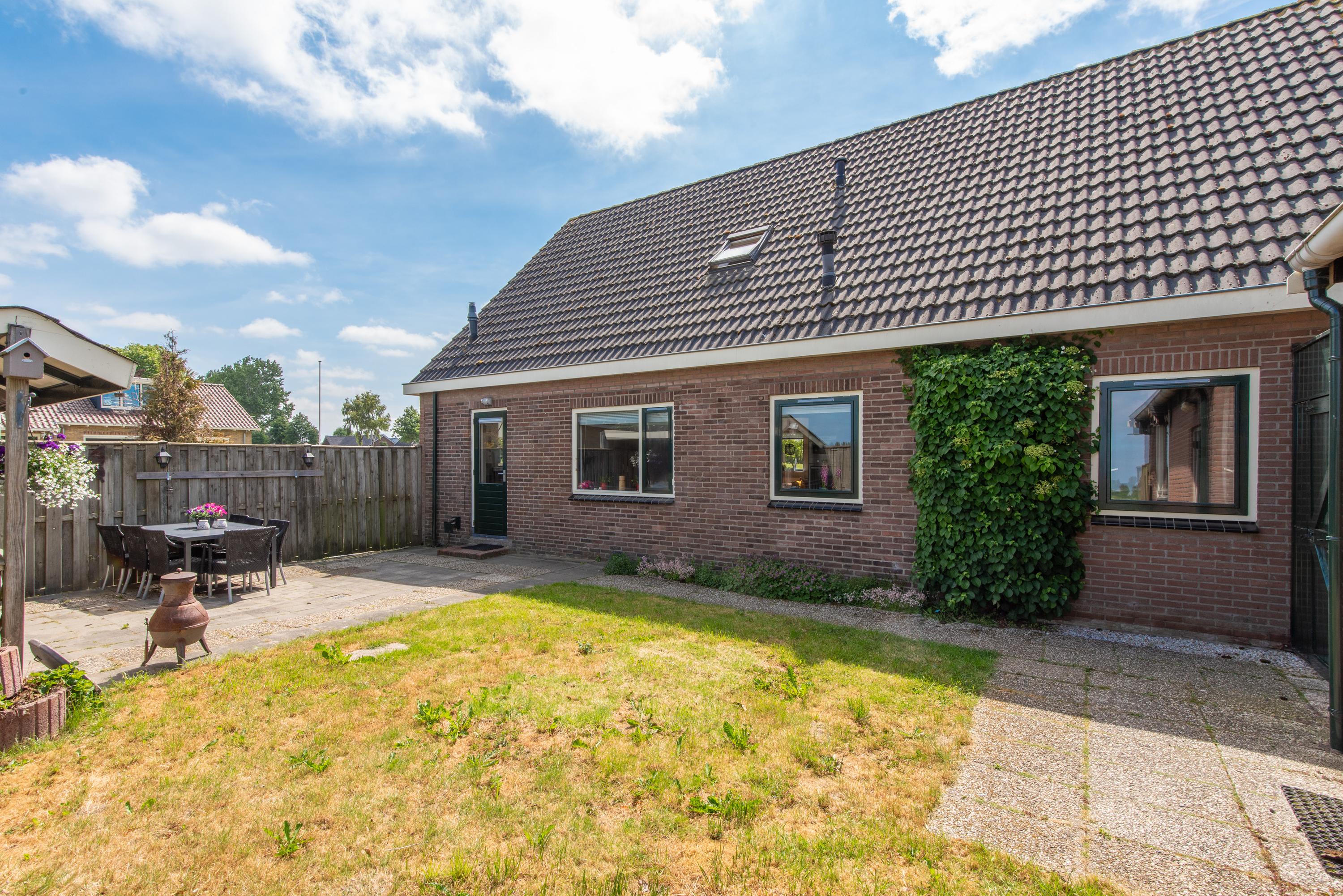 De tuin is gelegen op het noordwesten, met volop zon en privacy. Achterin de tuin is een gezellige overkapping geplaatst. De vrijstaande garage is voorzien van een elektrische deur, wateraansluiting en heeft een verdiepingsvloer. Boven de garage is een extra ruimte aanwezig, geschikt als berging of hobbyruimte (niet voorzien van verwarming of sanitair).