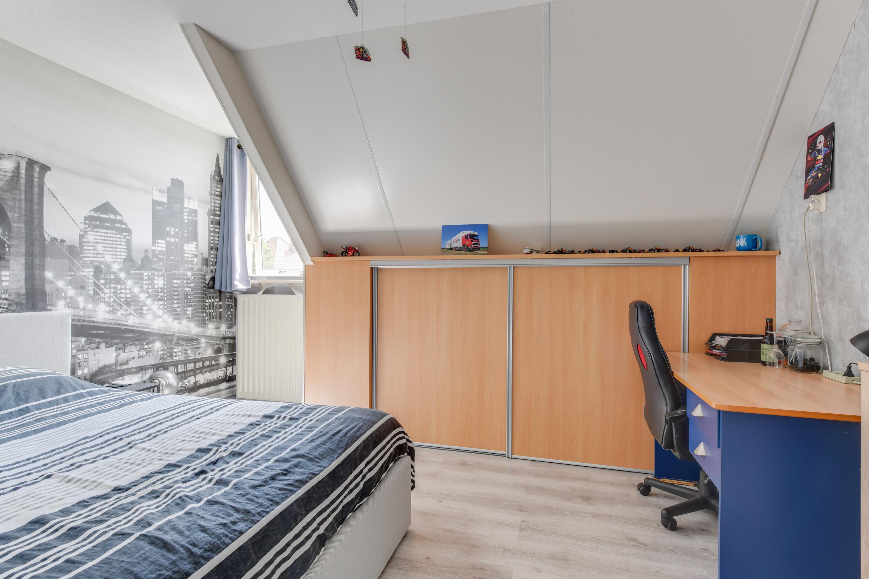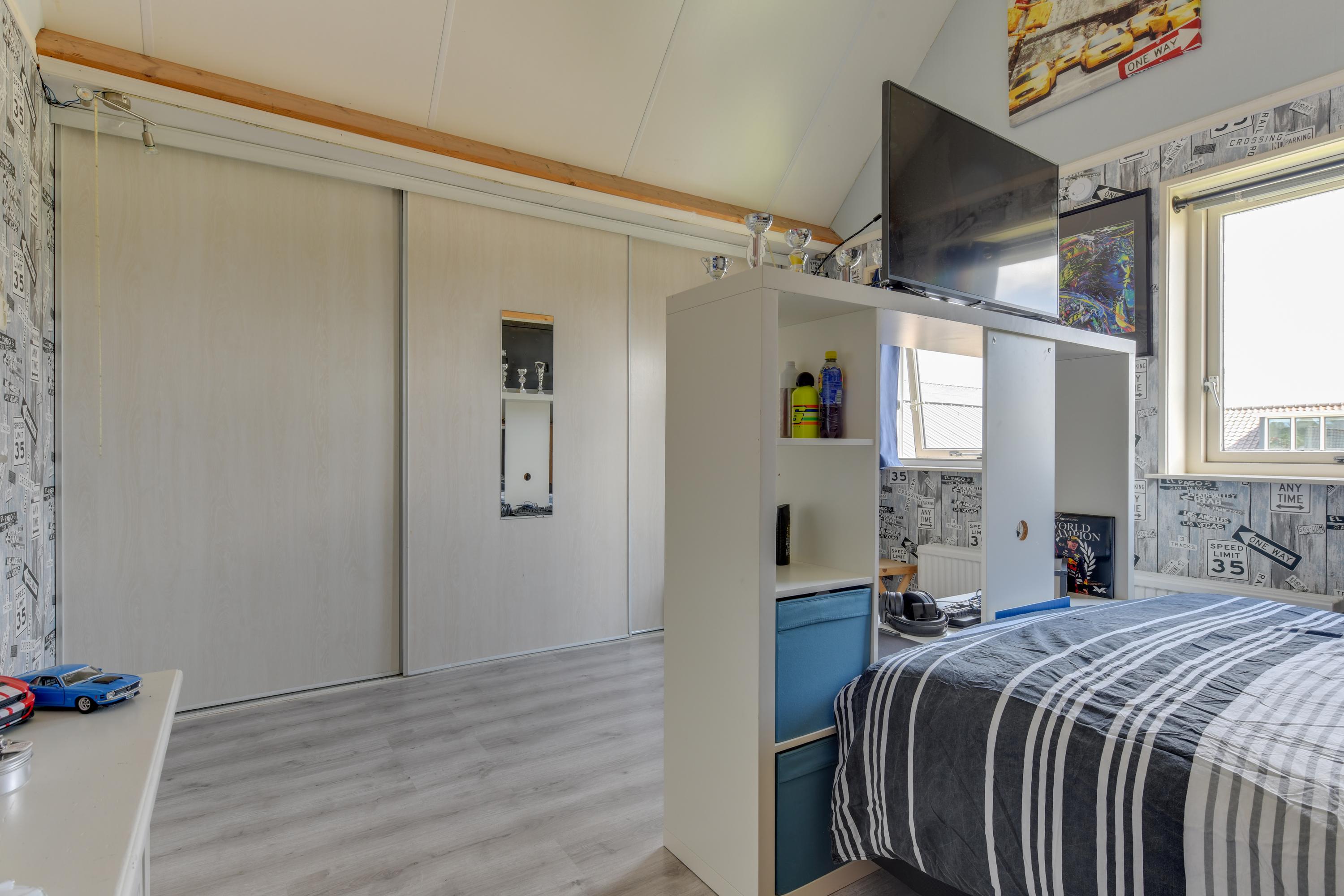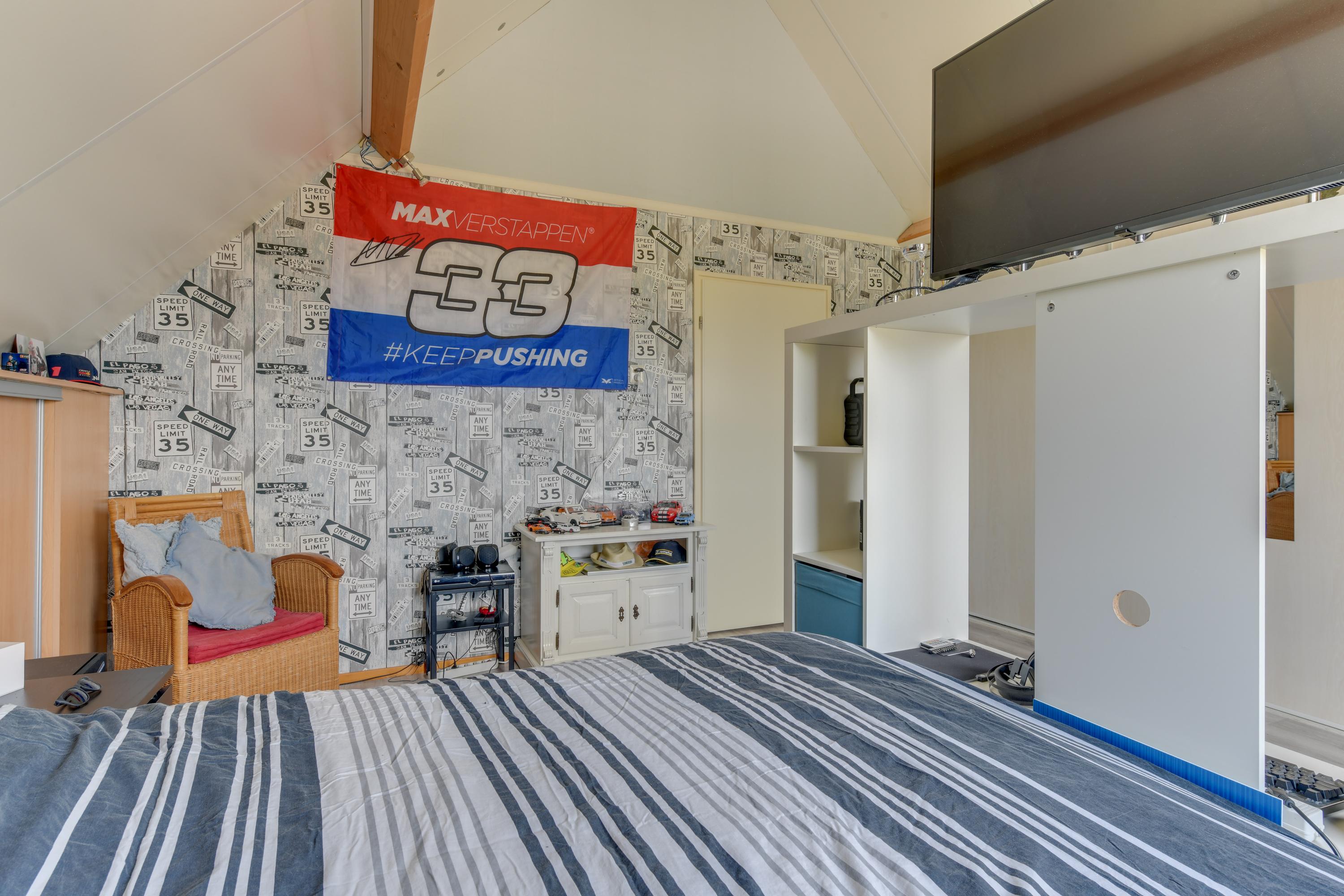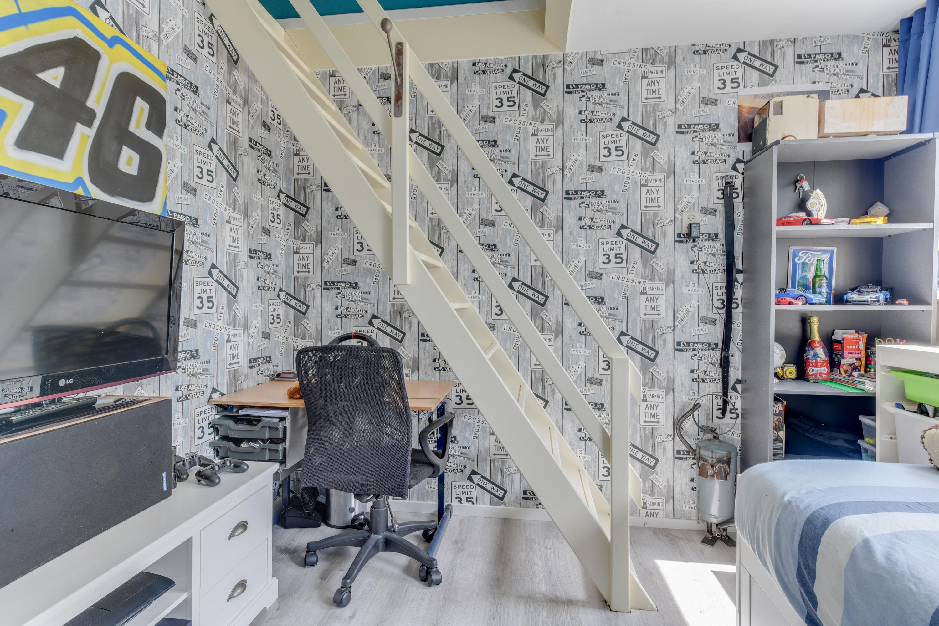 Via de trap in de hal bereikt u de verdieping met een overloop en extra kastruimte. Hier bevinden zich drie slaapkamers van verschillende afmetingen. De grootste slaapkamer biedt veel ruimte en comfort en is ideaal als master bedroom. Daarnaast is er een compactere, leuke (kinder)kamer met een extra slaap- of speelverdieping. Verder is er een praktische werkruimte gecreëerd. Op de verdieping bevindt zich tevens een tweede badkamer, voorzien van een douche, wastafel, toilet en een dakraam.