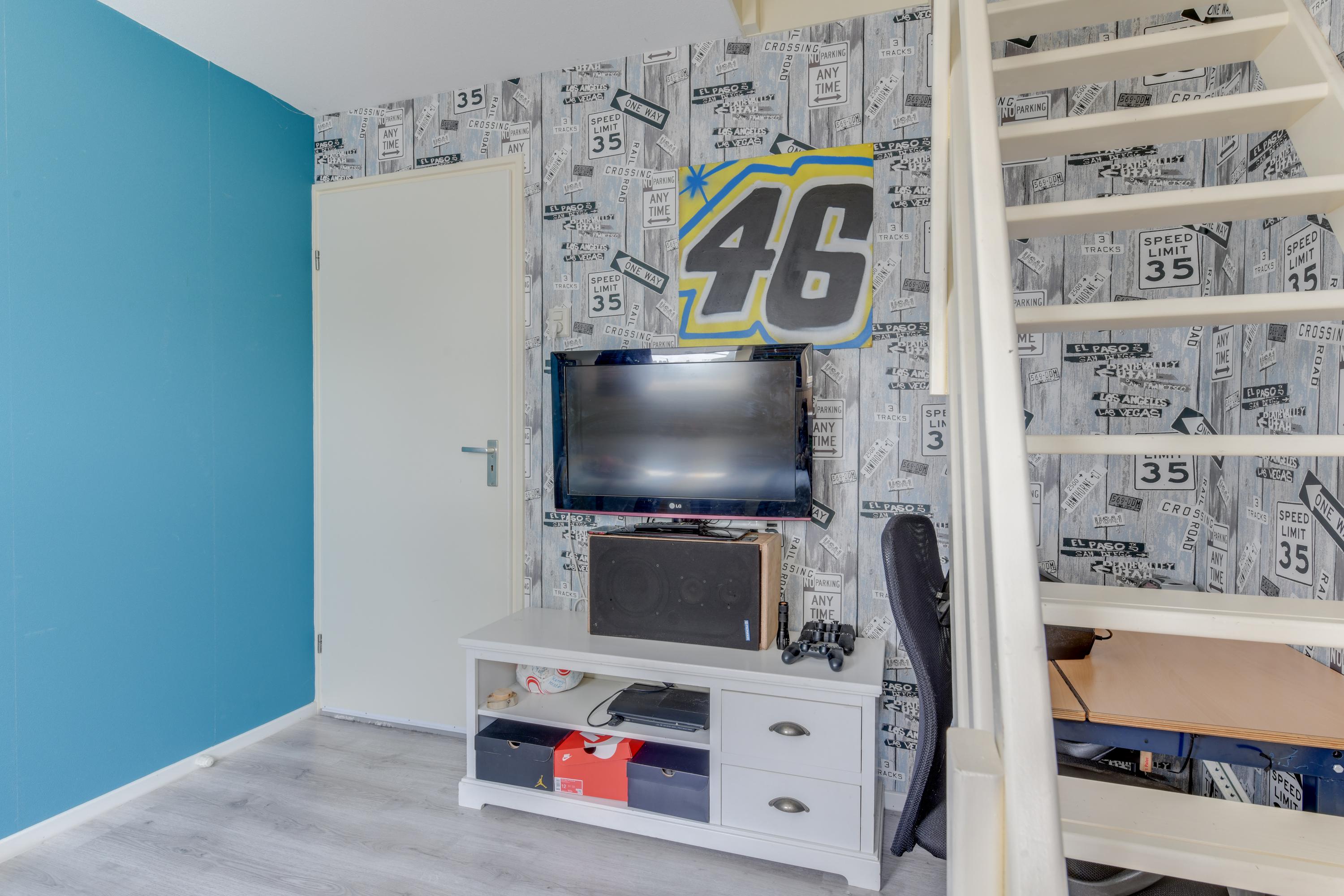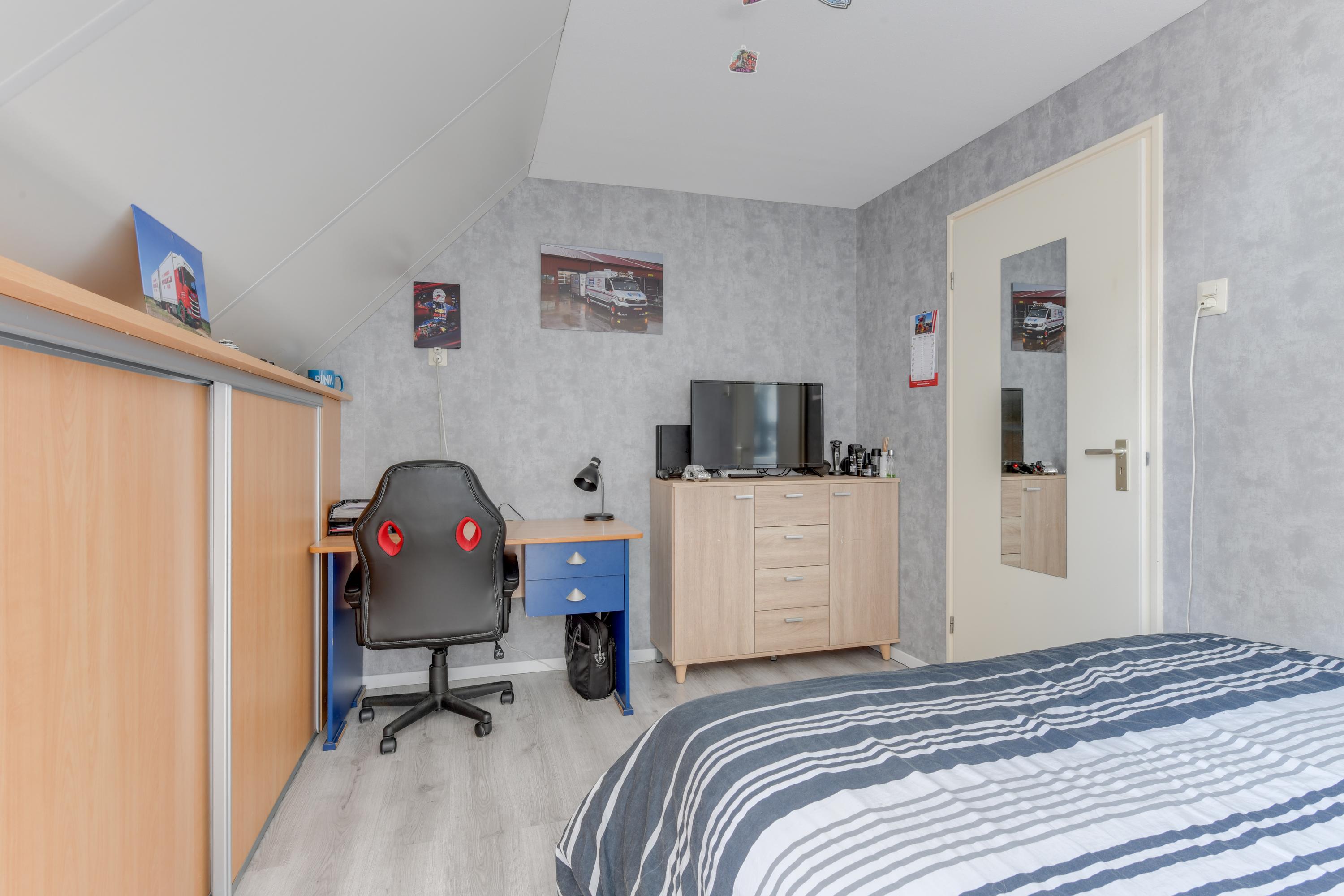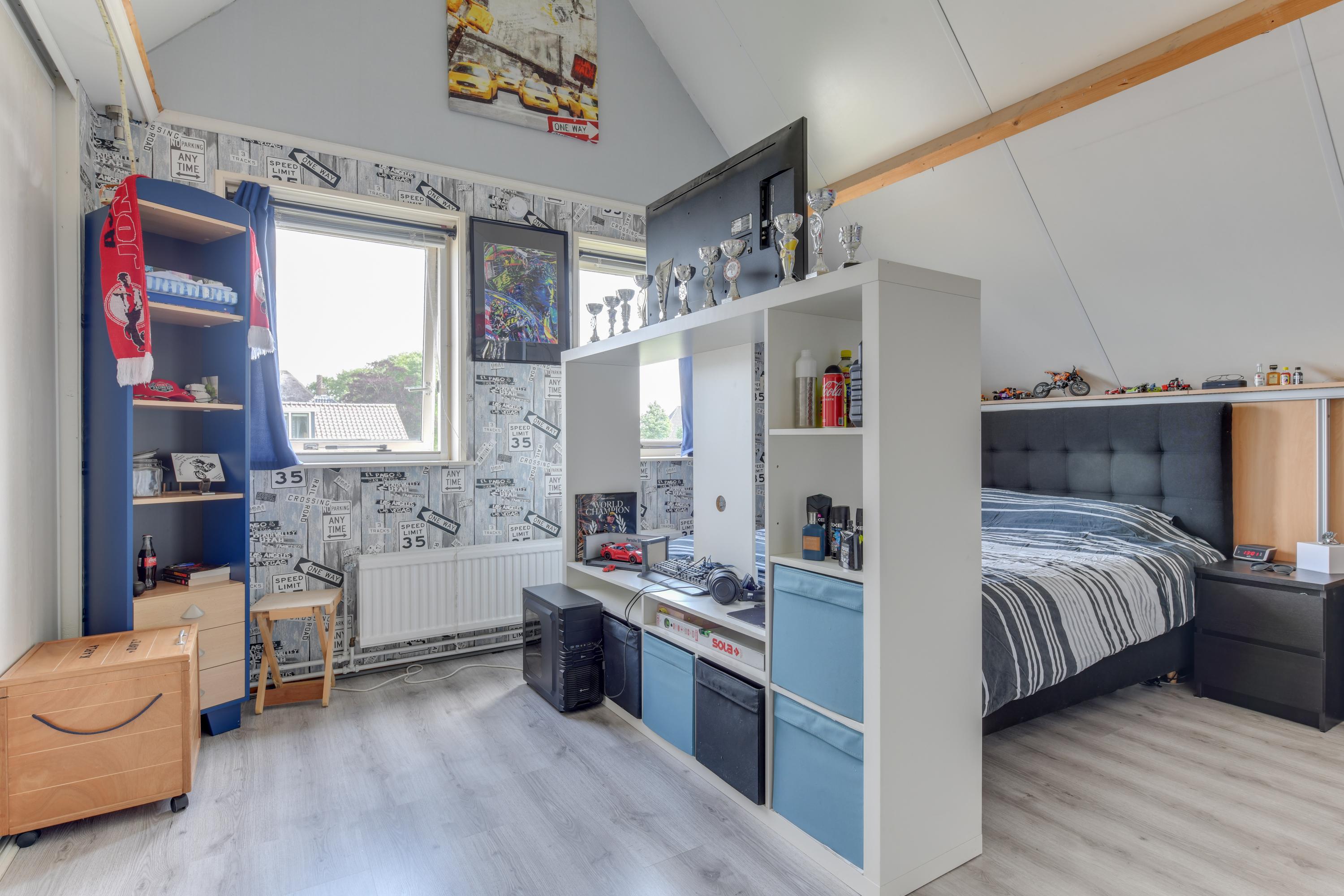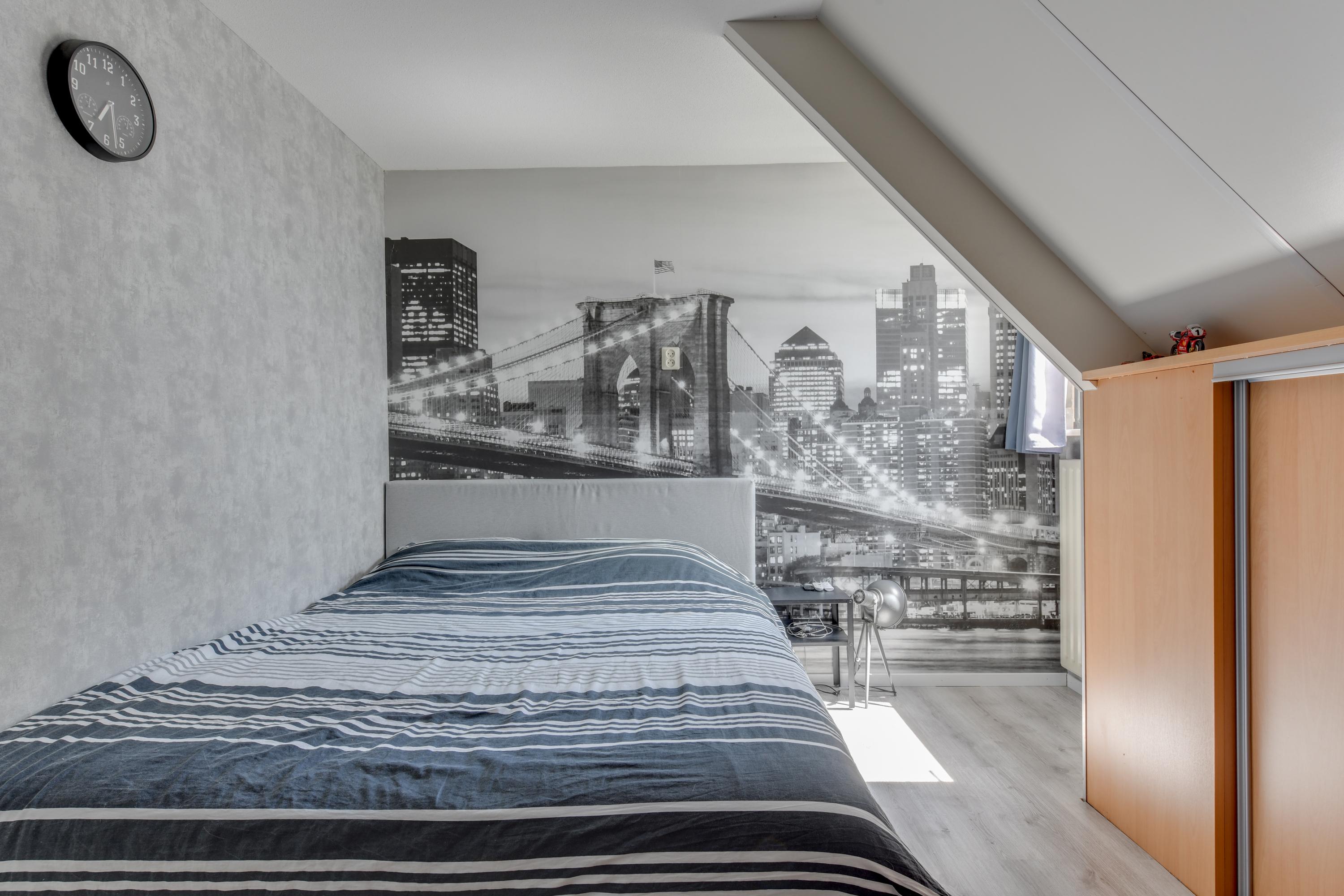 Via de trap in de hal bereikt u de verdieping met een overloop en extra kastruimte. Hier bevinden zich drie slaapkamers van verschillende afmetingen. De grootste slaapkamer biedt veel ruimte en comfort en is ideaal als master bedroom. Daarnaast is er een compactere, leuke (kinder)kamer met een extra slaap- of speelverdieping. Verder is er een praktische werkruimte gecreëerd. Op de verdieping bevindt zich tevens een tweede badkamer, voorzien van een douche, wastafel, toilet en een dakraam.