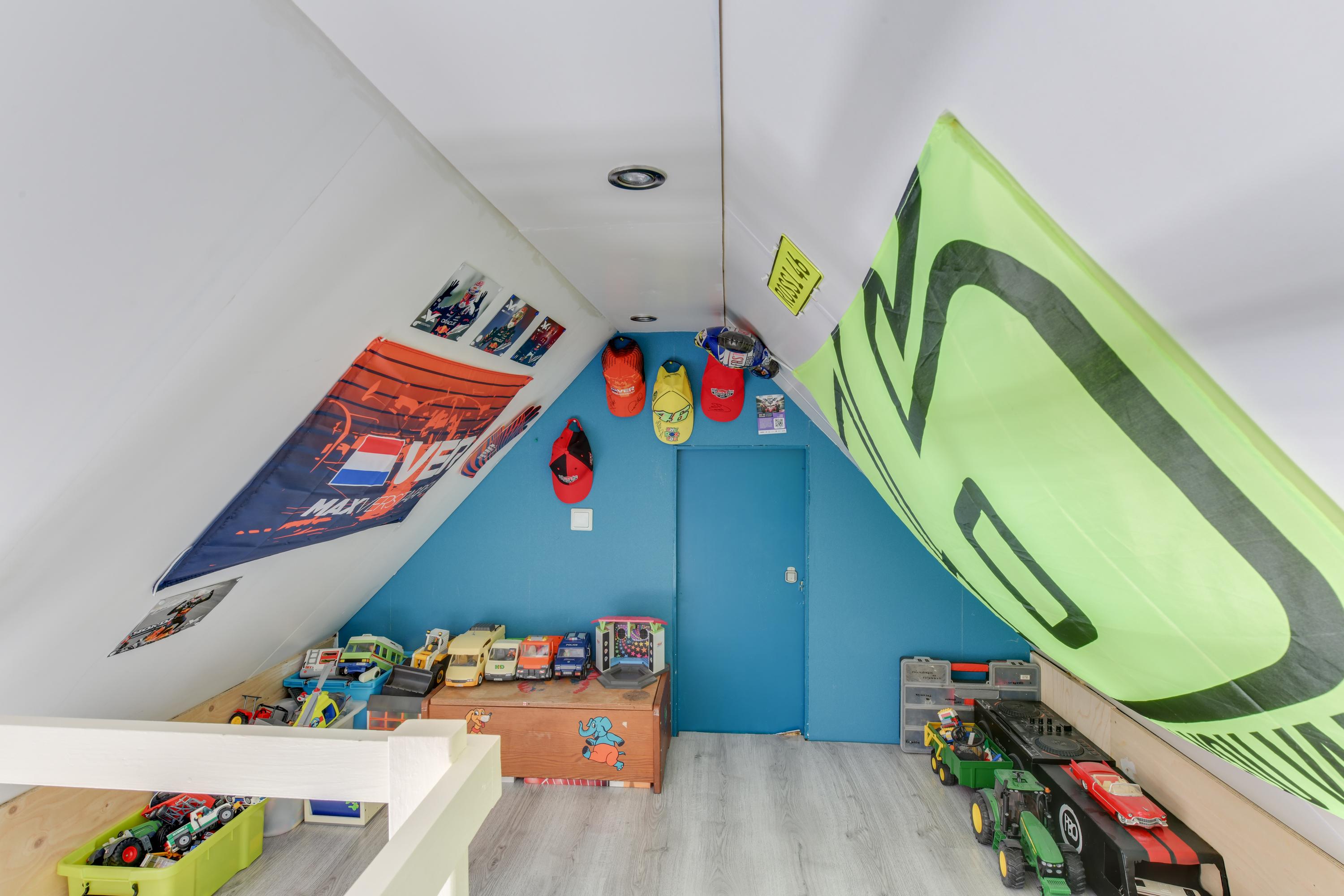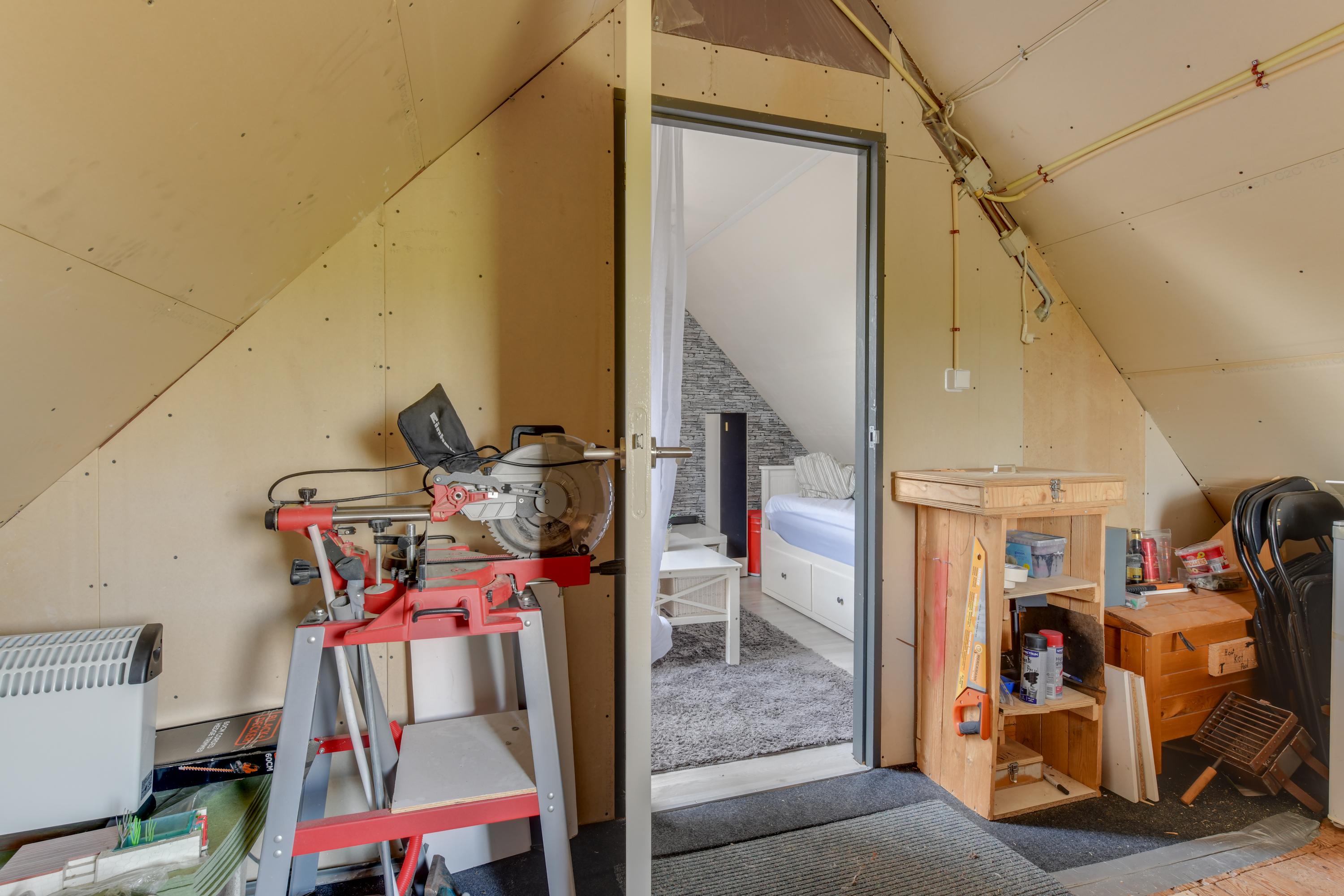 De zolder is bereikbaar via een slaapkamer en biedt extra bergruimte en eventueel plaats voor een bed of speelruimte.