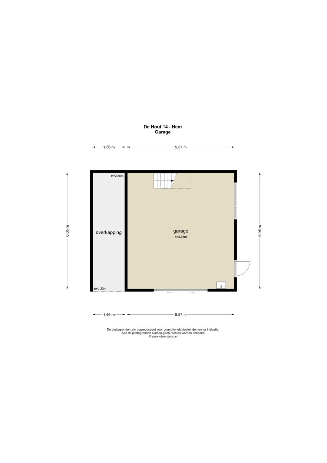 - Krachtstroom in de garage is voorbereid, maar niet aangesloten;