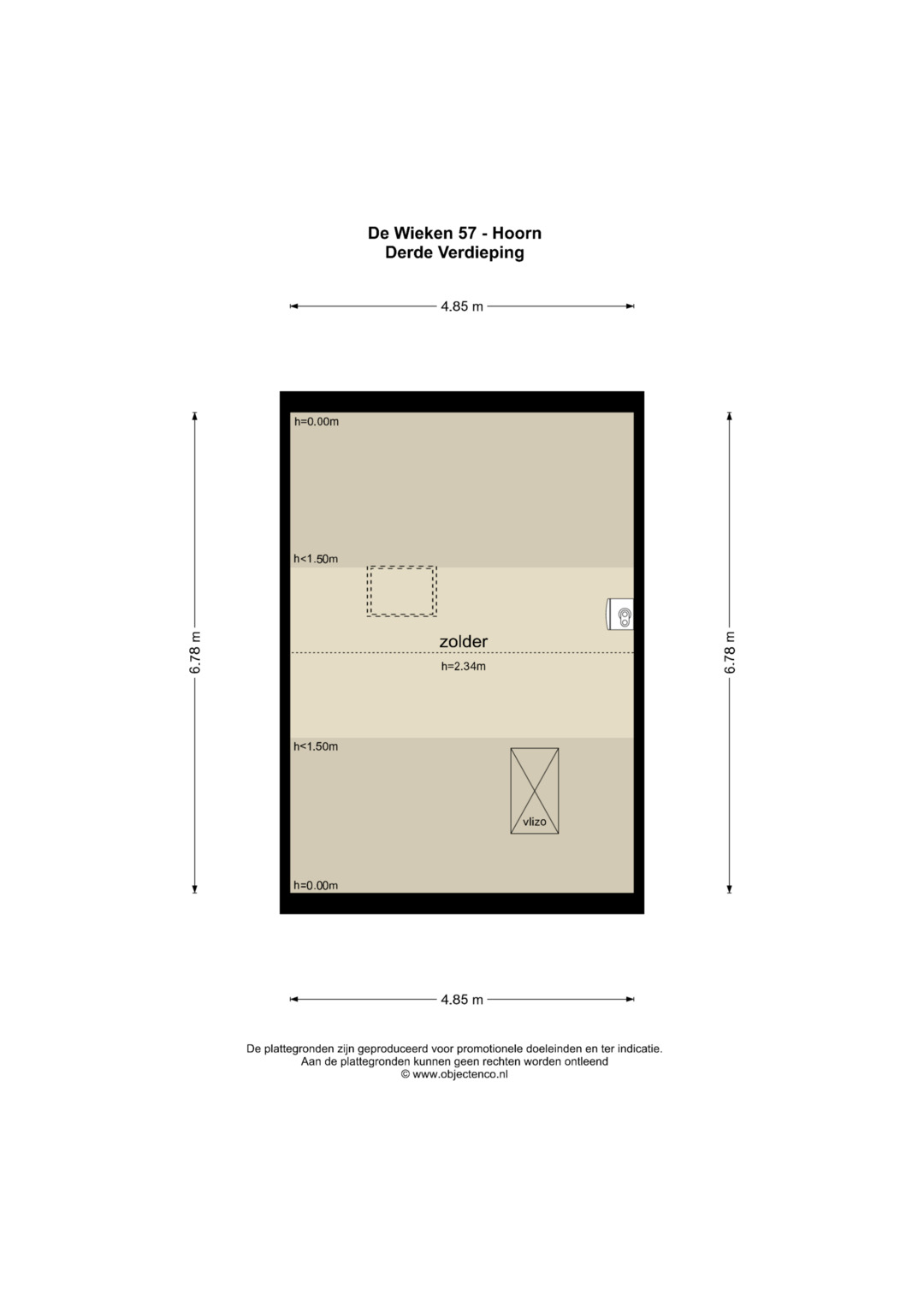 Via een vlizotrap bereik je de ruime bergzolder met opstelling van de cv-ketel (Intergas, 2014). Deze verdieping biedt de mogelijkheid tot het realiseren van een derde slaapkamer door het plaatsen van een vaste trap en een dakraam.
