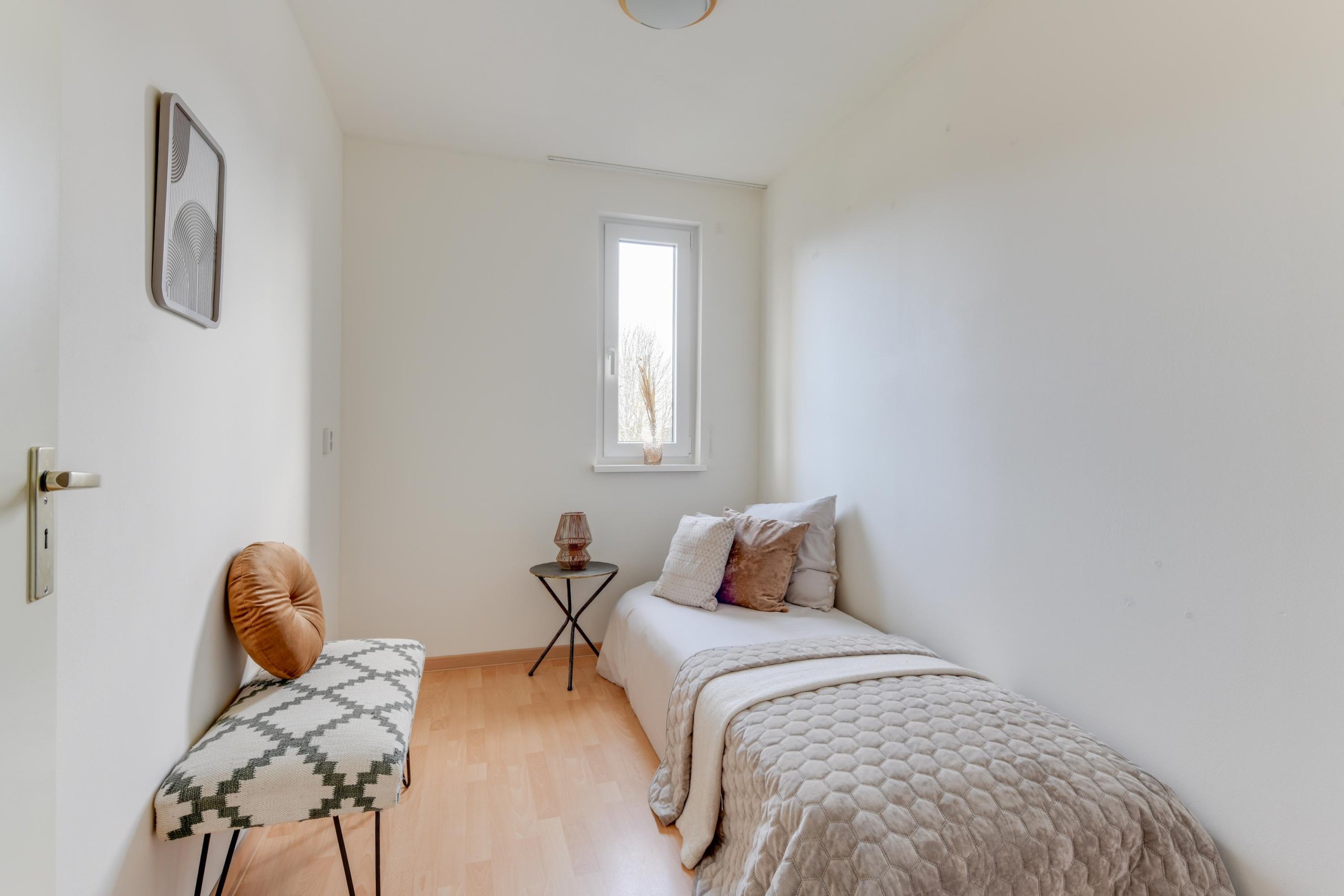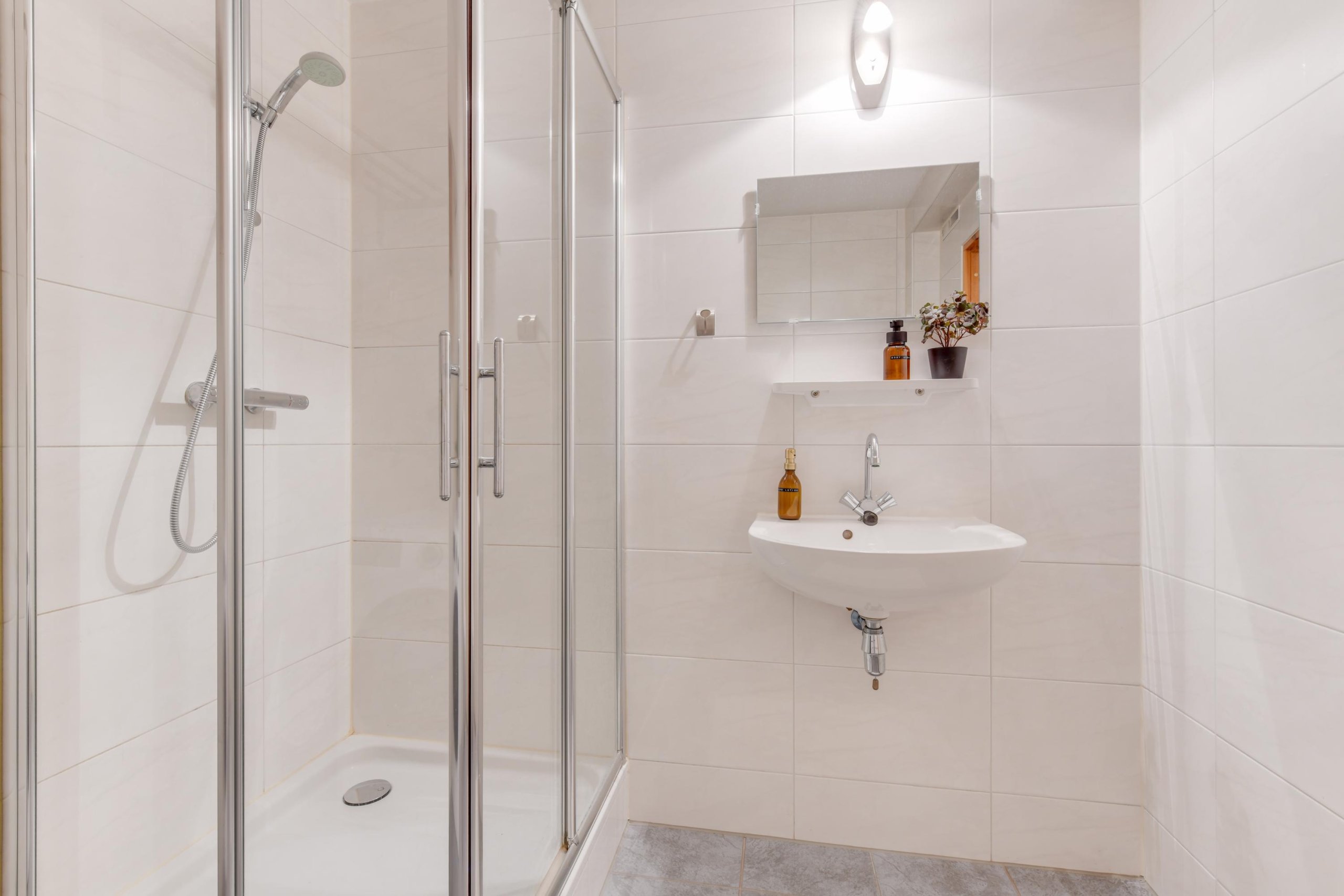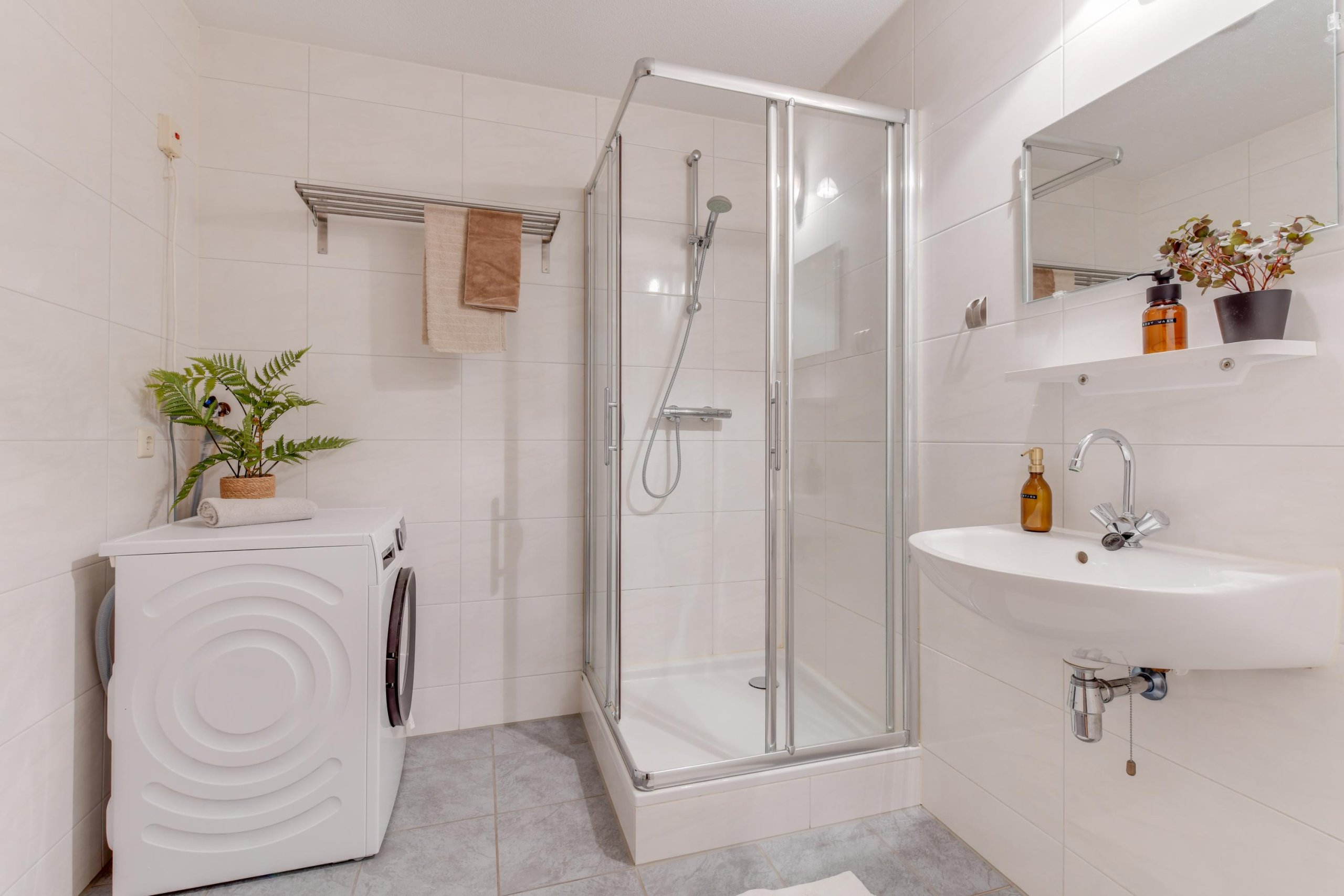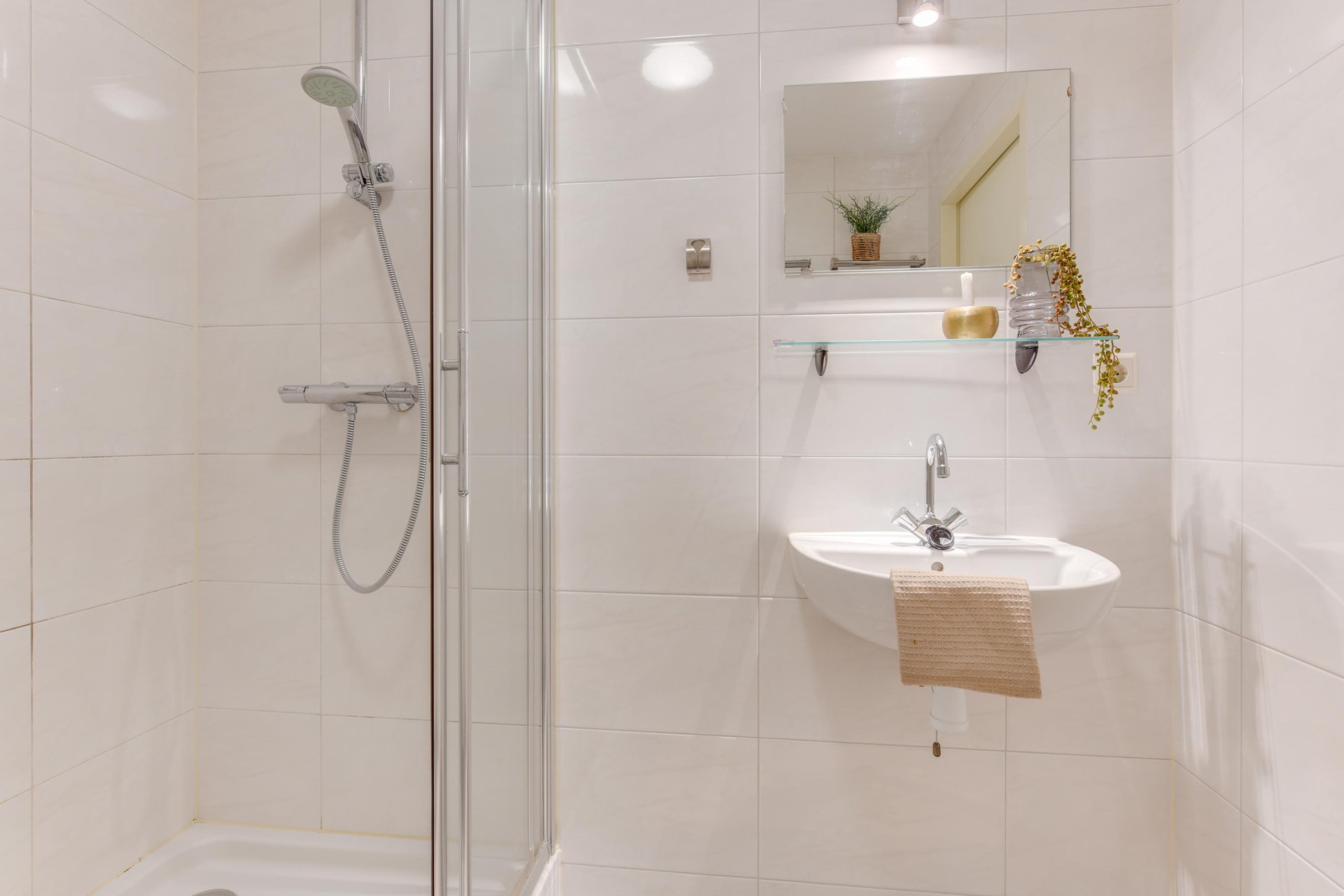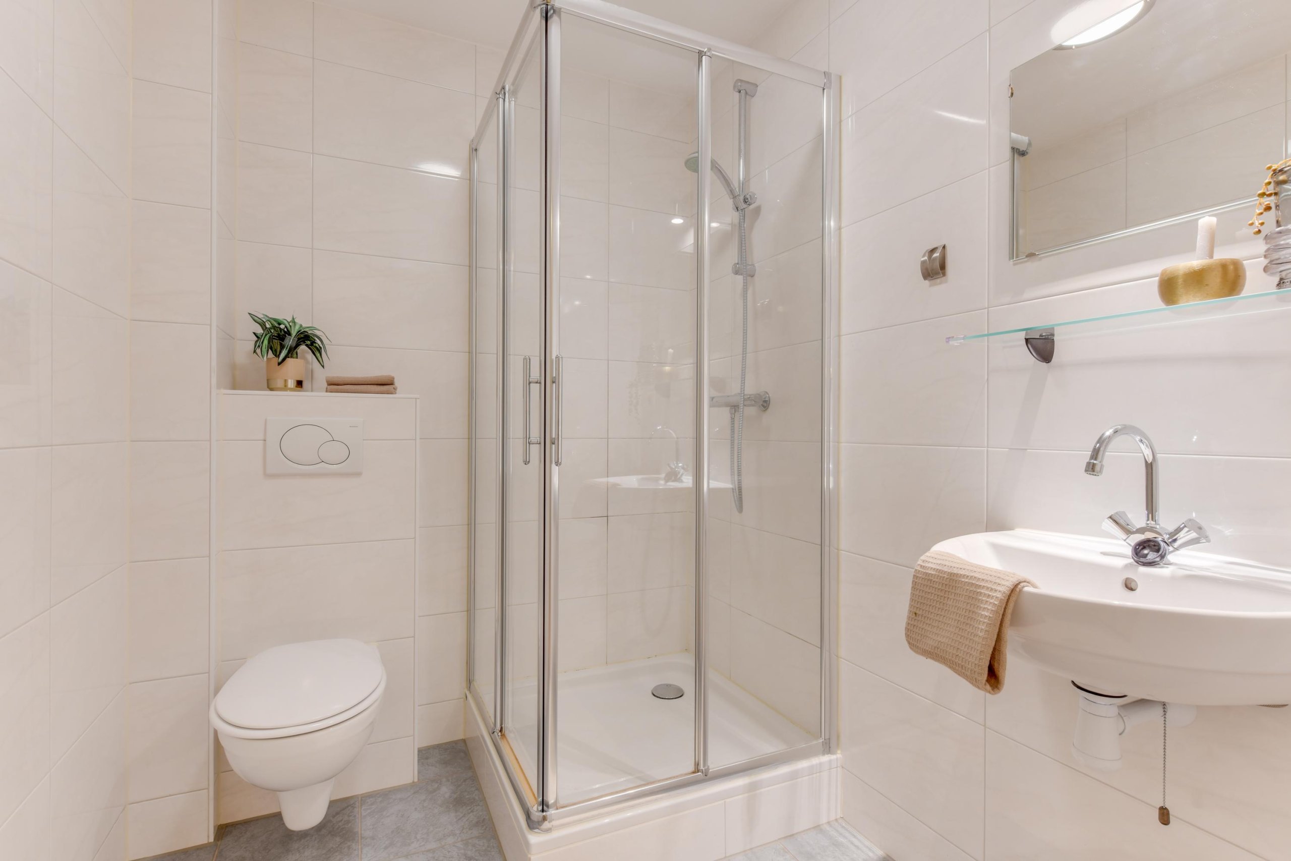 De vaste trap brengt je naar de tweede verdieping met nog eens drie slaapkamers én een tweede badkamer. Deze badkamer beschikt over een douche, wastafel en toilet.