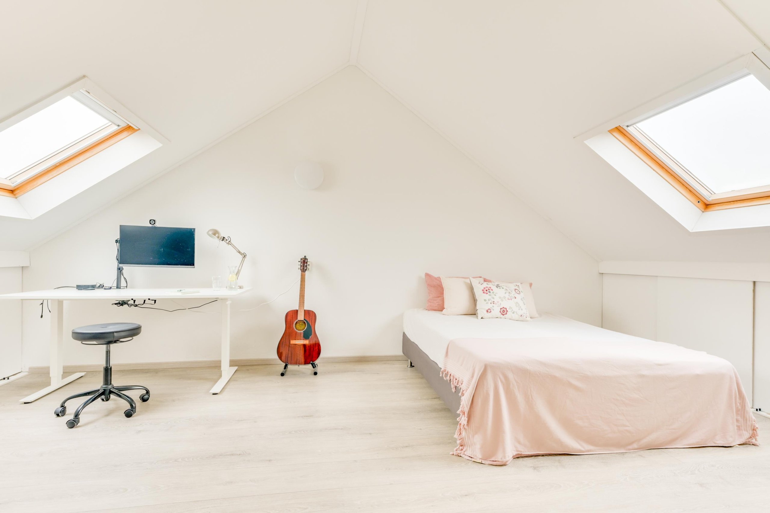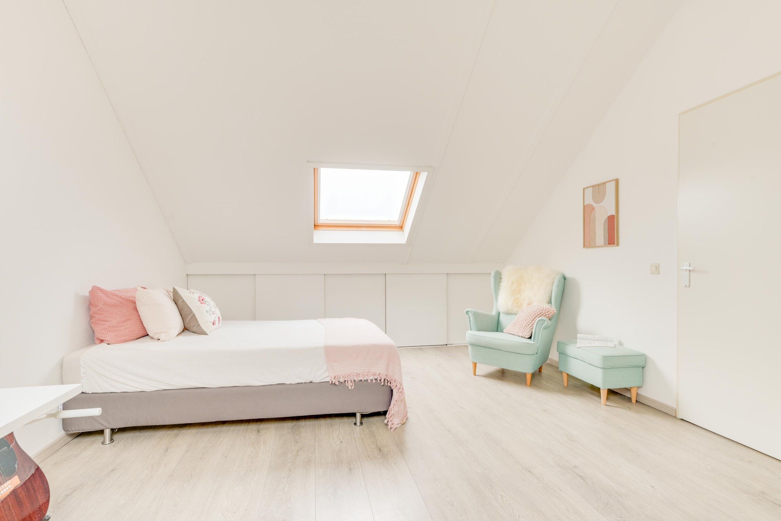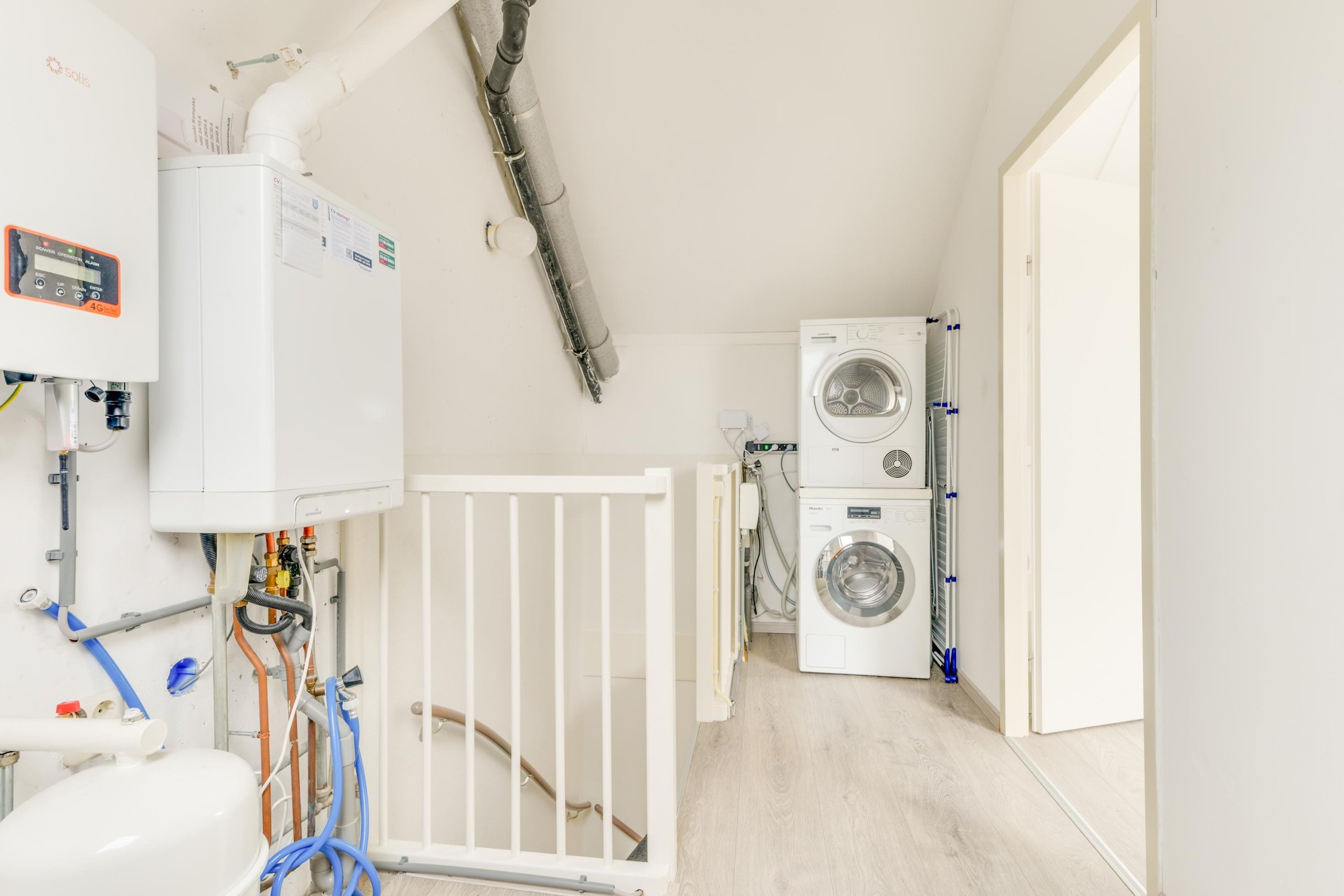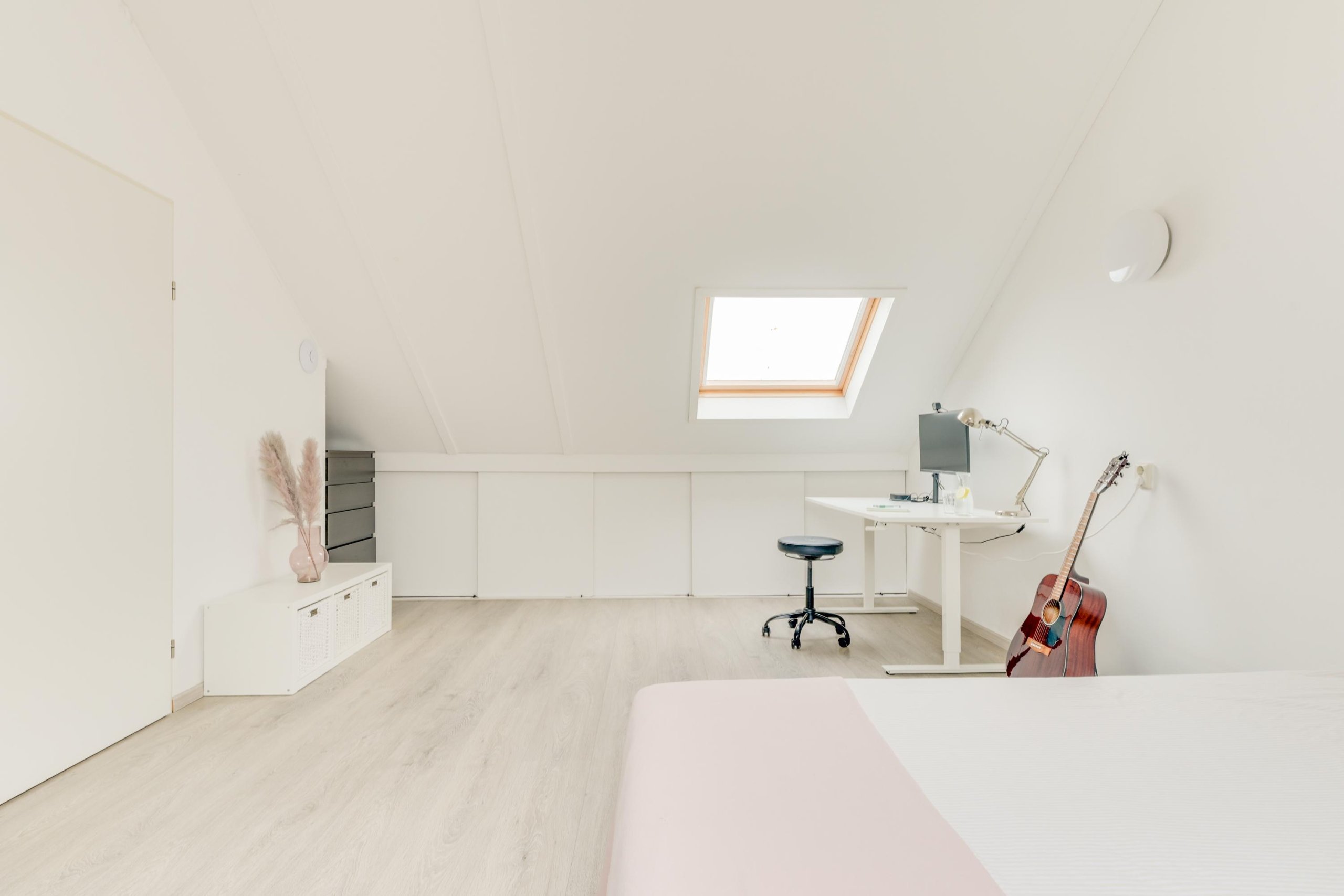 De tweede verdieping biedt een ruime overloop met de omvormer van de zonnepanelen en de cv-ketel (2020). Hier bevindt zich een zeer royale vierde slaapkamer met een groot dakraam aan twee zijden, veel lichtinval, bergruimte achter knieschotten en dezelfde nette laminaatvloer als op de eerste verdieping. Een volwaardige verdieping die ideaal is als master bedroom, werkruimte of tienerkamer.