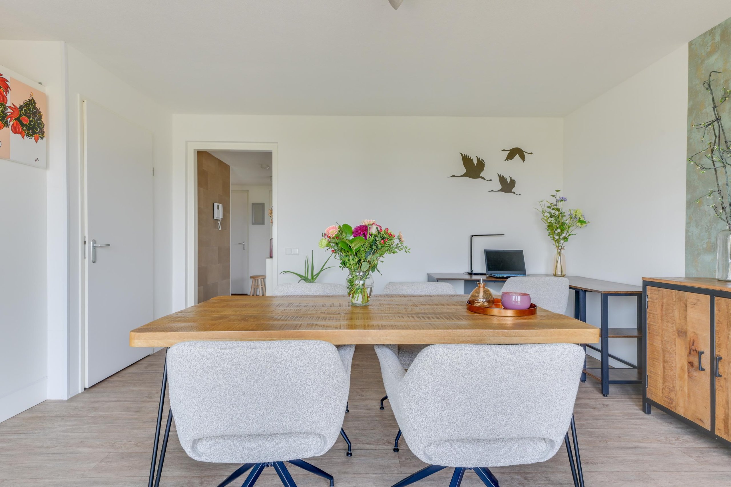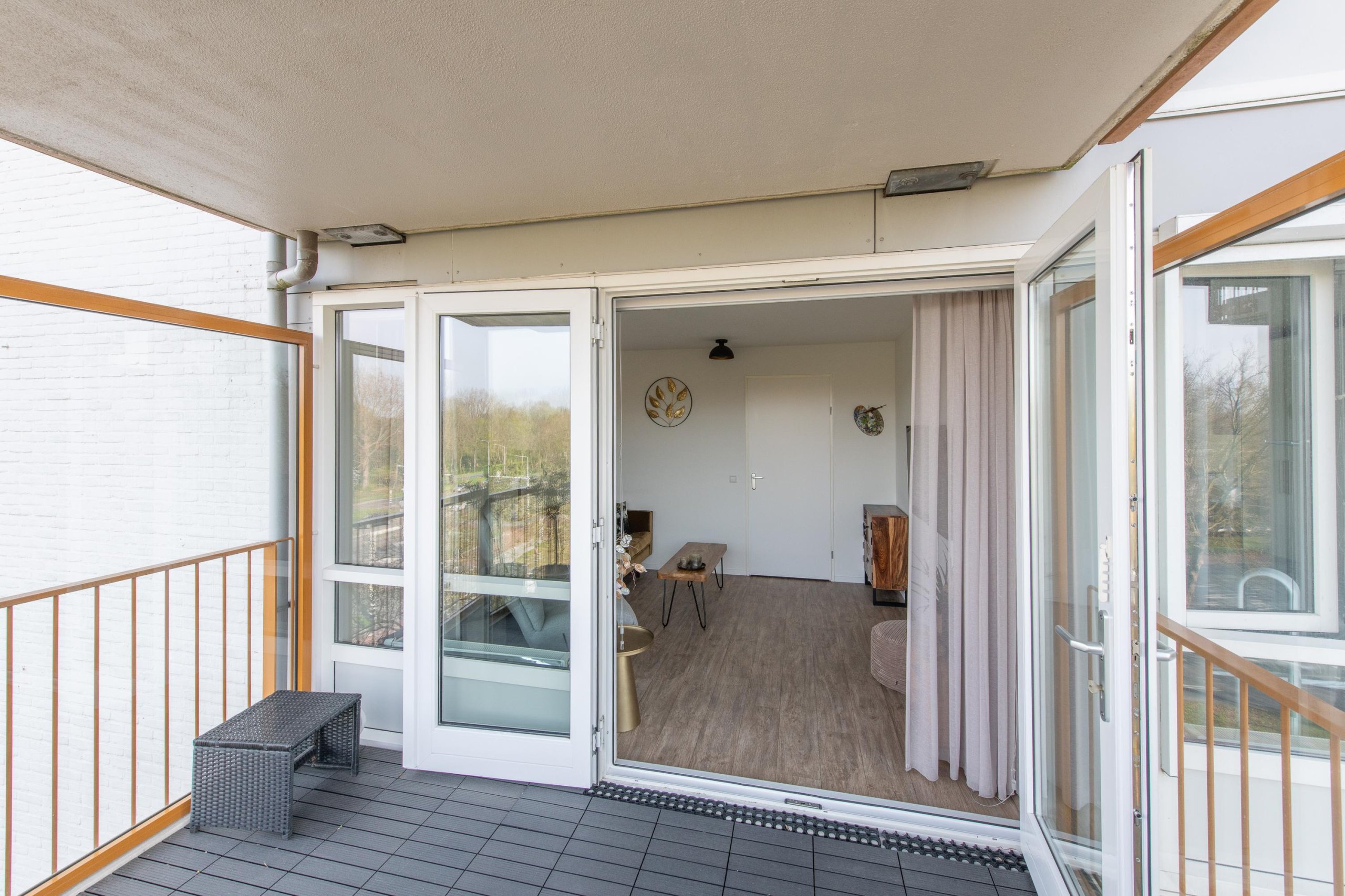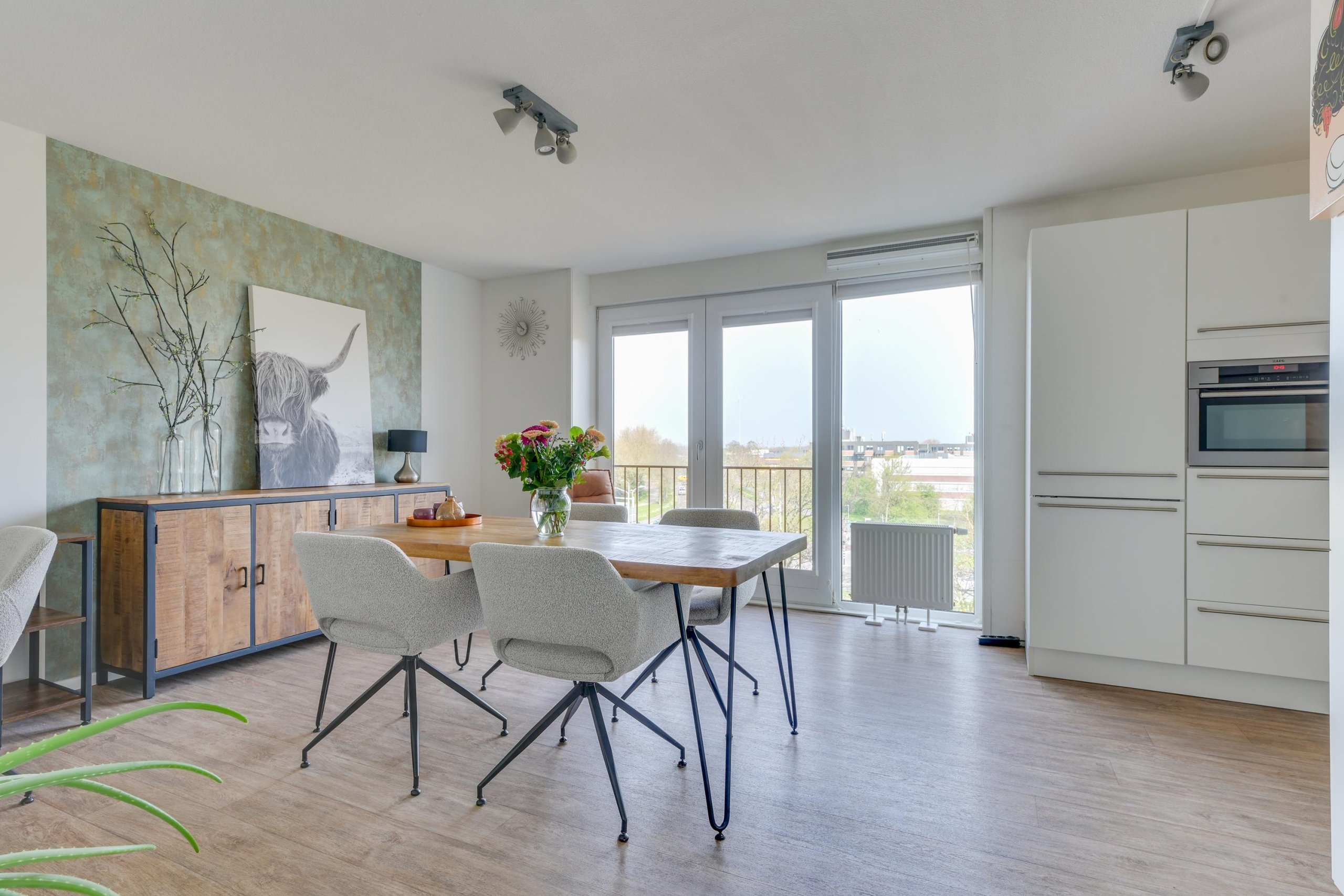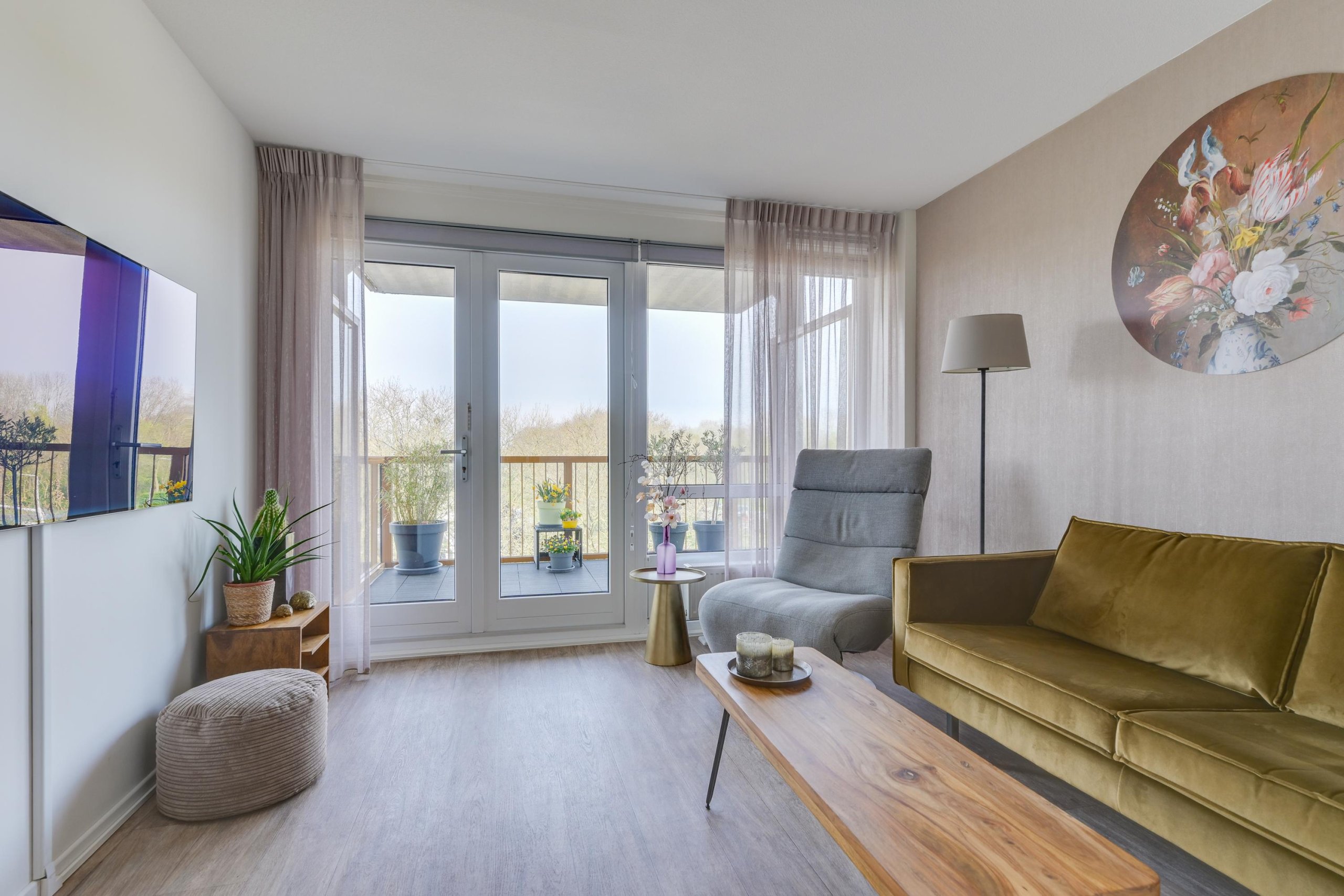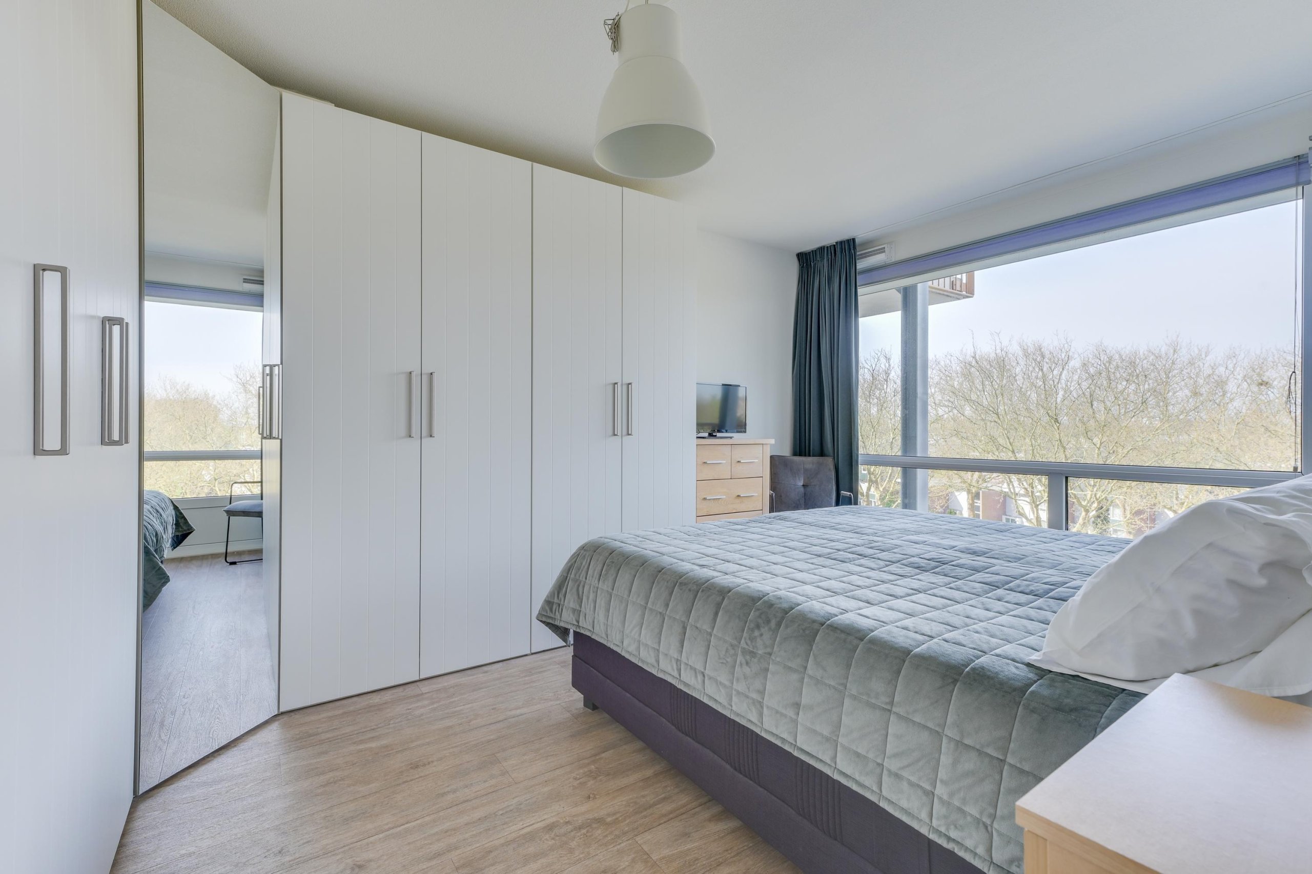 Het ruime balkon (circa 8,5 m²) is gelegen op het zonnige zuidwesten en biedt een fijne plek om van de middag- en avondzon te genieten. Dankzij de hardglazen windkering zit je hier extra beschut, terwijl het vrije uitzicht behouden blijft.