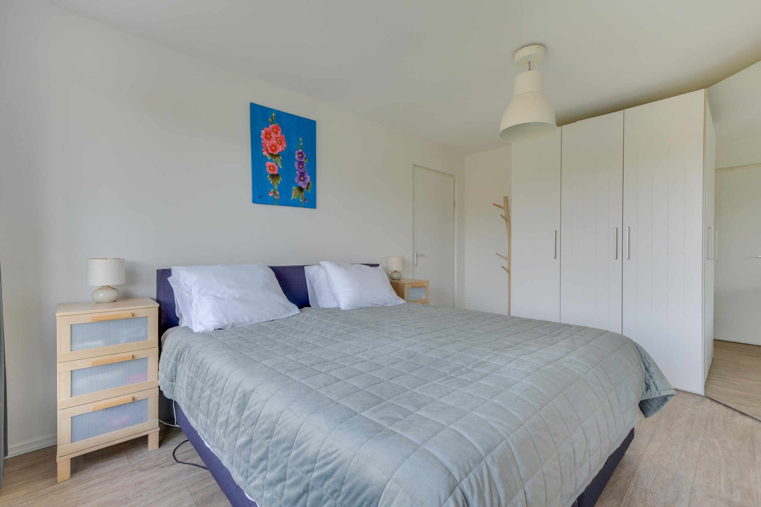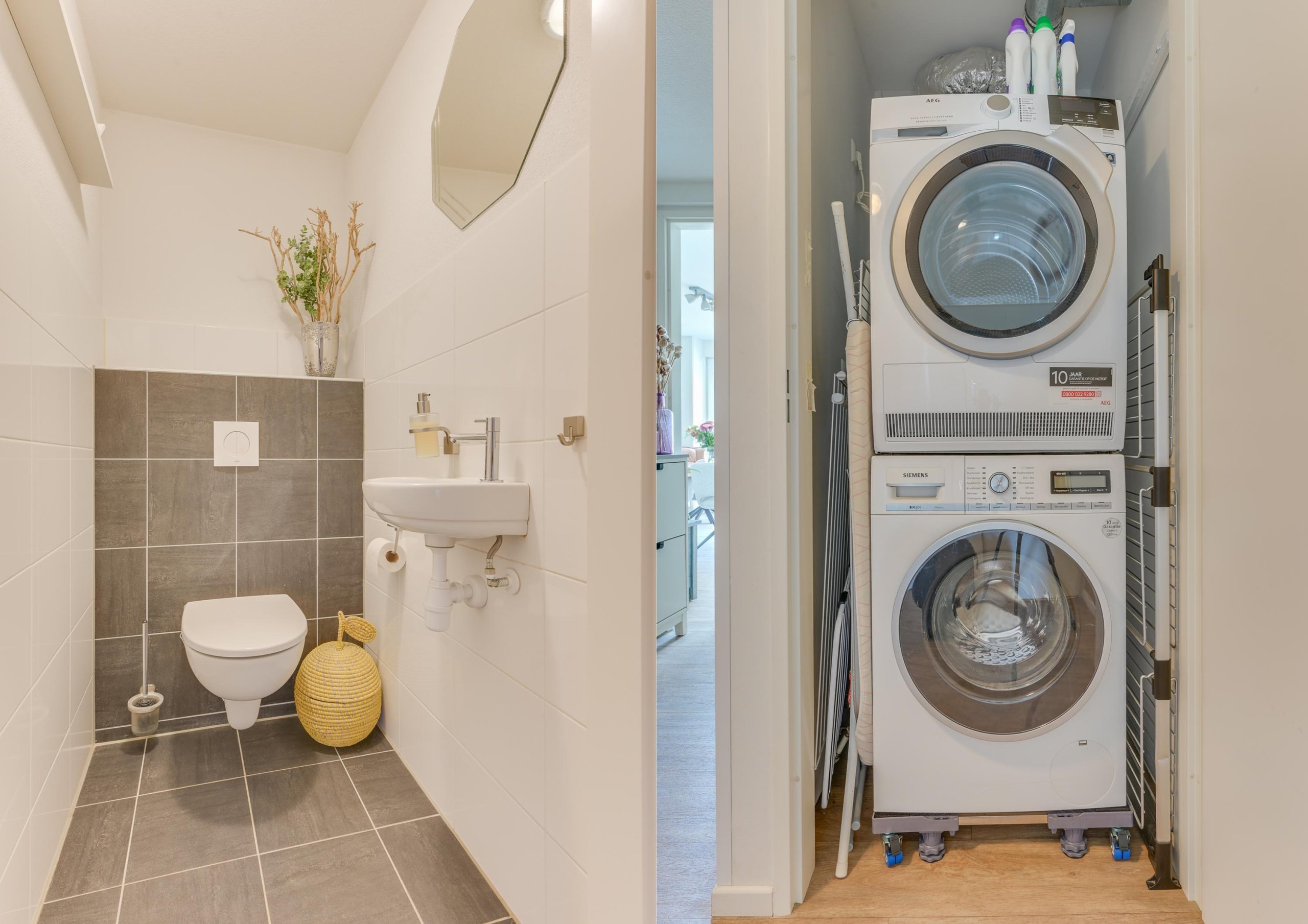 Entree, hal met meterkast (7 groepen en glasvezel) en praktische wasruimte met opstelling voor wasmachine en droger. De woning is netjes afgewerkt met onder andere vloerbedekking en behang. Het moderne toilet is volledig betegeld en voorzien van een wandcloset en fonteintje. De ruime badkamer is verzorgd uitgevoerd en beschikt over een inloopdouche, dubbele wastafel en radiator. De royale slaapkamer is voorzien van kunststof kozijnen, een radiator en elektrische screens. De tweede slaapkamer is multifunctioneel en uitstekend te gebruiken als werk- of logeerkamer of woonkamer wat nu het geval is. Vanuit deze kamer heb je via dubbele deuren toegang tot het ruime balkon.