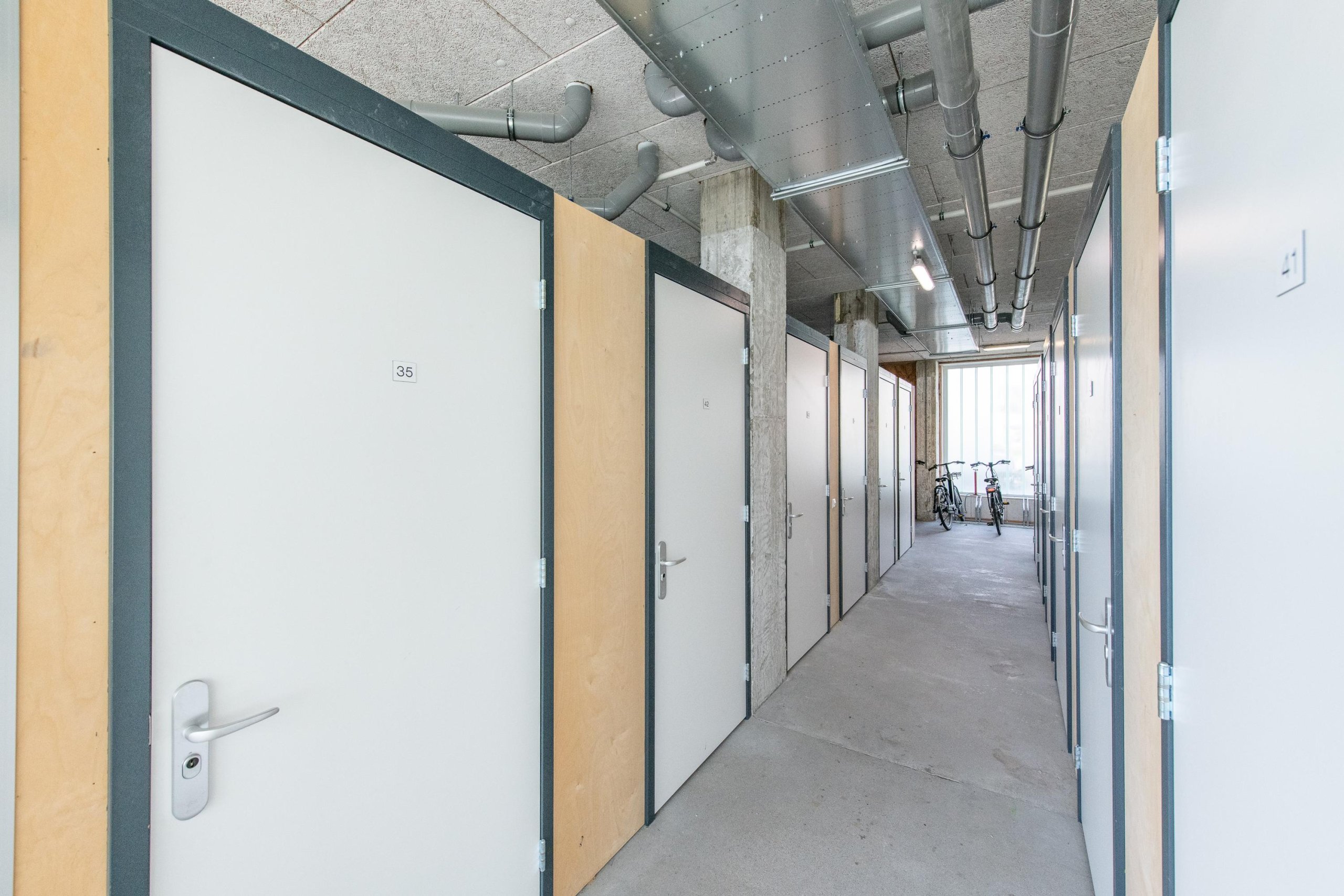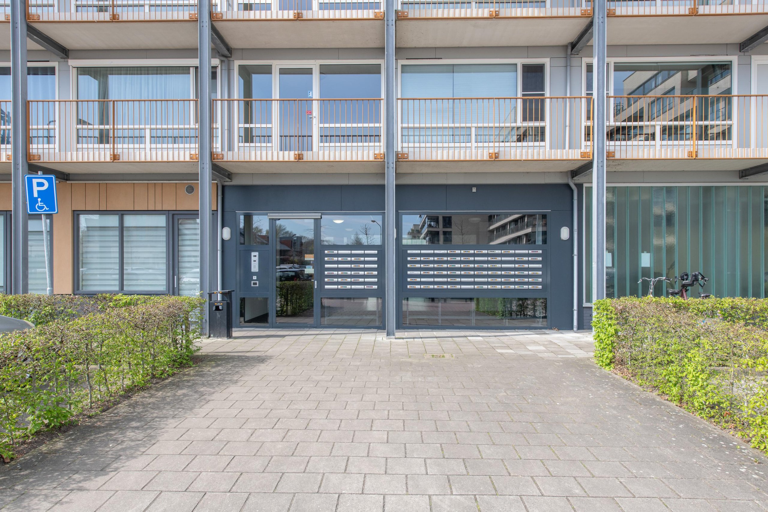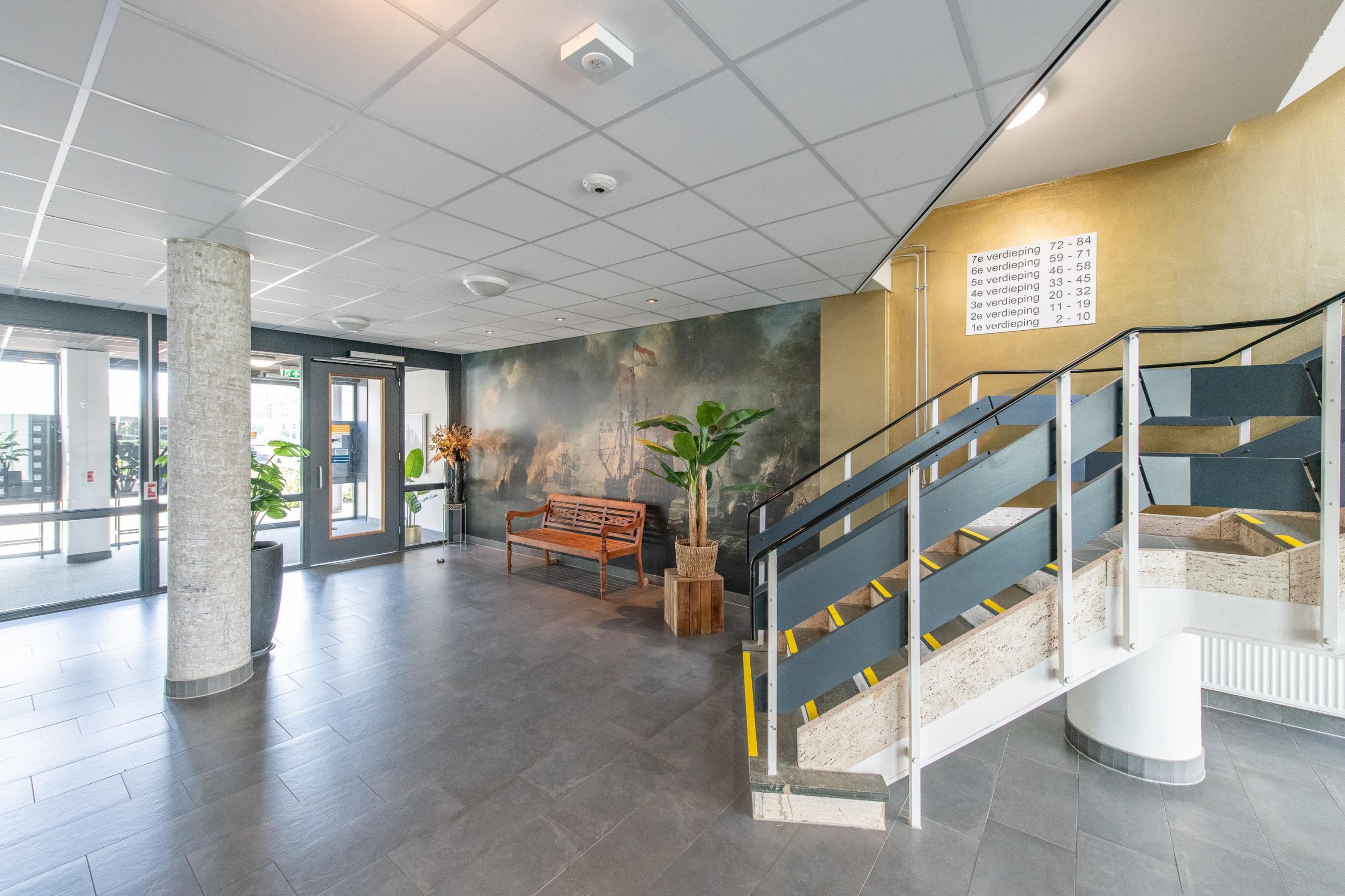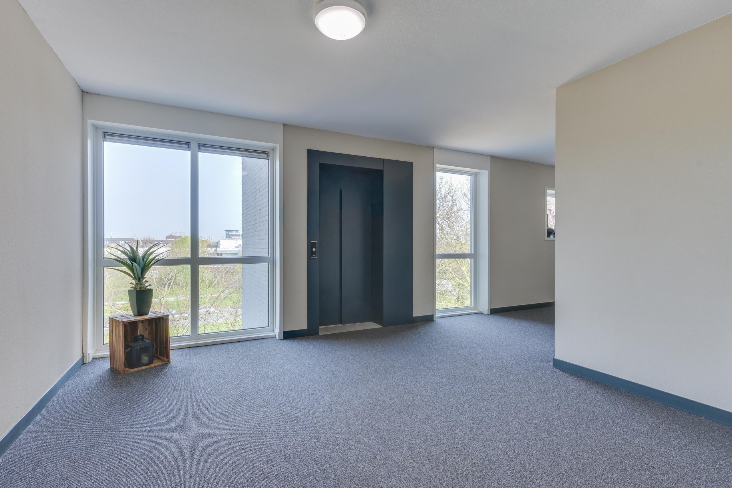 Centrale entree met videofooninstallatie, brievenbussen en toegang tot de liften (2 aanwezig). Vanuit hier bereik je de separate berging en de gezamenlijke fietsenstalling. Het appartement beschikt over een eigen berging en een privé parkeerplaats op het buitenterrein.