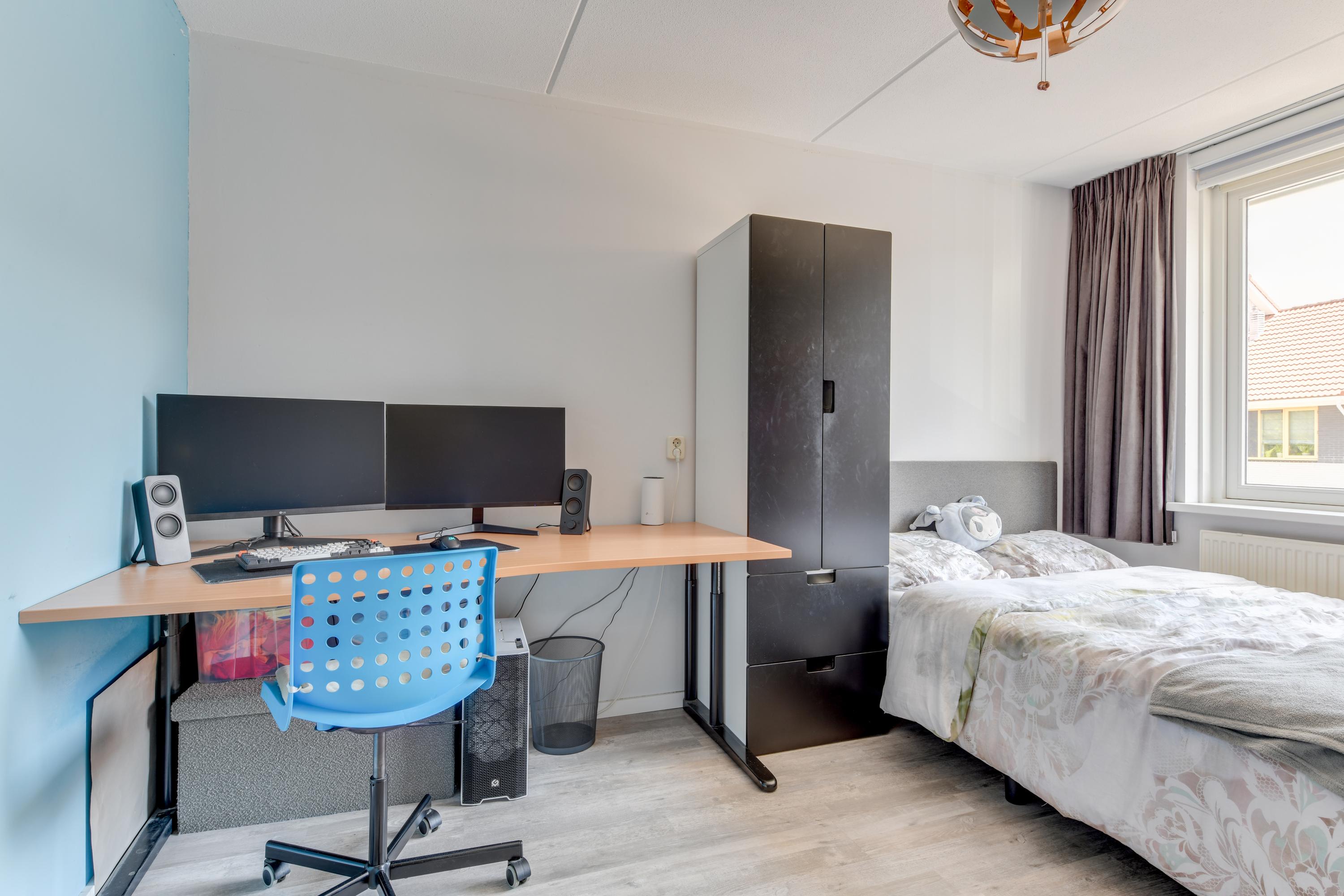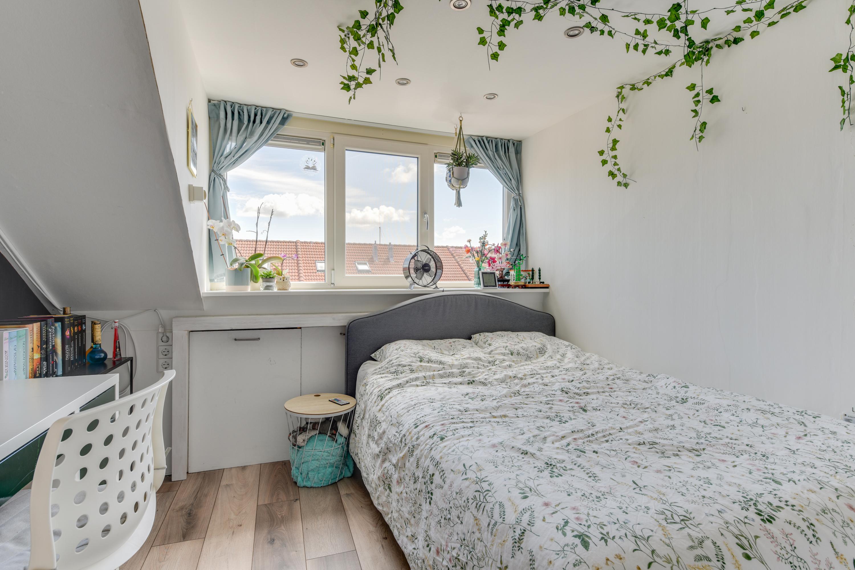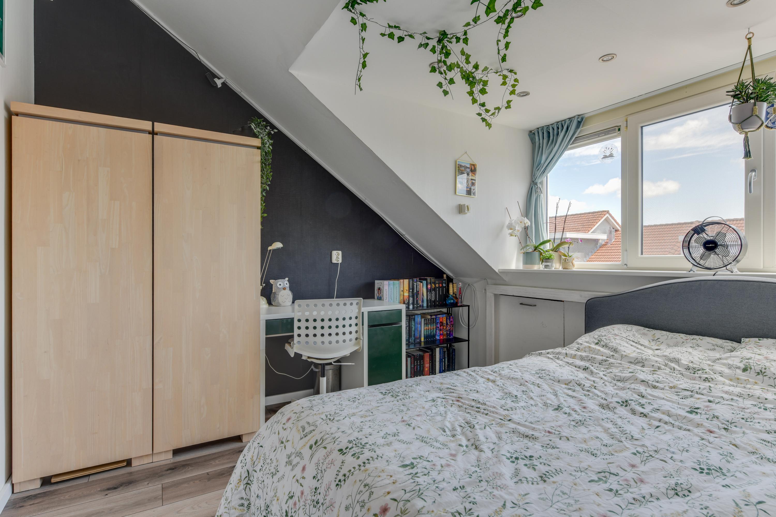 Op de tweede verdieping tref je een ruime overloop met wasmachine- en drogeropstelling en CV ketel (2009). Tevens zijn hier nog twee ruime slaapkamers te vinden, mede mogelijk gemaakt door de dakkapellen aan de voor- én achterzijde. Rolluik aan de voorzijde en screens aan de achterzijde van de dakkapellen bieden extra comfort. Aan beide zijden van deze verdieping vind je praktische bergruimte achter de schotten, die zich uitstrekken over de volledige breedte van het huis.