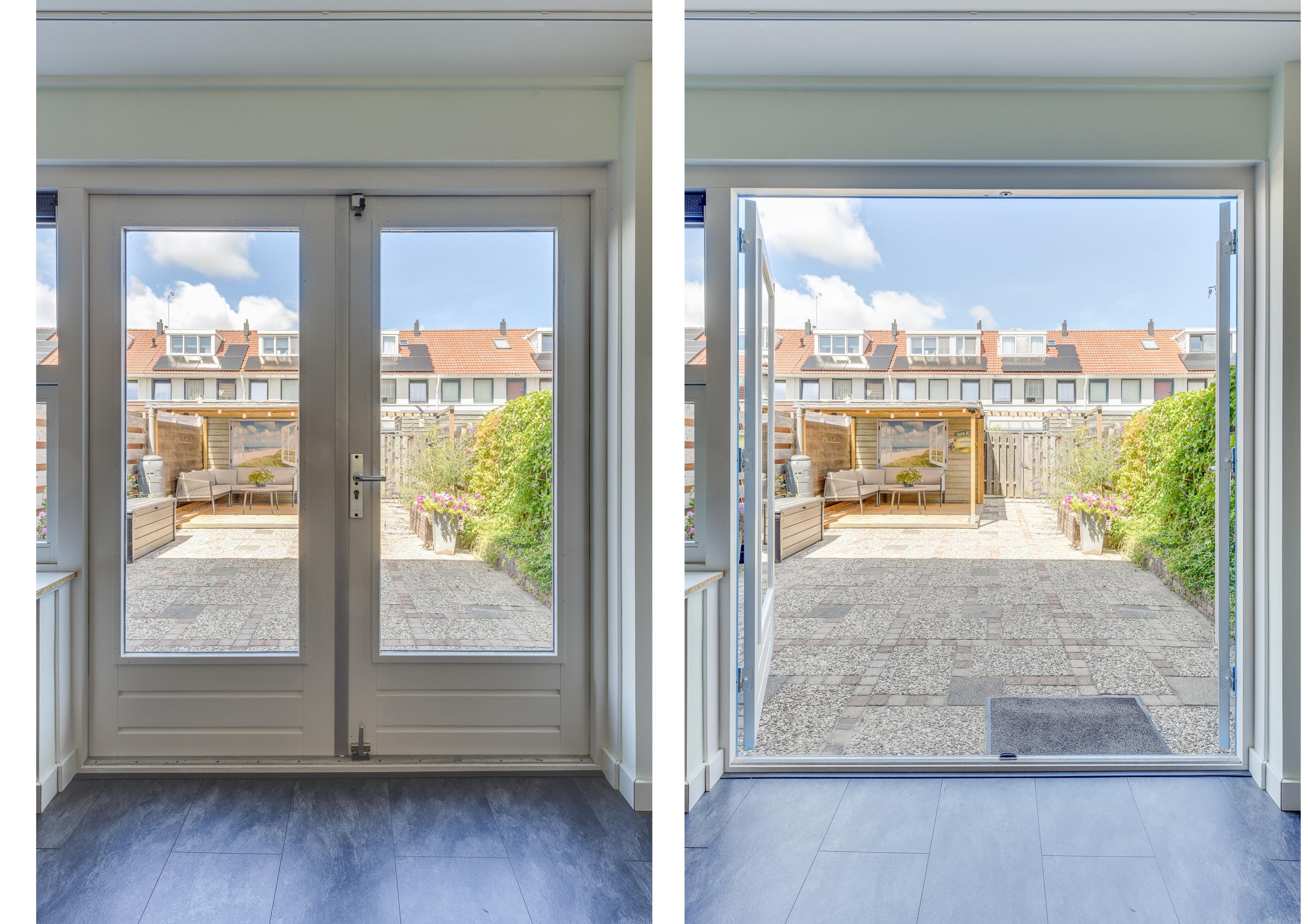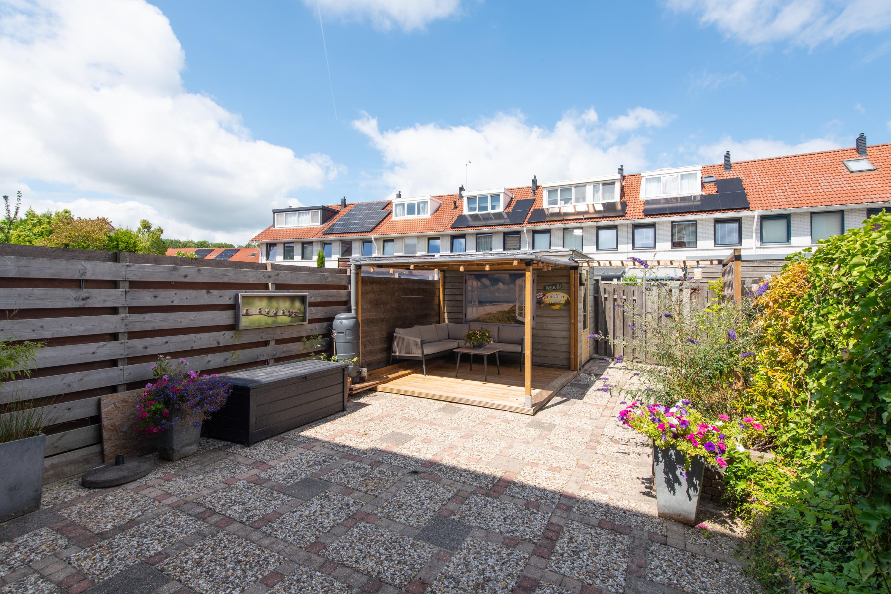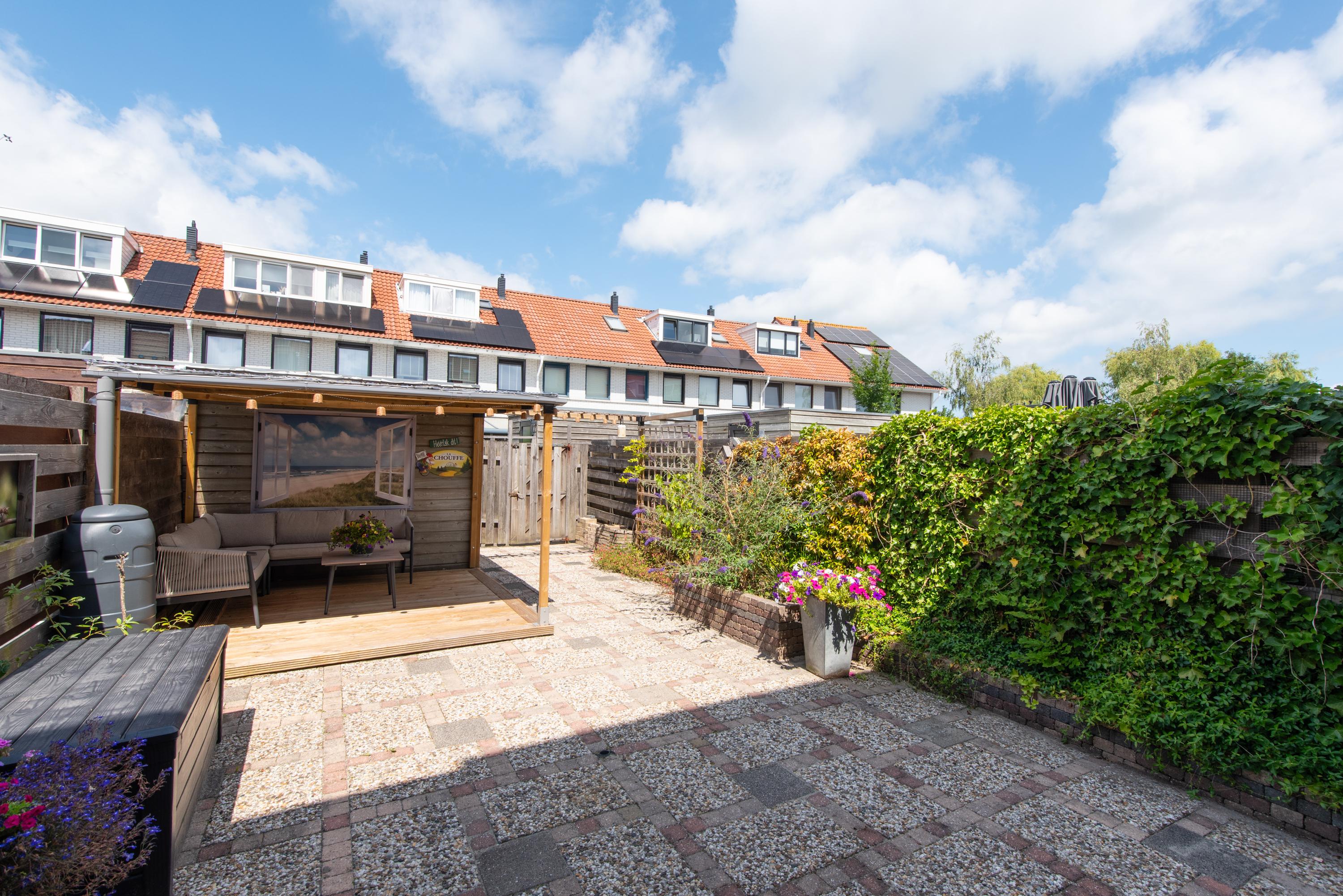 De achtertuin is onderhoudsvriendelijk aangelegd en ligt op het noordwesten, wat betekent dat je hier ’s middags en ’s avonds nog heerlijk van de zon kunt genieten. Achterin de tuin staat een vrijstaande houten berging met een overkapping: ideaal voor fietsen, tuingereedschap of een gezellige zitplek. Via de handige achterom kom je eenvoudig met je fiets in en uit.