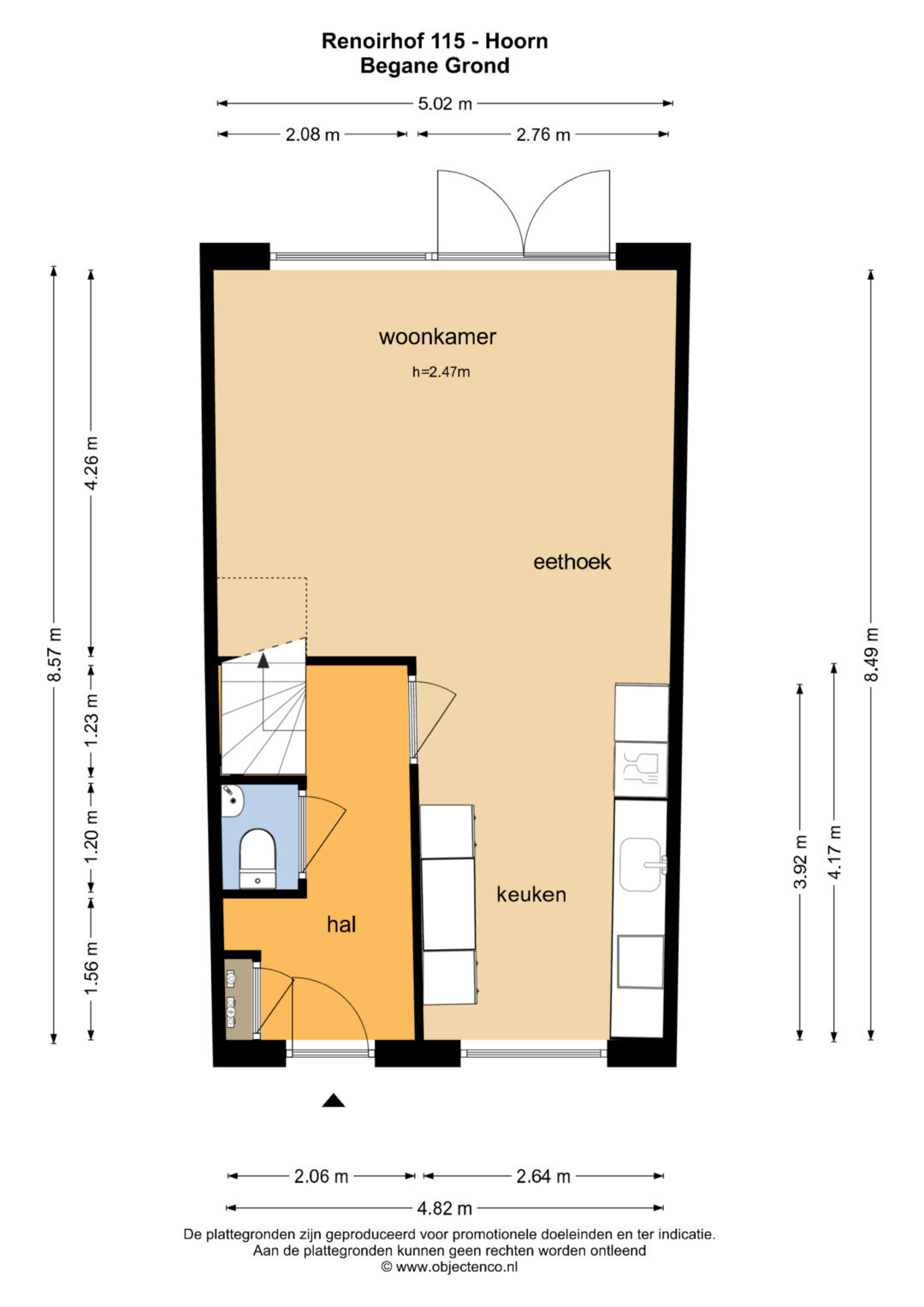De woning ligt in een rustige en ruim opgezette woonwijk aan de Renoirhof in Hoorn. Een kindvriendelijke buurt met diverse speelvoorzieningen en veel groen. Op korte afstand bevinden zich supermarkten, basisscholen, sportclubs en het NS-station Hoorn Kersenboogerd. Ook het winkelcentrum Betje Wolffplein en De Huesmolen bevinden zich op korte afstand. De binnenstad van Hoorn, met haar historische charme, gezellige haven en talloze horecagelegenheden, ligt op korte fietsafstand. Via de Provincialeweg (N506) en de A7 ben je bovendien snel op weg richting Amsterdam, Alkmaar of Enkhuizen.