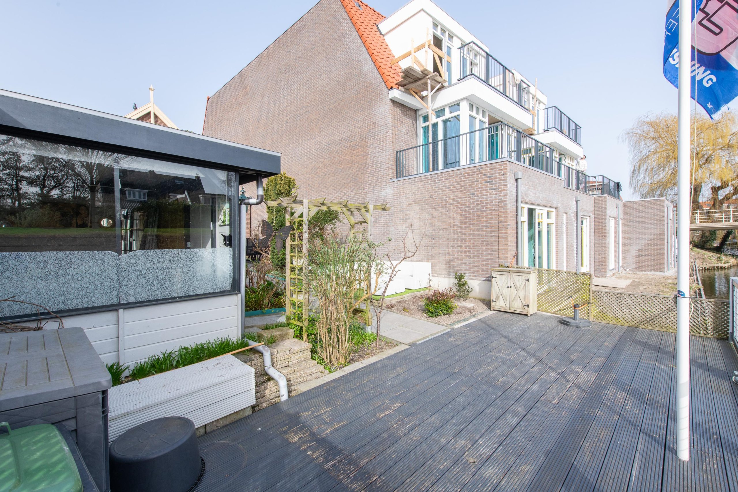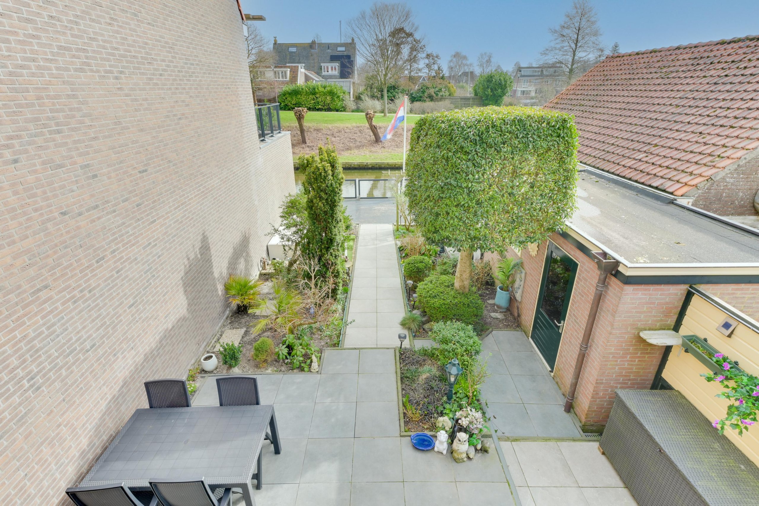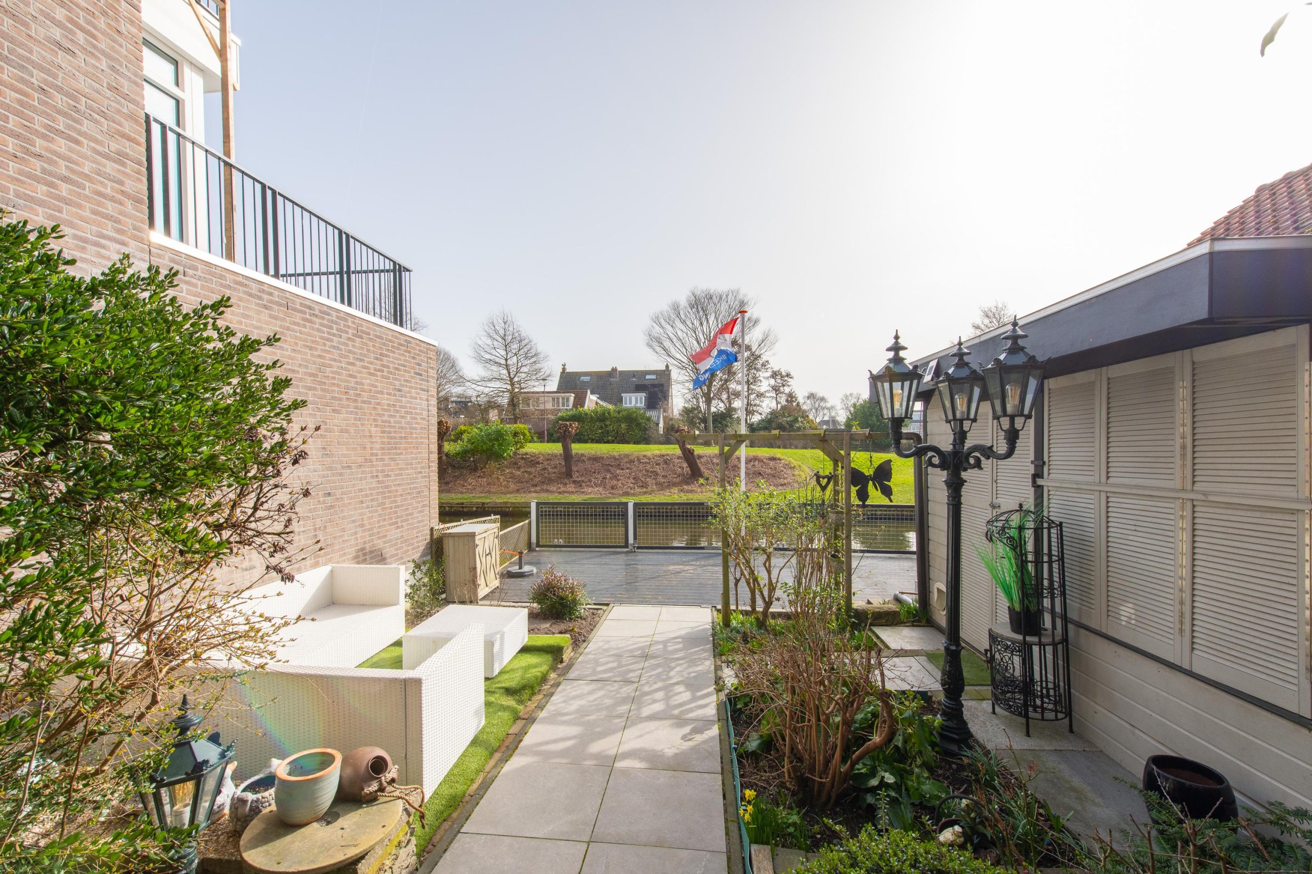 • Diepe achtertuin aan doorgaand vaarwater met achterom