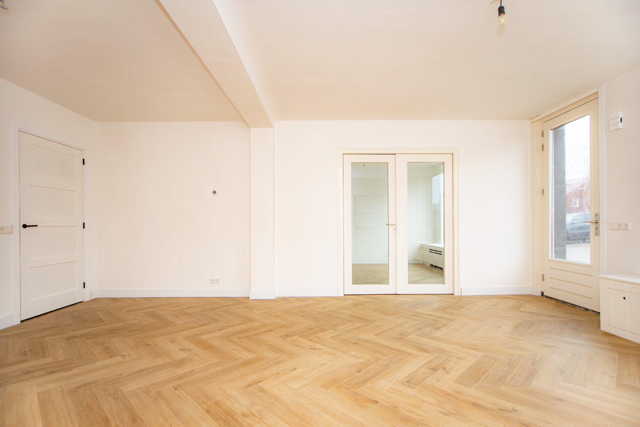 Nieuwbouw in een bestaand jasje zonder lang te hoeven wachten. Dat is een korte samenvatting van deze grote benedenwoning. De benedenwoning is het afgelopen jaar gerealiseerd in een voormalige winkelruimte en is van A tot Z nieuw en luxe afgewerkt. Door de brede deuren is de woning ook goed geschikt voor mensen die wat minder goed ter been zijn. Het pand is voorzien van nieuwe installaties, nieuwe keuken, nieuw toilet, nieuwe badkamer, nieuw stucwerk, nieuwe vloeren, nieuwe zonnepanelen en nieuwe tuinaanleg. Kortom een gespreid bedje voor de nieuwe eigenaar!