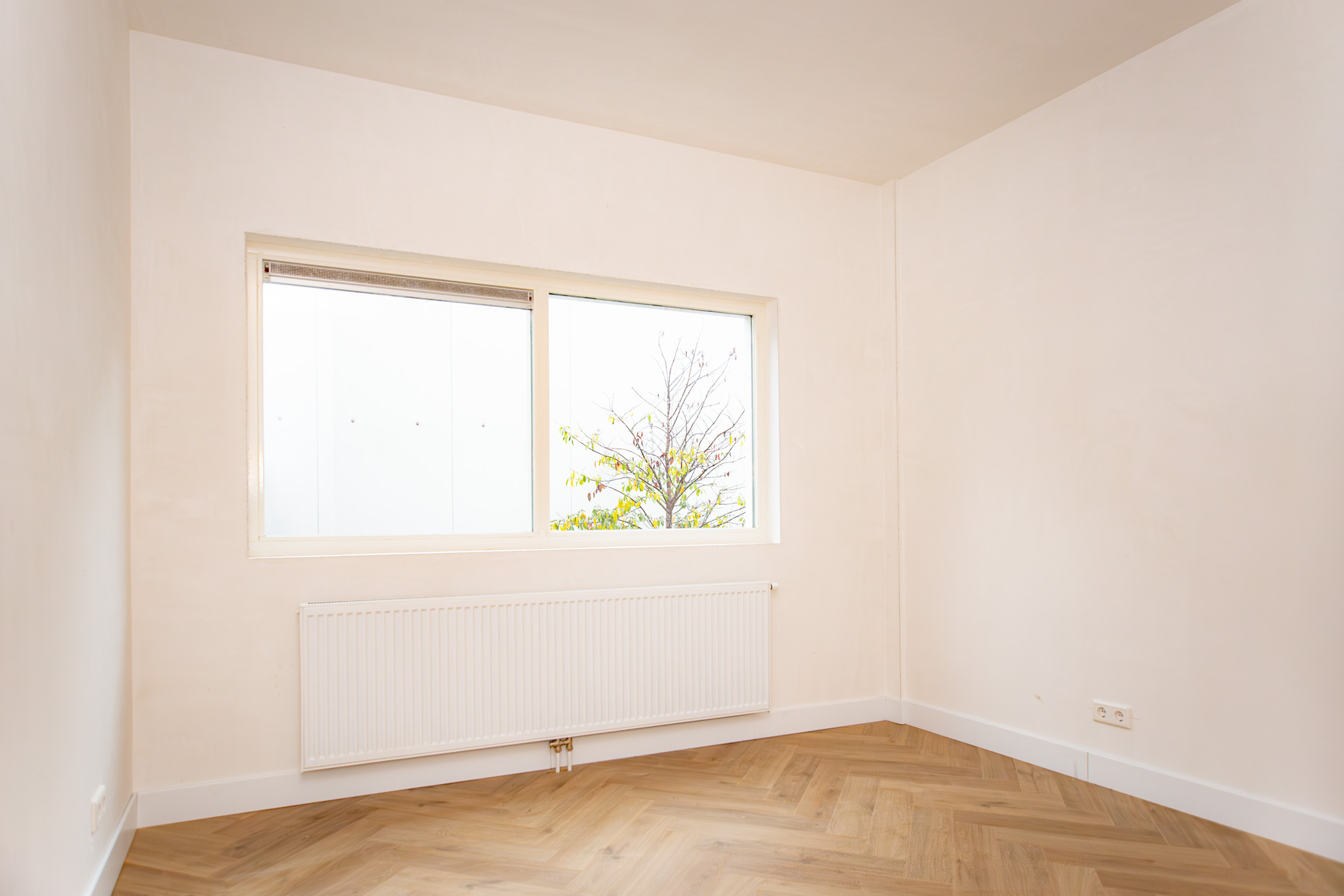 Indeling: Via de voordeur betreed je de heerlijk grote en lichte woonkamer. De woonkamer is middels grote ensuite deuren af te scheiden van de leefkeuken. De keuken is voorzien van een nieuwe keukeninrichting met allerlei inbouwapparatuur zoals een koel/vriescombinatie, inductie kookplaat, afzuigkap, vaatwasser en combimagnetron. De ruimte in de keuken biedt volop mogelijkheden om hier een eettafel neer te zetten. Naast de woonkamer ligt de bijkeuken met daarin een toiletruimte en de doorgang naar de technische ruimte waar de aansluiting van de wasmachine is gerealiseerd en de nieuwe CV ketel en ventilatiebox zijn gemonteerd. Via de hal achter de woning is er toegang tot het luxe afgewerkte toilet en 3 heerlijk grote slaapkamers. De badkamer welke eveneens lekker groot is maakt deze etage compleet. In de badkamer tref je een ligbad, wastafelmeubel en royale inloopdouche aan. Allen luxe en met smaak afgewerkt. Via één van de slaapkamers is de achtertuin op het zuiden bereikbaar. U heeft hier optimale privacy en op mooie dagen schijnt de zon hier heerlijk lang.