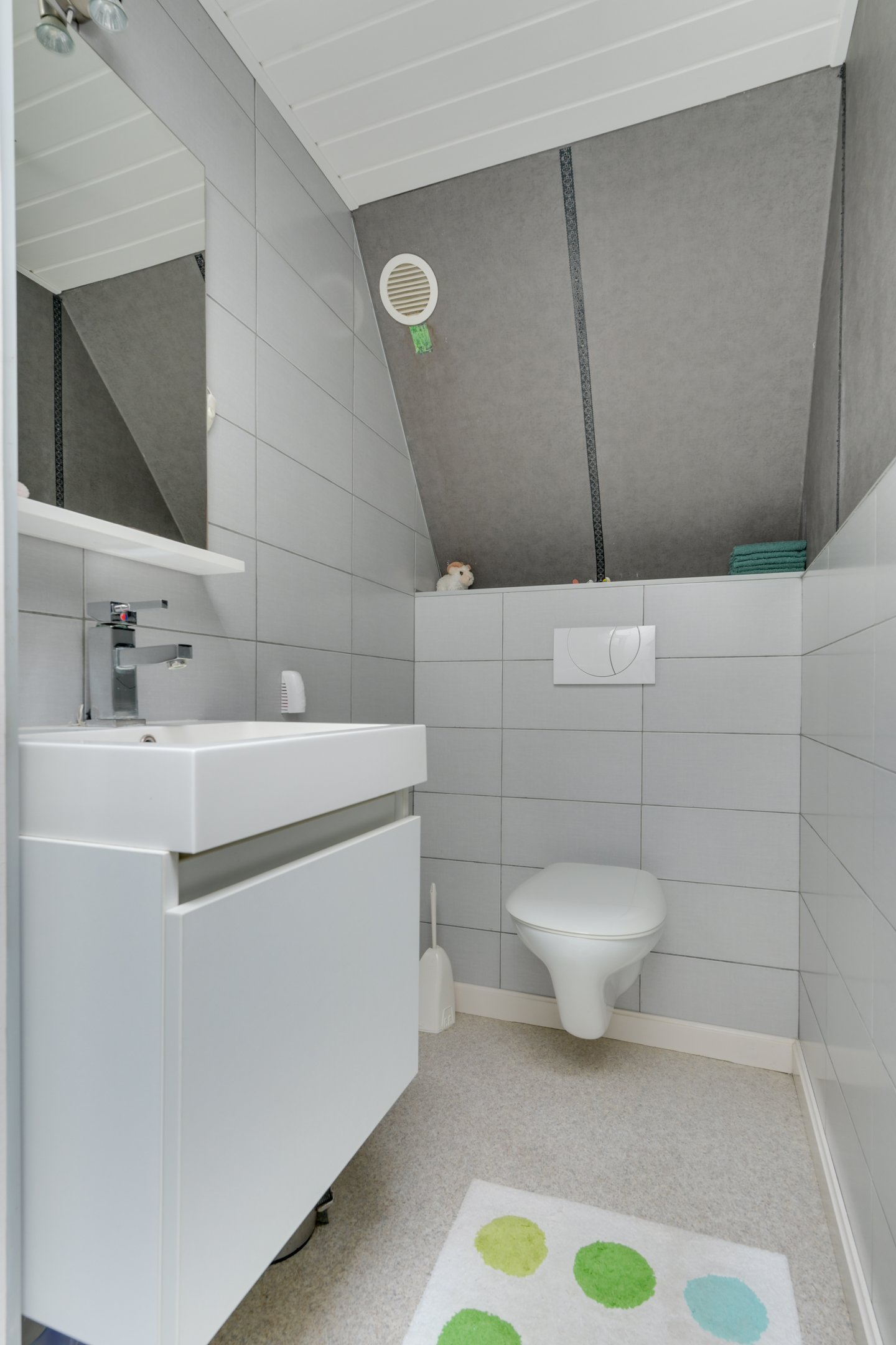 Op de eerste etage grenzen aan de overloop 4 slaapkamers waar van enkele voorzien van vaste kasten. Aan opbergruimte geen gebrek achter de schotten. Verder is er een toilet met wastafel aanwezig op deze etage.