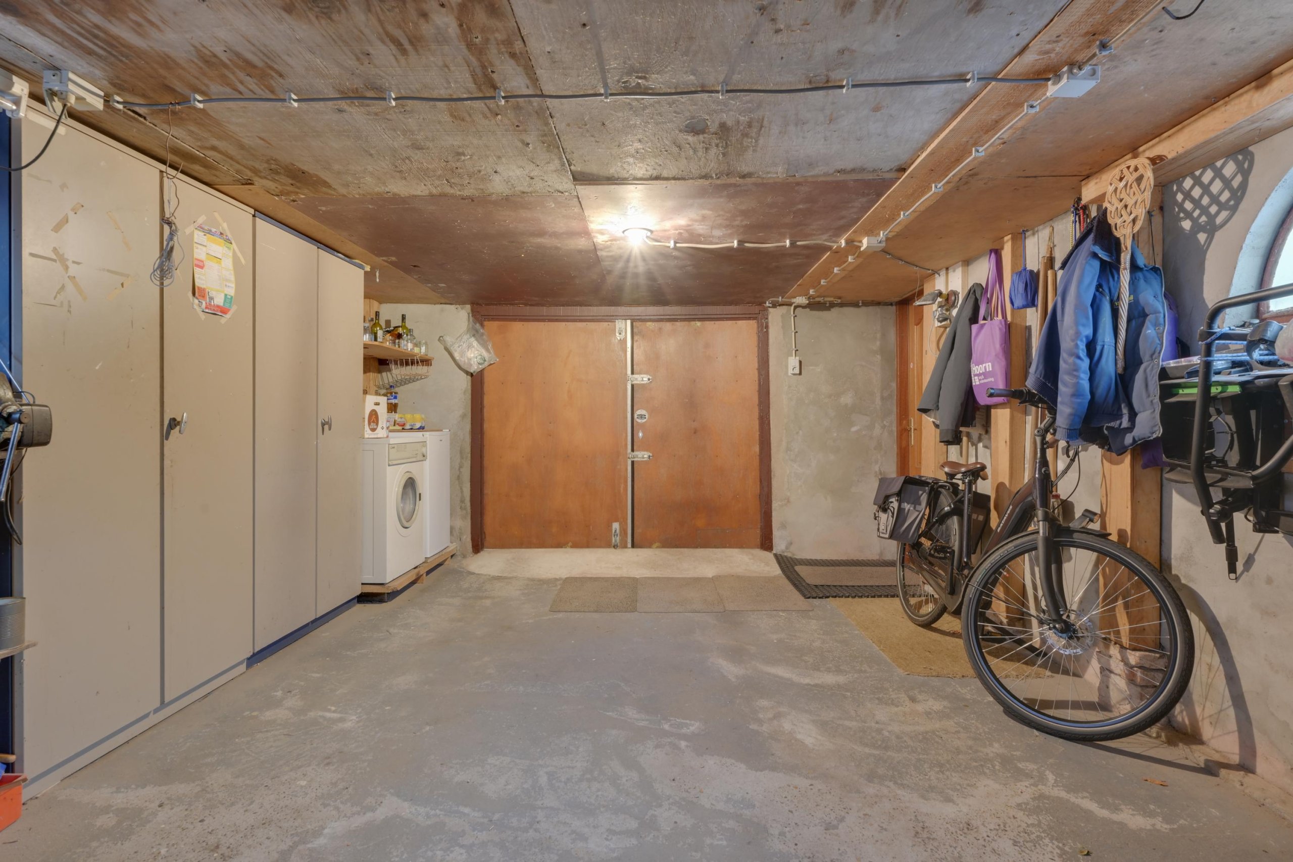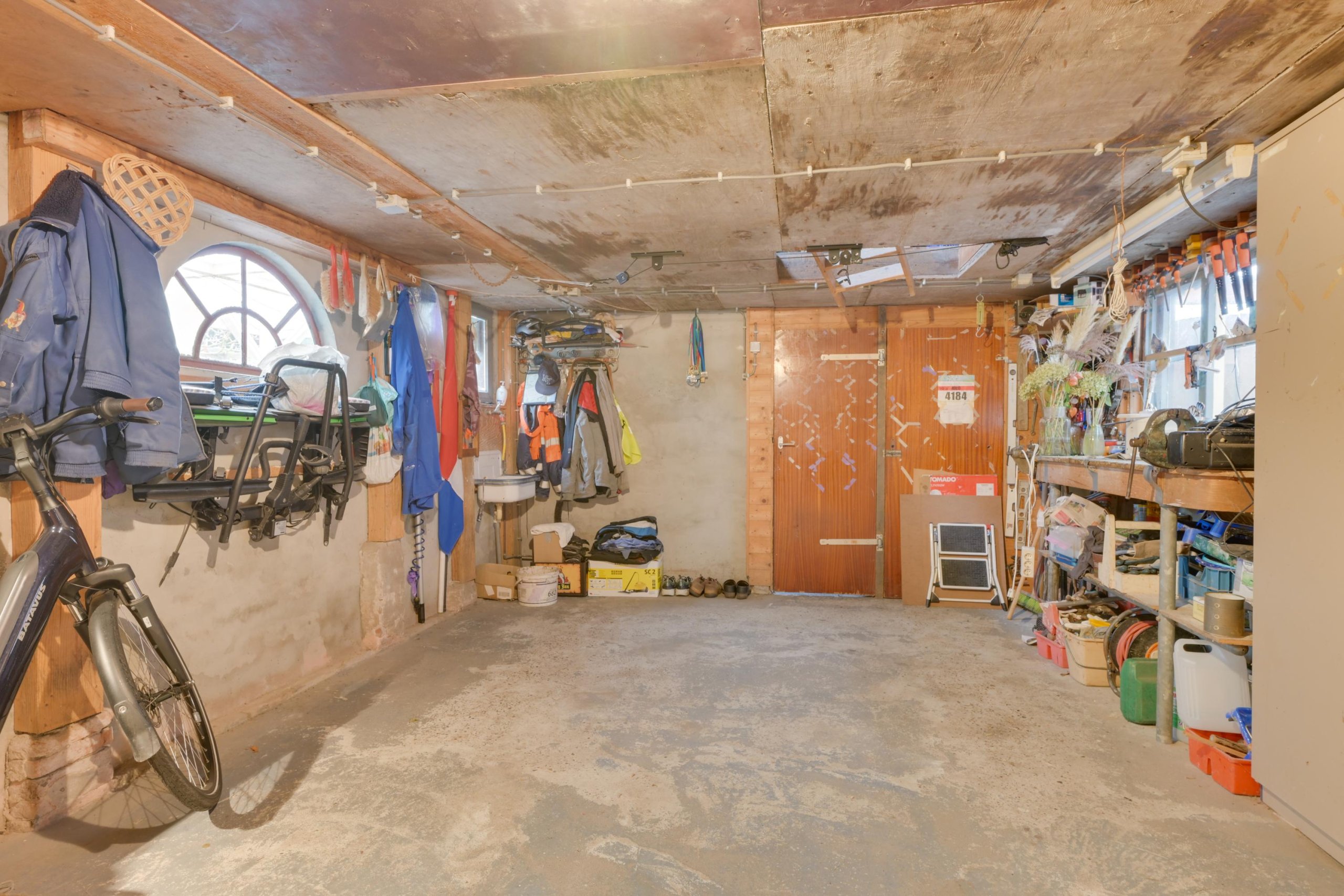 Indeling: Via het oprijpad waar met gemak 2 auto’s geparkeerd kunnen worden bereik je de woning. Via de voordeur kom je in de hal waar zich de meterkast bevindt, de trap naar de eerste etage en de badkamer met inloopdouche. Vervolgens kom je in de sfeervolle woonkamer met een gashaard, een dubbele schouw, een balken plafond, schuifpui naar de achtertuin en een open verbinding naar de keuken. De keuken is in een hoekopstelling geplaatst en voorzien van inbouwapparatuur zoals een koelkast, vaatwasser, combimagnetron, gaskookplaat en afzuigkap. Vervolgens bereik je de tweede hal met daarin opbergruimte, het toilet en toegang tot het overdekte terras in de achtertuin. De garage is via de hal bereikbaar en een heerlijke ruimte om te hobbyen, opslag of de auto te parkeren. De punt boven de garage is via een vlizotrap te bereiken en een heerlijke wegzetzolder. De berging is via de garage bereikbaar en biedt tevens toegang tot de achtertuin.