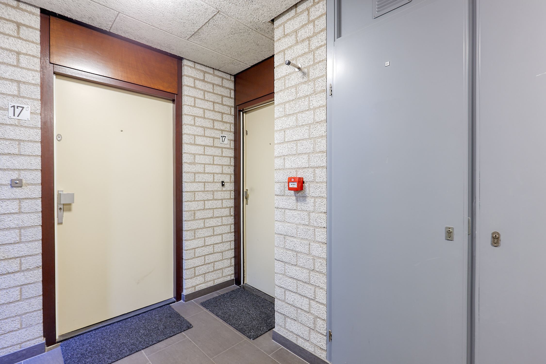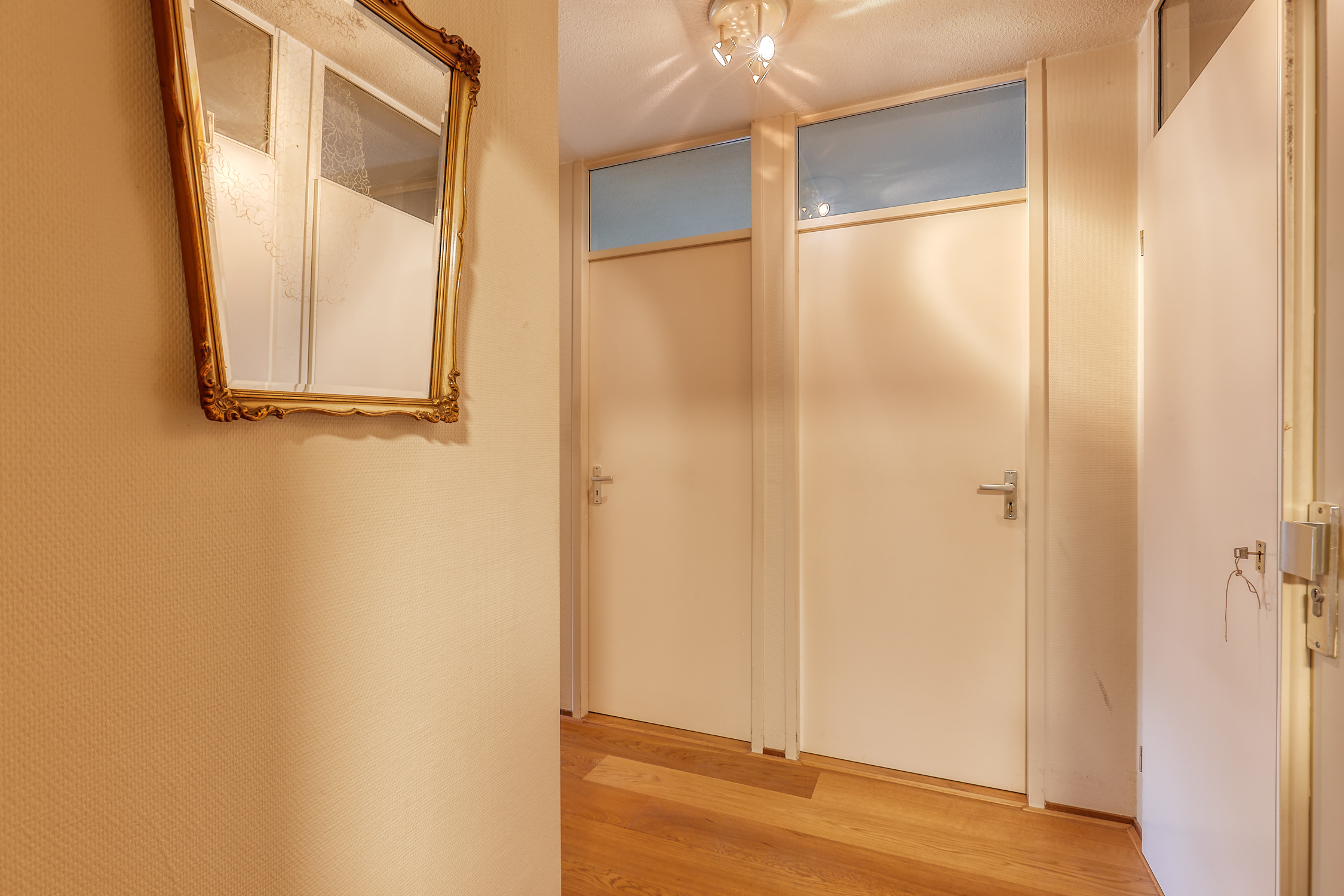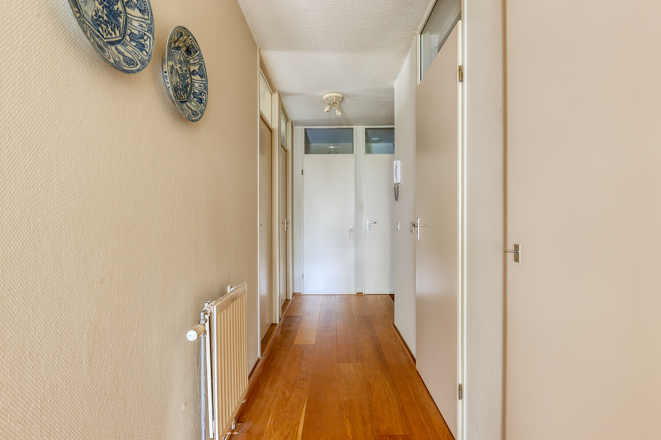 Via de afgesloten entree met bellentableau, brievenbussen en video-intercom kom je in de centrale hal met lift en trappenhuis. Vervolgens betreed je het appartement. De hal biedt toegang tot een toilet, een diepe bergkast en een stookruimte met CV-combiketel (splinternieuw).