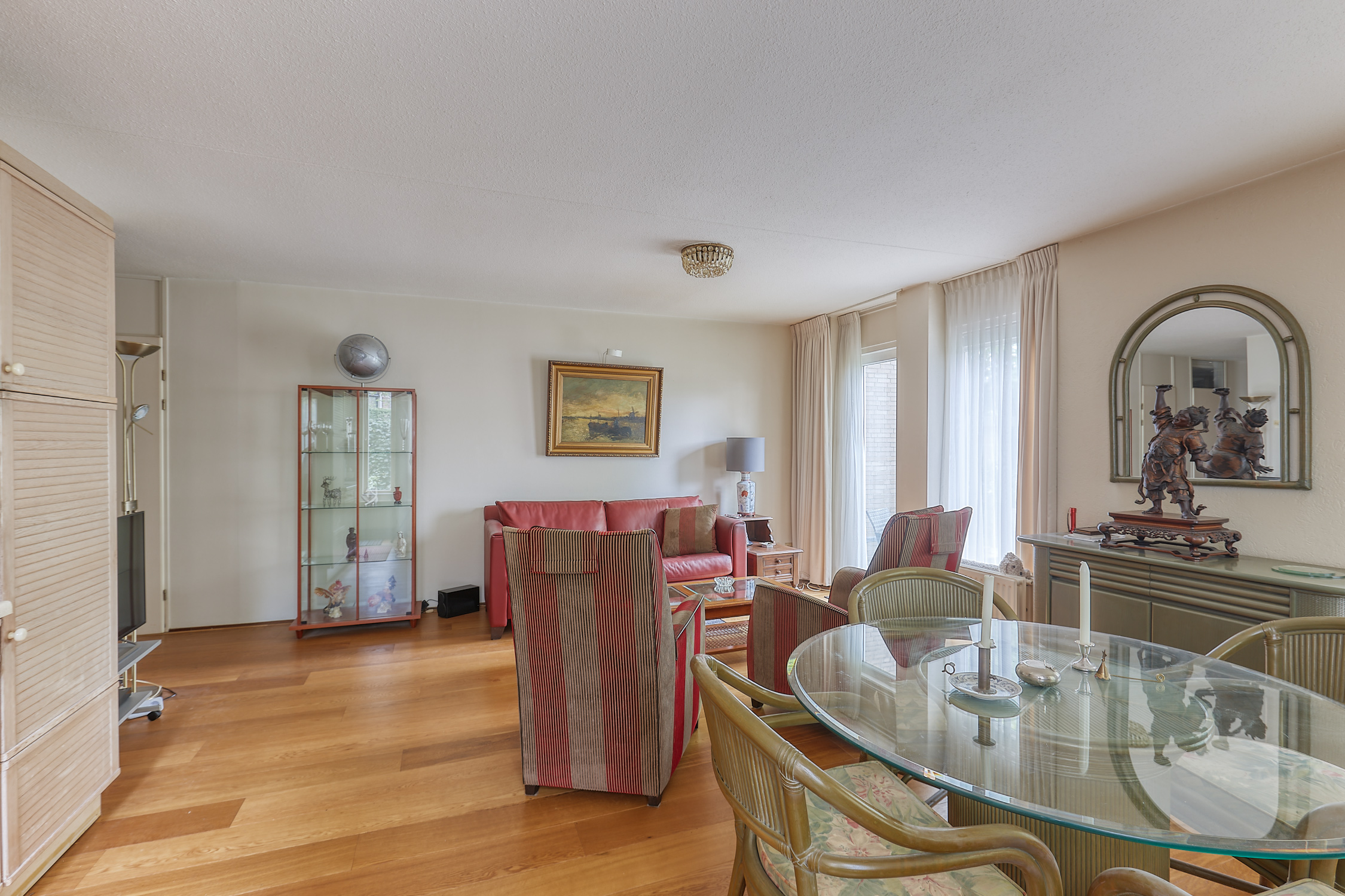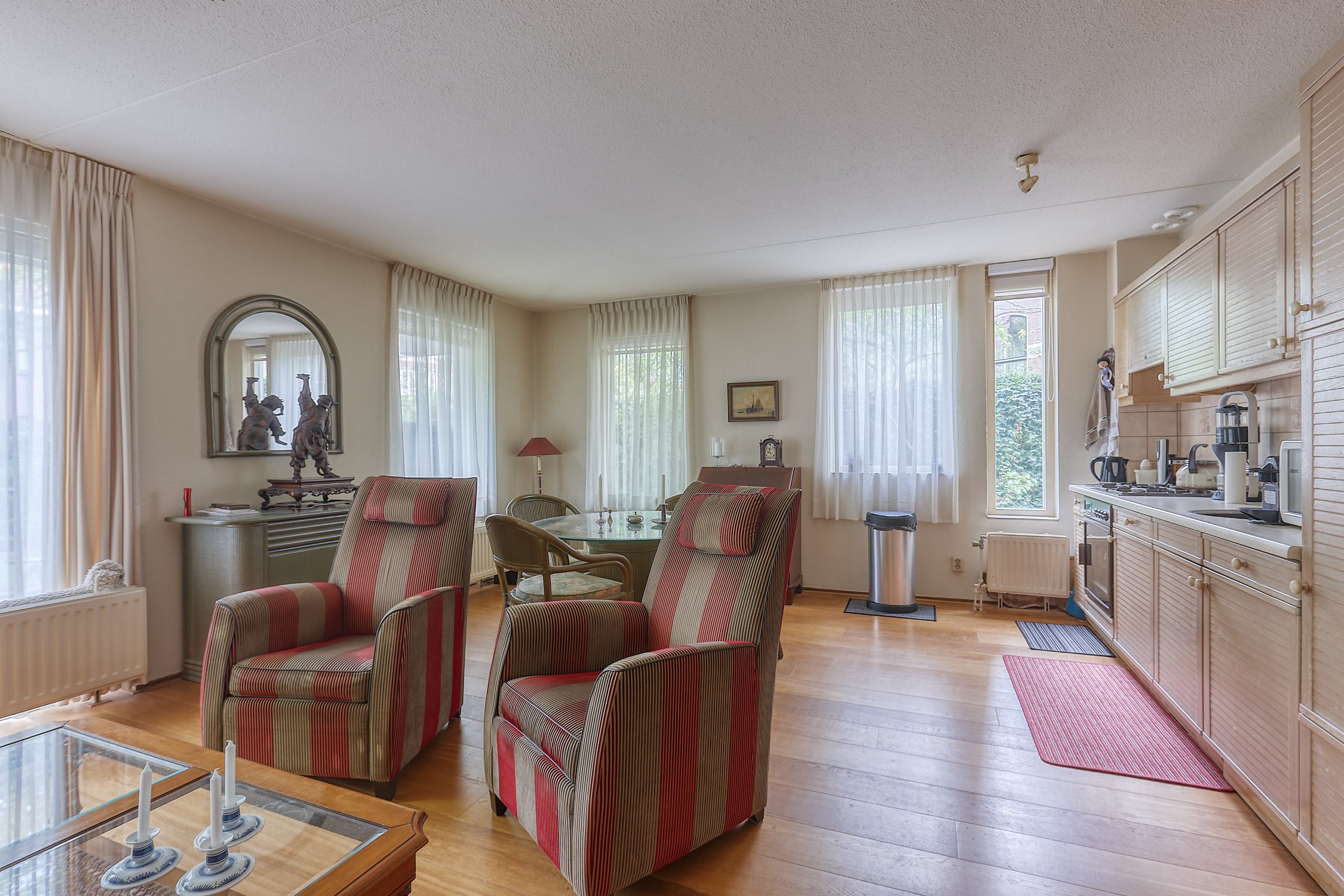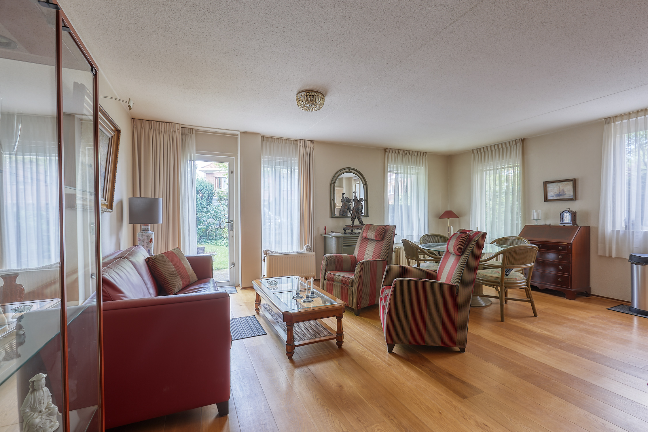 De royale, lichte woonkamer vormt samen met de open keuken het hart van het huis. Op de vloer van de woonkamer en hal ligt een fraaie eikenhouten vloer. De keuken is uitgevoerd in een praktische opstelling. Via de woonkamer stap je zo het zonnige terras met bijhorende tuin op. Een heerlijke plek om te ontspannen, tuinieren en te zonnen. Voor de warme dagen is er een zonwering aanwezig.