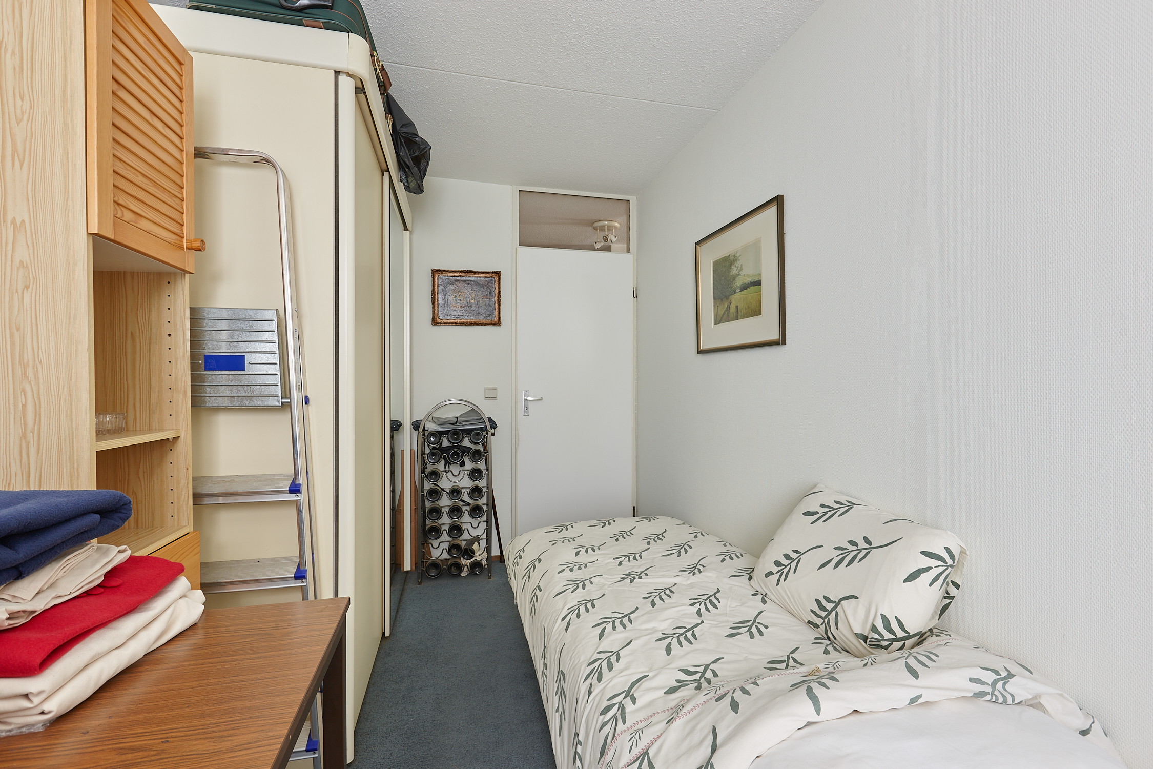 De hoofdslaapkamer biedt volop ruimte en licht. De tweede slaapkamer is ideaal als logeerkamer, werkruimte of inloopkast. De badkamer is functioneel ingericht met douche, wastafel en aansluiting voor wasmachine en droger. In het souterrain bevindt zich bovendien een eigen berging.