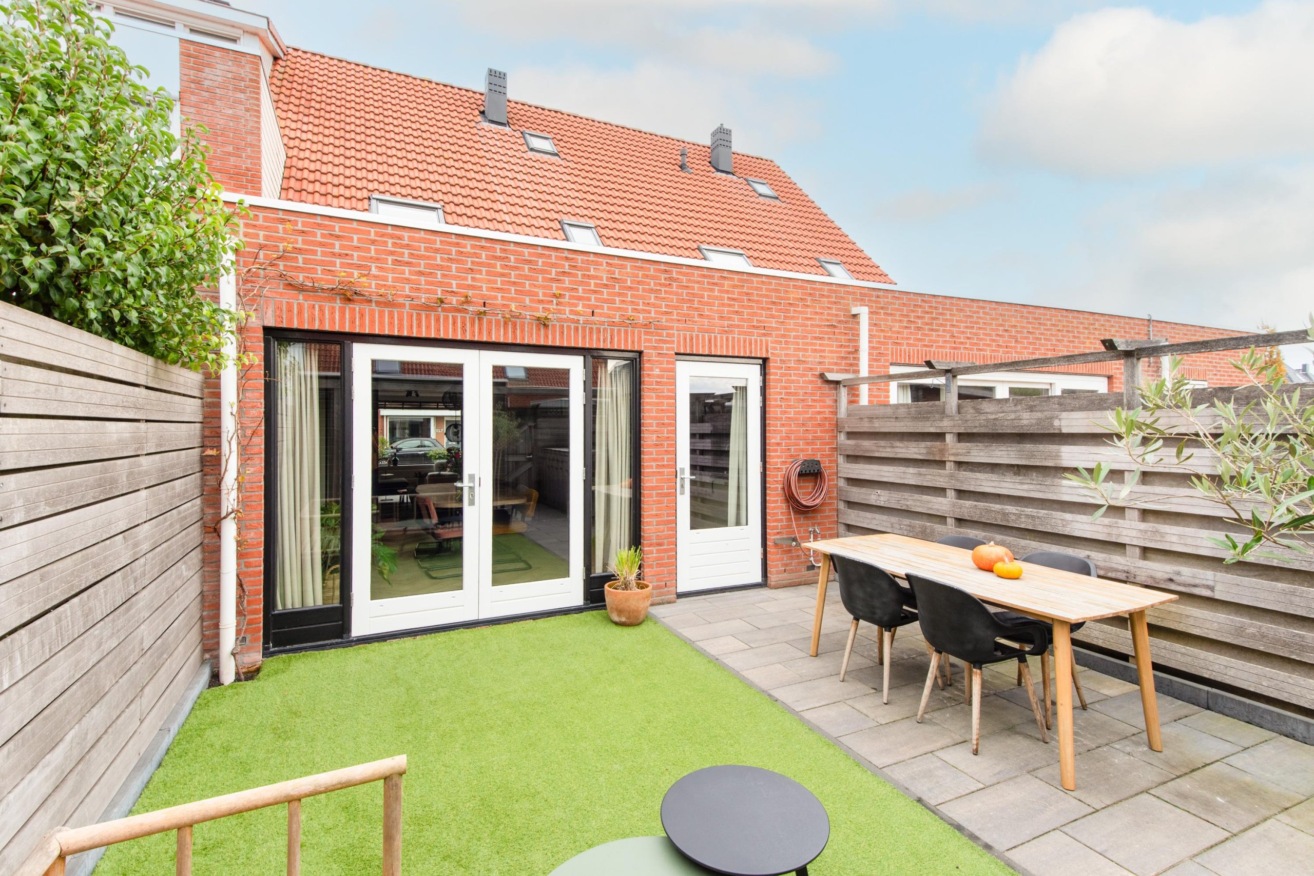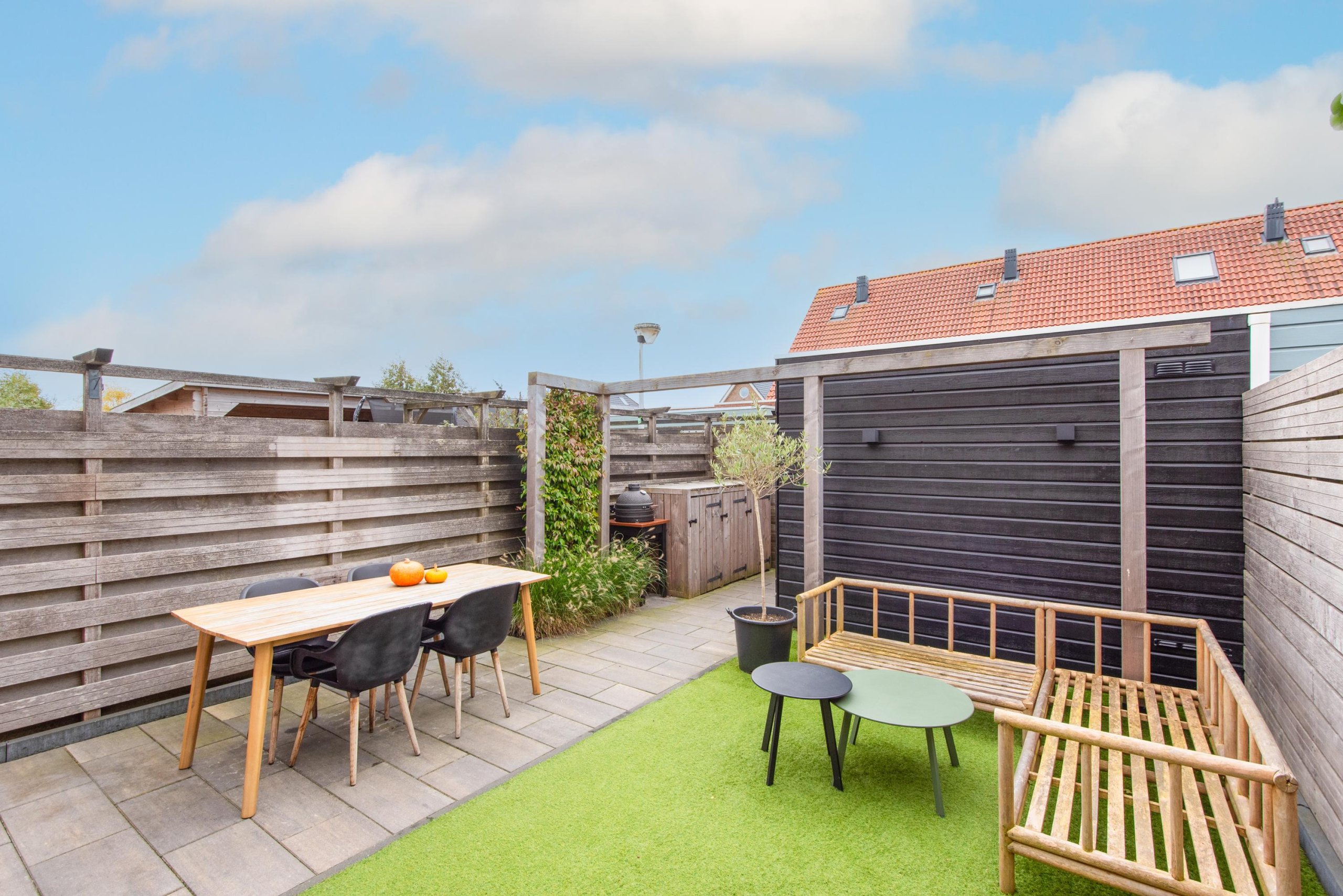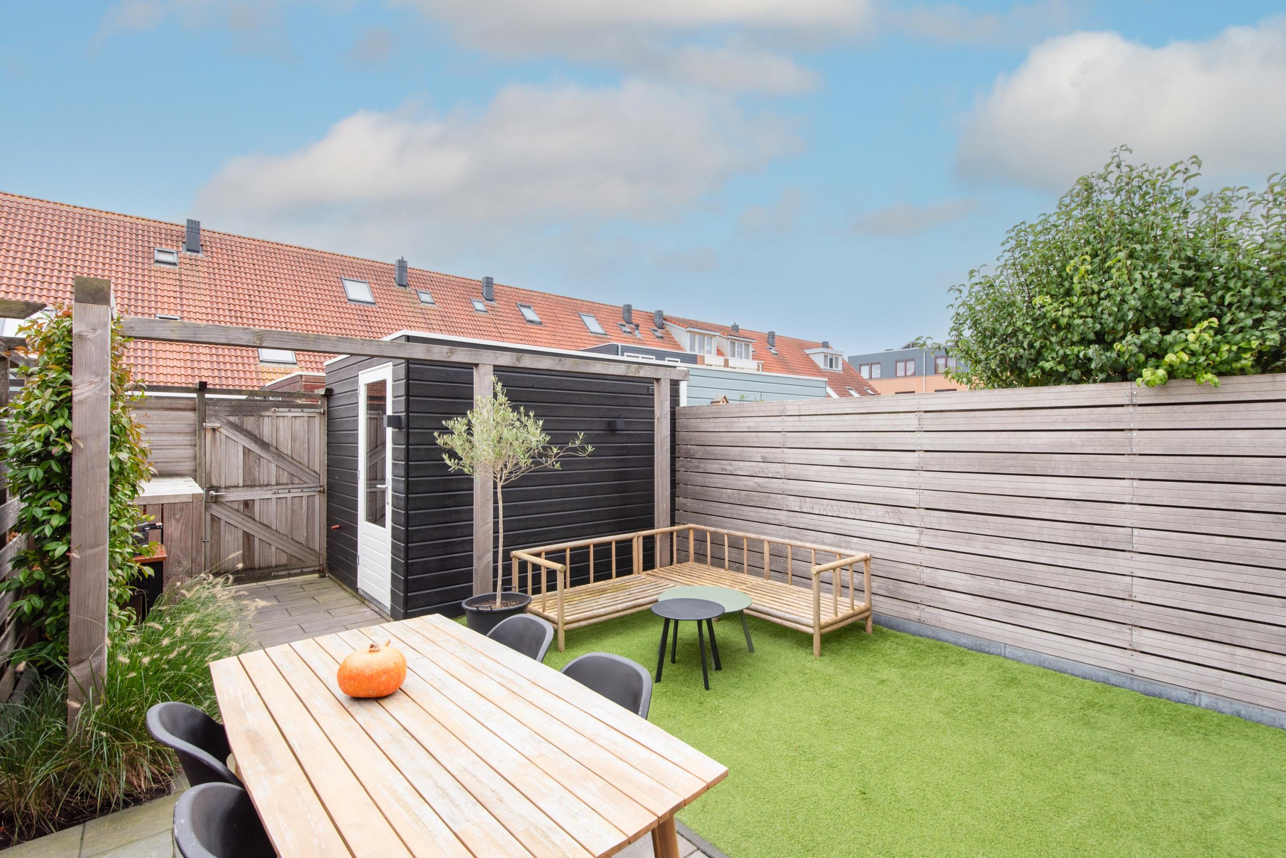 De zonnige achtertuin ligt op het zuiden en is keurig aangelegd. Je kunt hier de hele dag door van de zon genieten. De tuin is voorzien van een berging en een achterom.