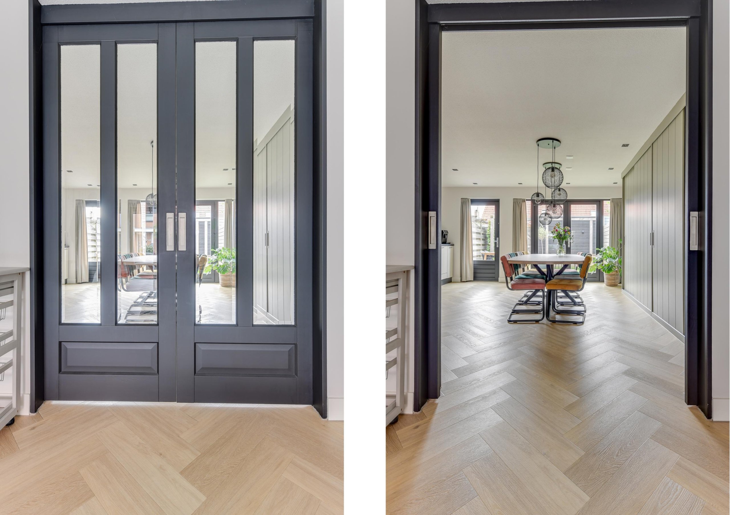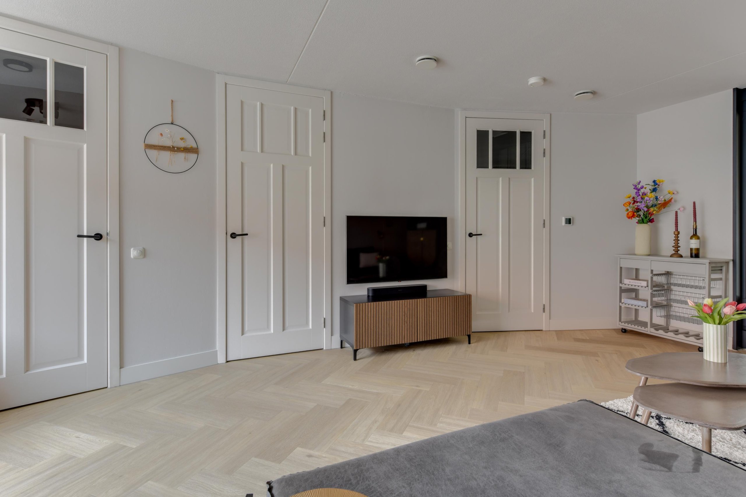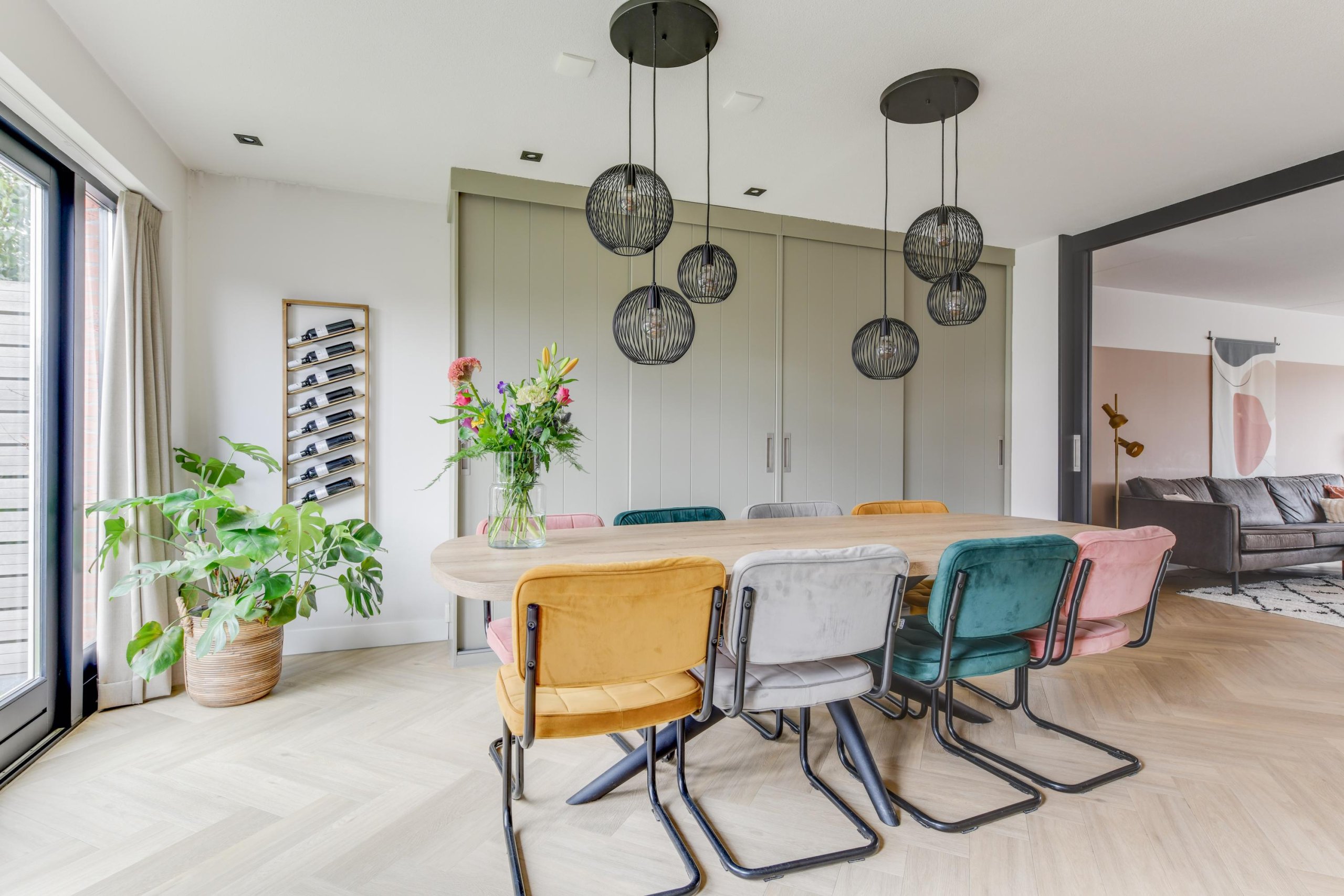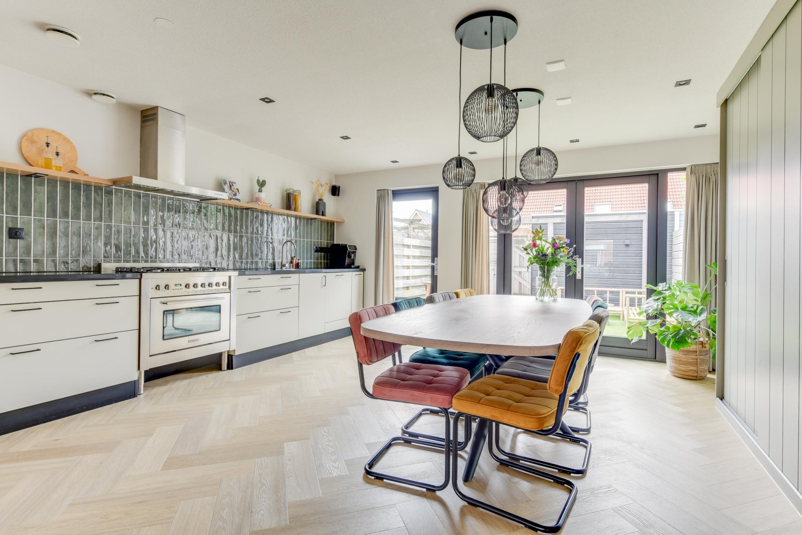 Via de hal met meterkast bereik je de sfeervolle woonkamer. De visgraat pvc vloer en paneeldeuren zorgen direct voor een luxe uitstraling. In de woonkamer bevindt zich een praktische trapkast, ideaal voor extra opbergruimte. Vanuit de woonkamer kom je in de tussenhal met het toilet en de trapopgang naar de eerste verdieping. Via de ensuite deuren bereik je de ruime woonkeuken. De keuken is modern ingericht en voorzien van diverse inbouwapparatuur. De grote inbouwkast biedt verrassend veel bergruimte in de keuken. Dankzij de grote raampartij met dubbele deuren naar de tuin is het hier heerlijk licht en ruimtelijk.