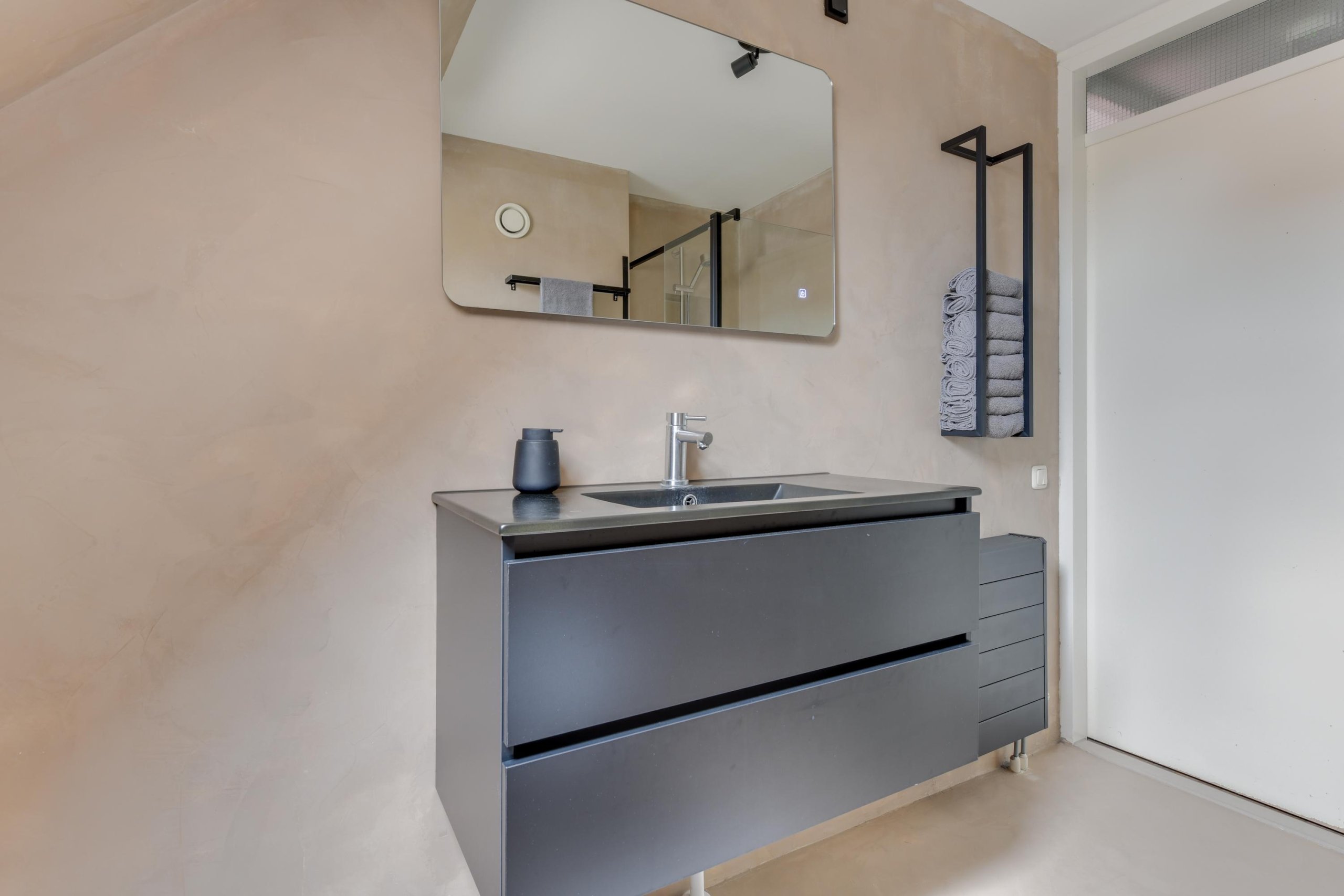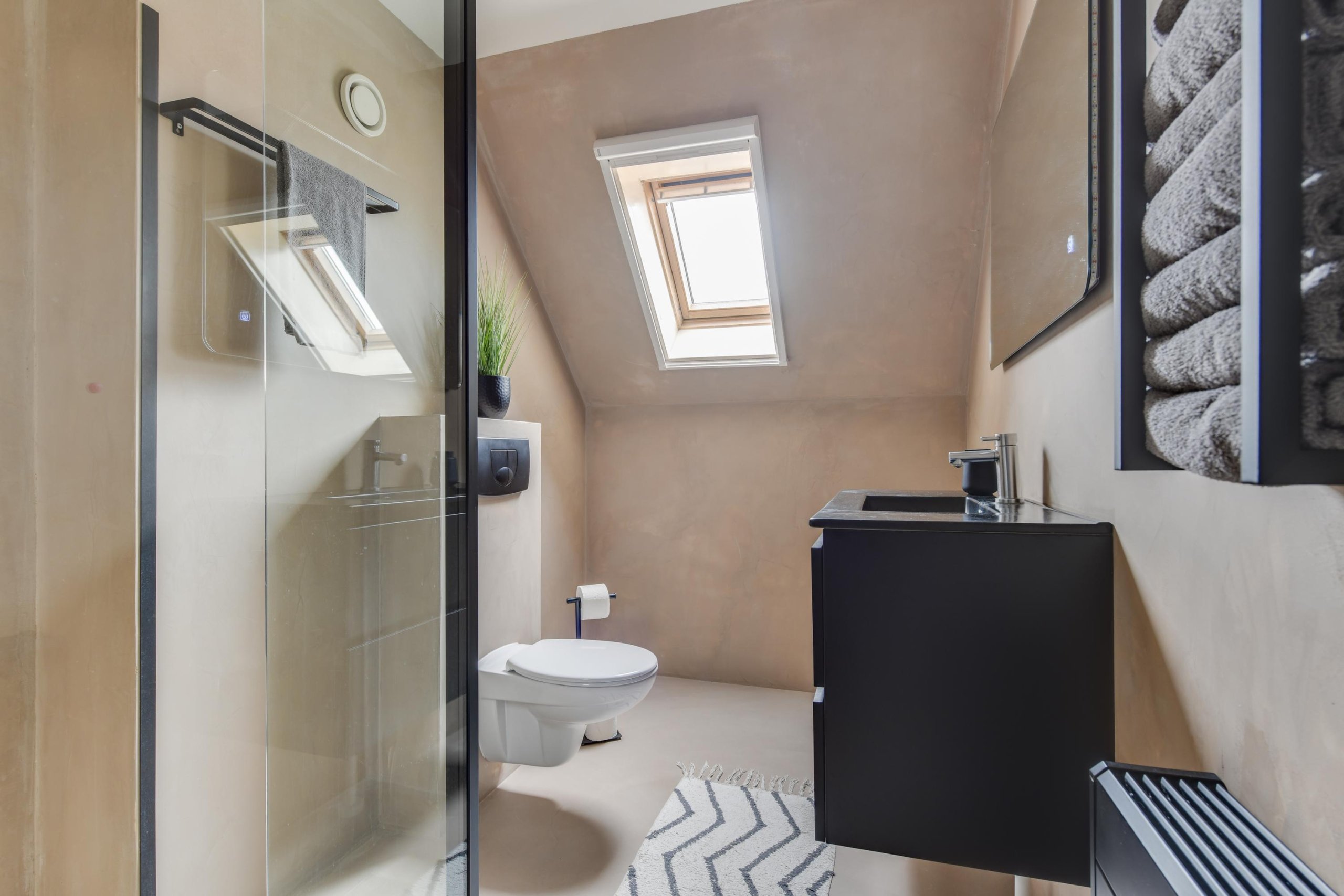 Op de eerste verdieping bevinden zich drie slaapkamers en een moderne badkamer. De badkamer is voorzien van een inloopdouche, wastafelmeubel, tweede toilet, mechanische ventilatie en een dakraam voor daglicht en natuurlijke ventilatie.