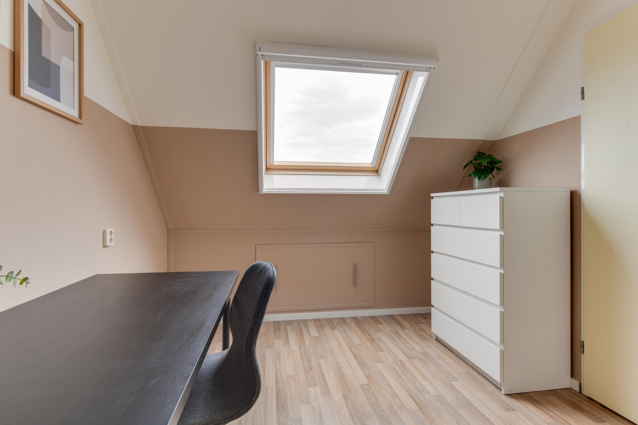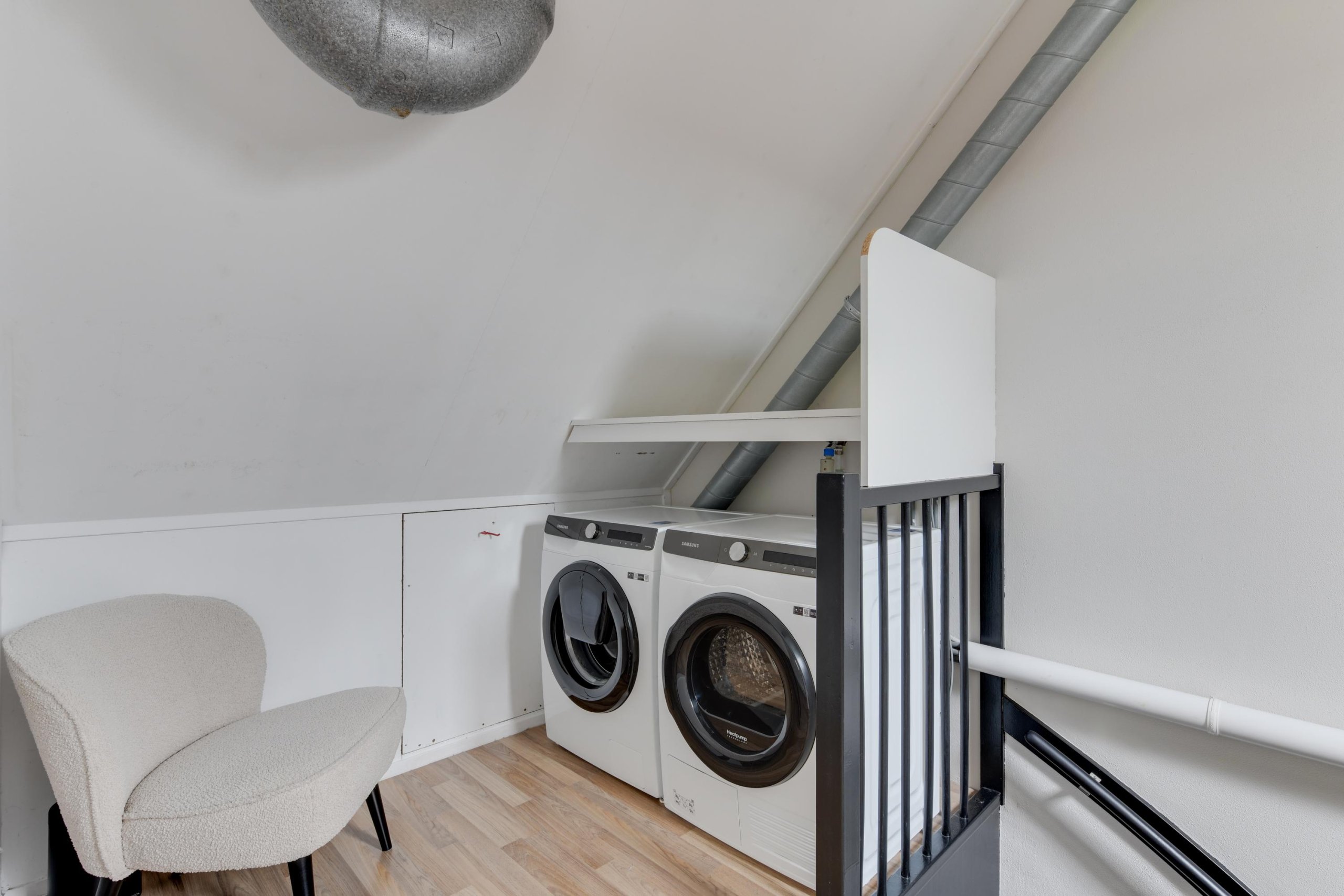 Via een vaste trap bereik je de zolderverdieping, waar een vierde slaapkamer is gerealiseerd. Hier vind je ook extra bergruimte, de cv-ketel (2022) en de aansluiting voor de wasmachine.