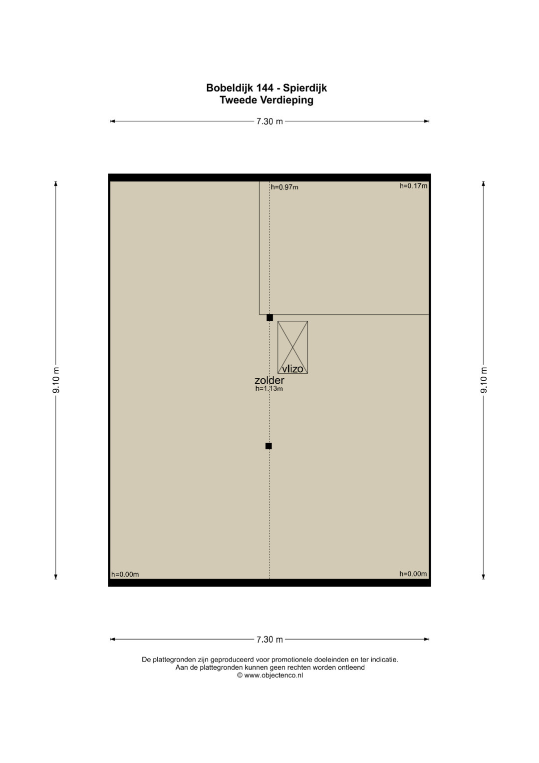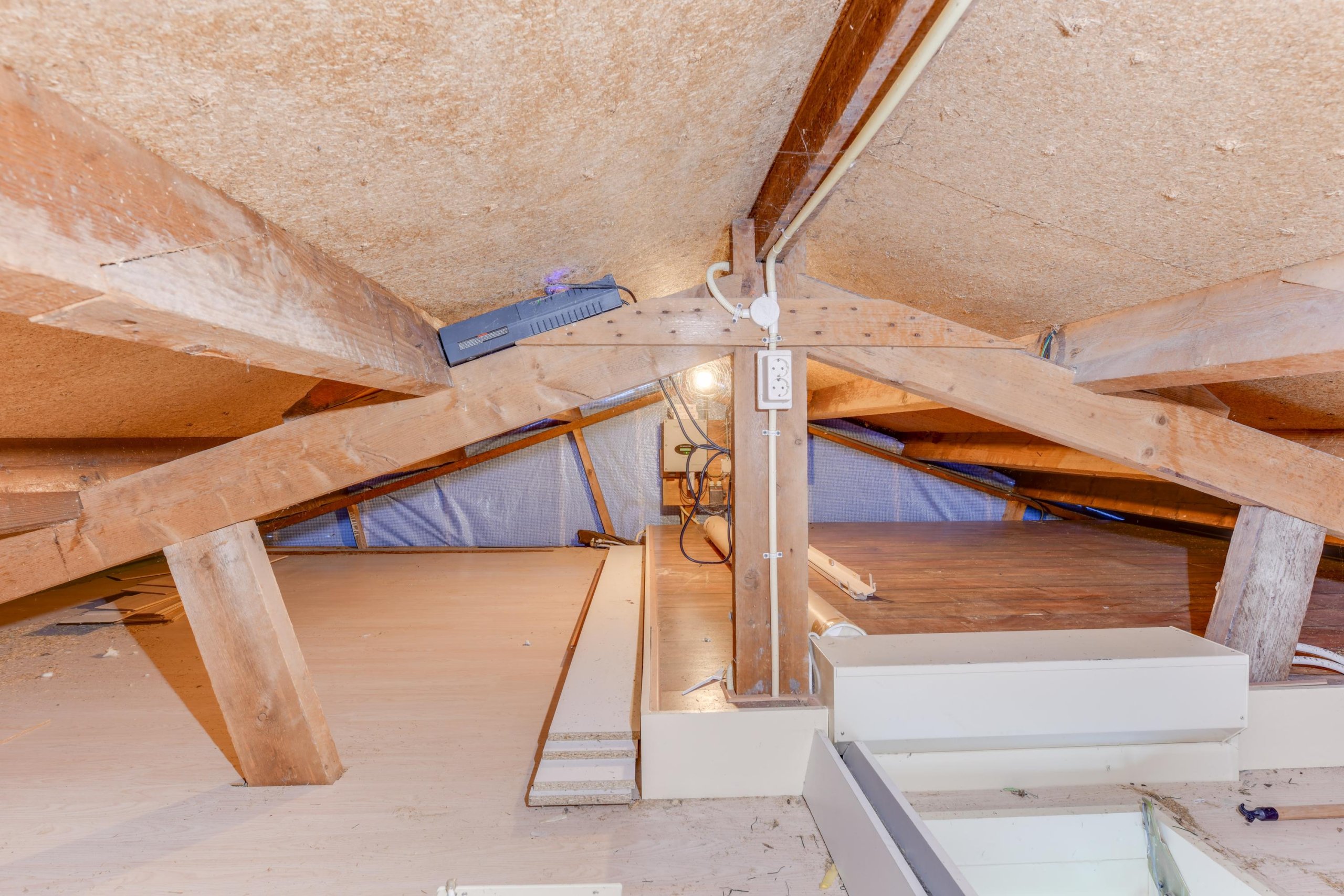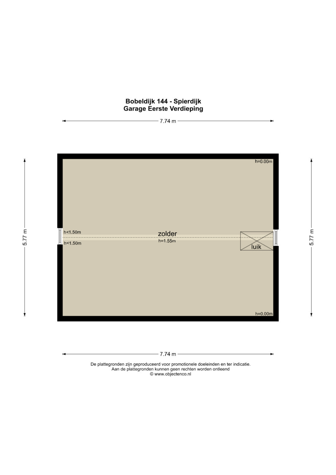 Zolder: Via een vlizotrap toegang tot een zeer ruimte bergzolder.