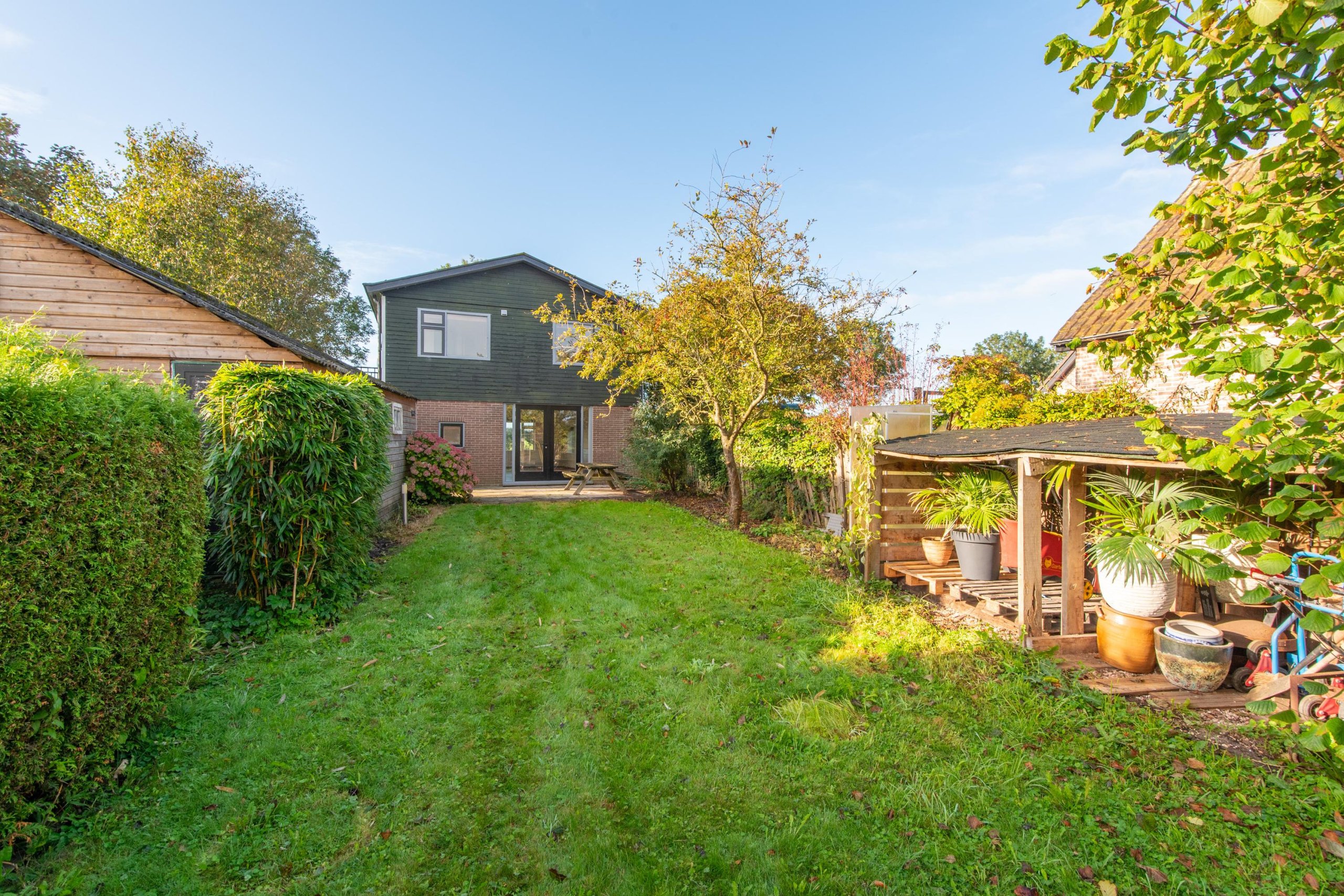 De diepe en brede achtertuin biedt je volop ruimte en beschikt over een ruime garage, momenteel in gebruik als werk- en opslagplaats, maar ook geschikt voor bijvoorbeeld een atelier. Daarnaast is er een houten tuinhuis aanwezig.