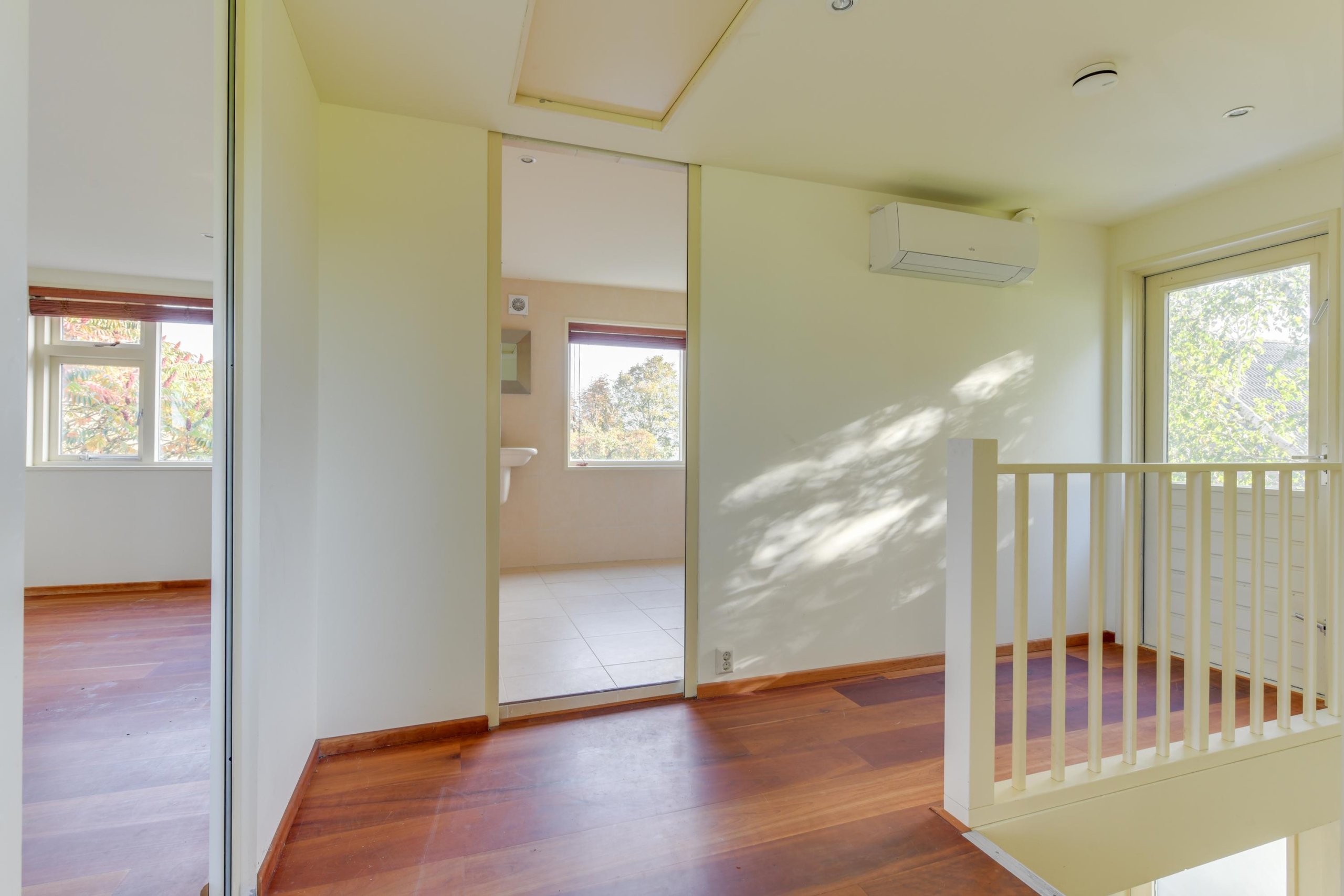 Eerste verdieping; Vanuit de hal via een vaste trap toegang tot de eerste verdieping, overloop welk toegang biedt naar een balkon, twee ruime slaapkamers en een zeer ruime badkamer voorzien van een toilet, inloopdouche en wastafel.