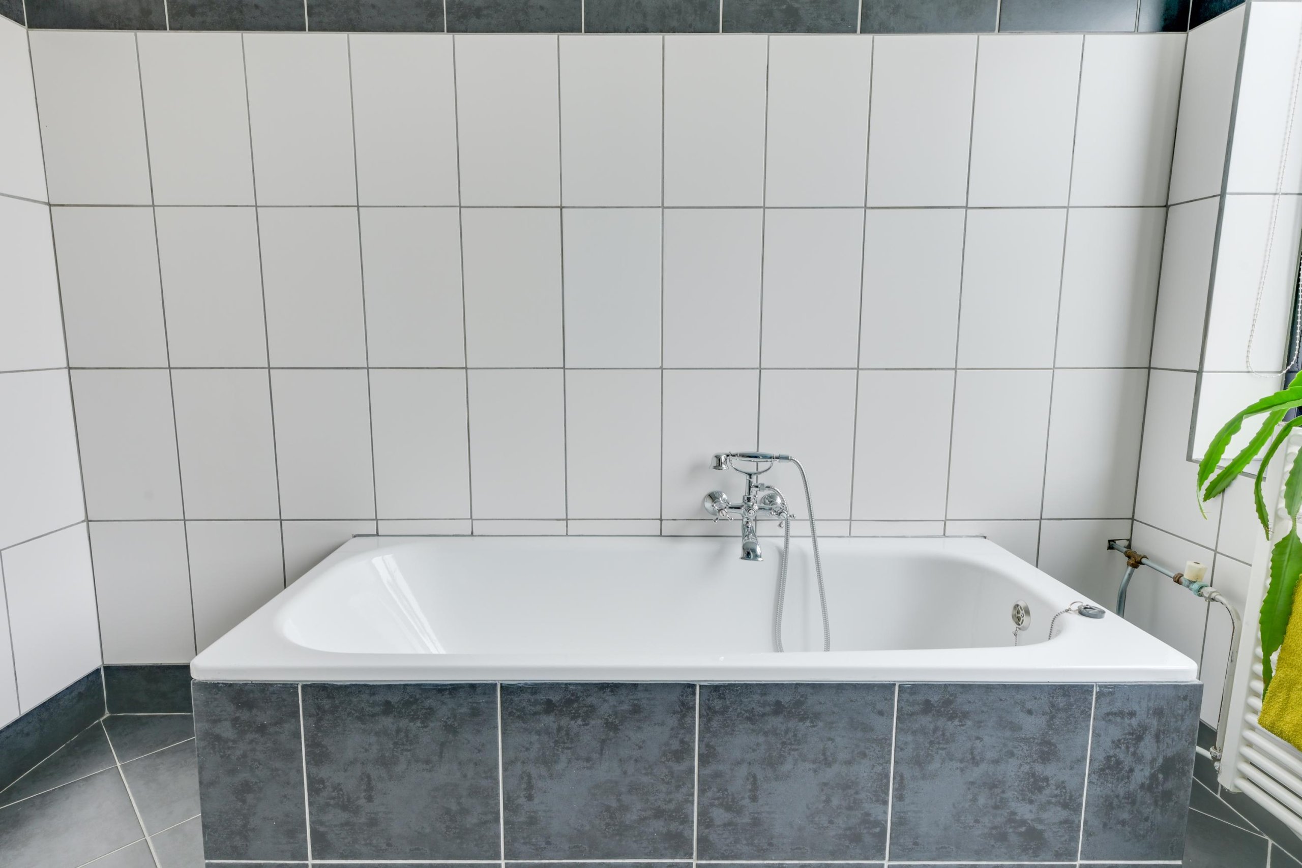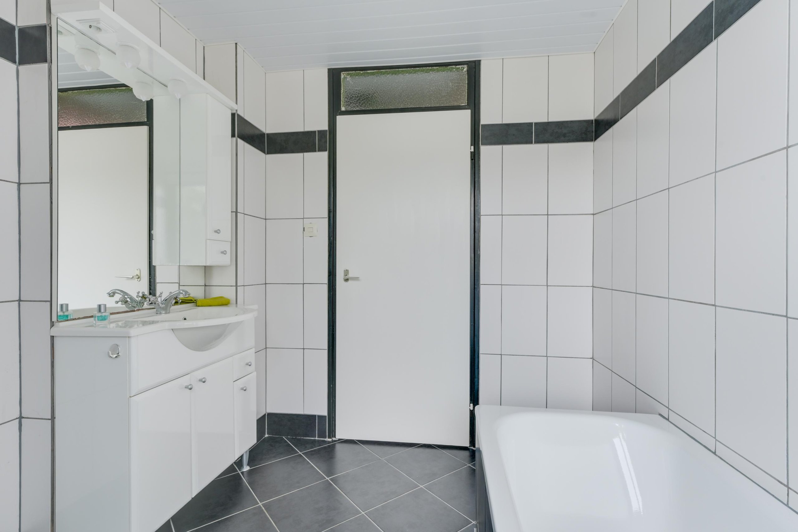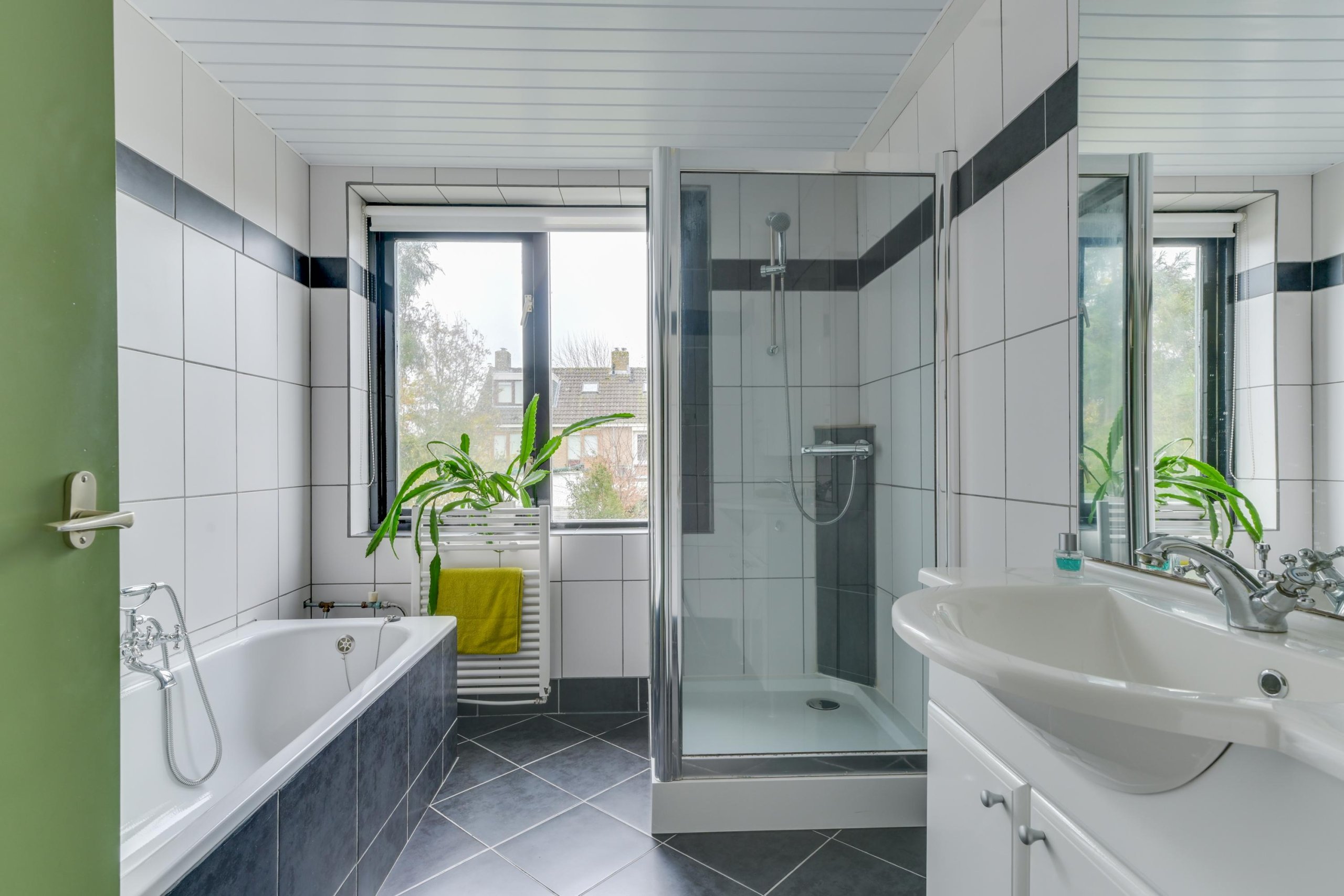 Op de eerste verdieping bevindt zich nu één grote slaapkamer, maar oorspronkelijk waren dit er twee, dit is eenvoudig weer terug te brengen als je dat wenst. Verder zijn er twee badkamer de eerste badkamer is de oorspronkelijke badkamer van de woning en deze is voorzien van een douche, toilet, wastafel en een raam. De tweede badkamer is later in de woning gerealiseerd en is voorzien van een ligbad, douche, wastafelmeubel, vloerverwarming, designradiator en eveneens een raam.