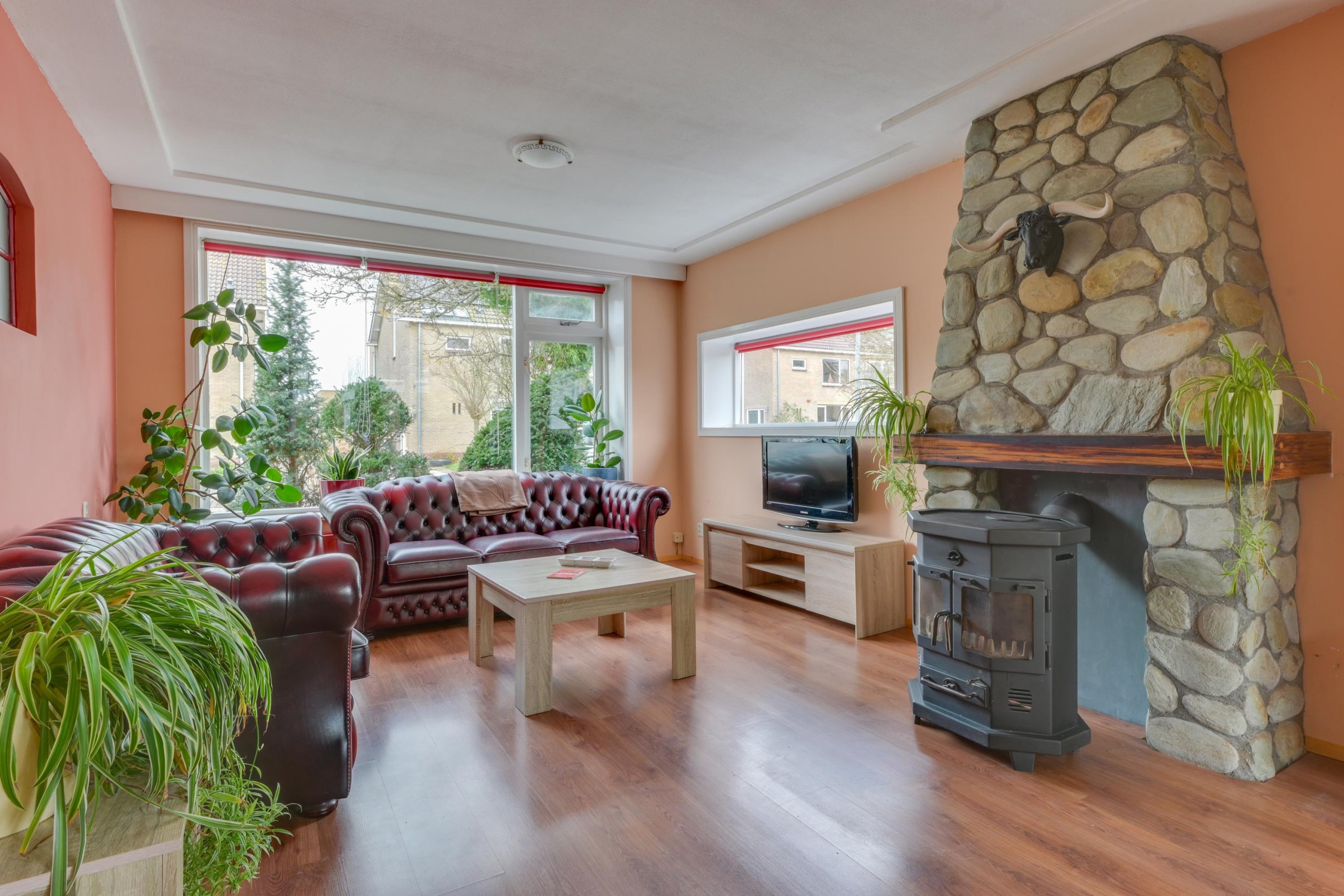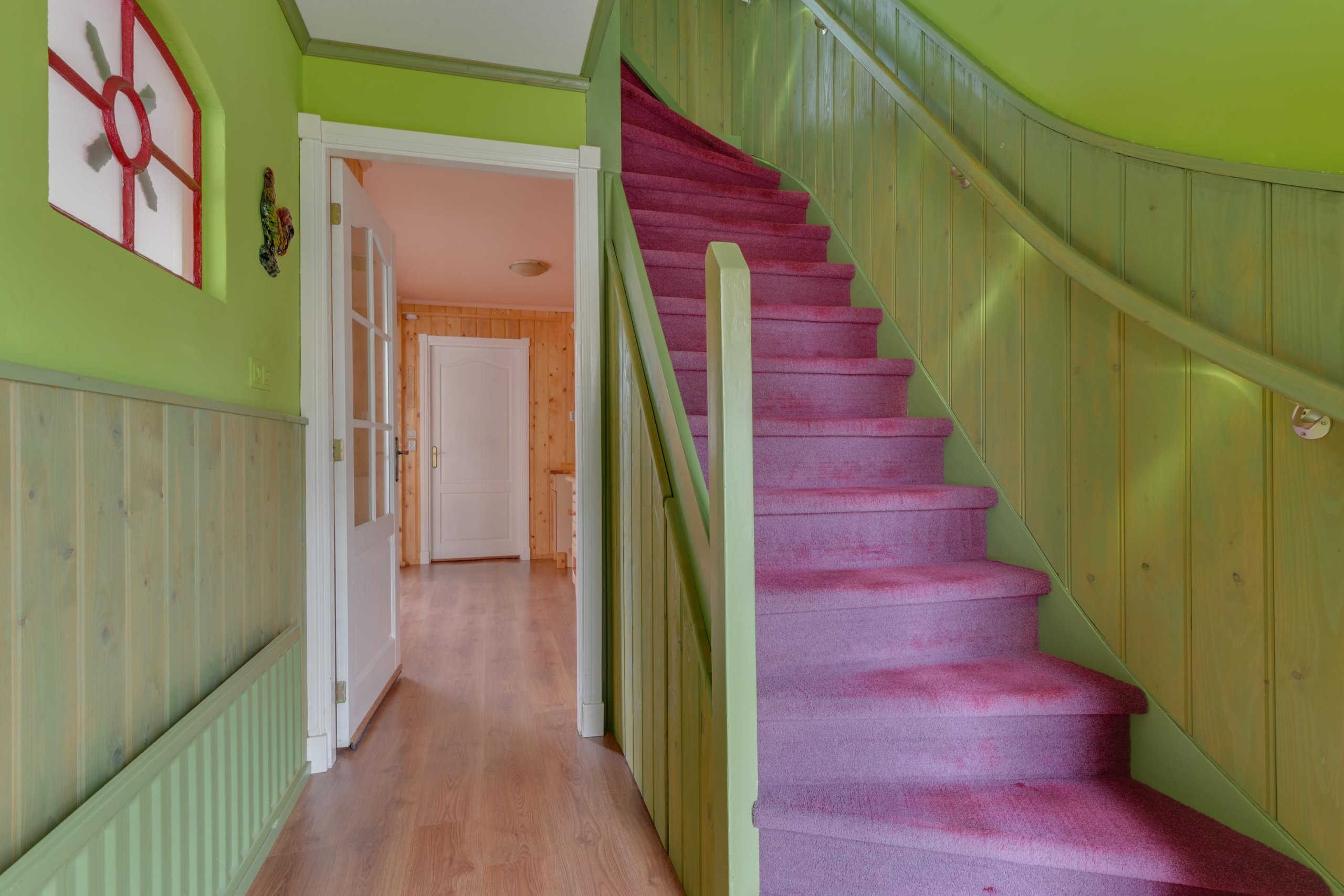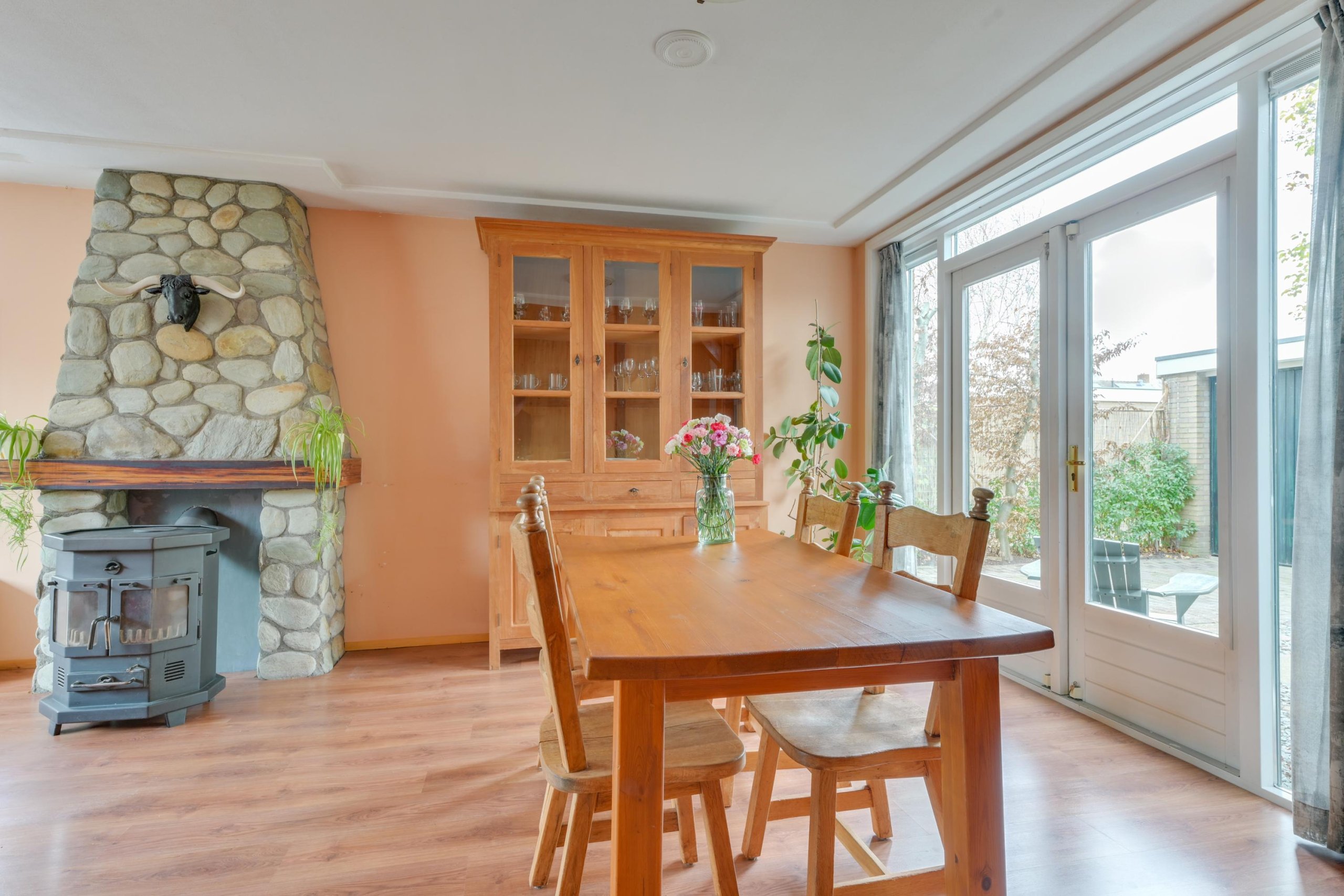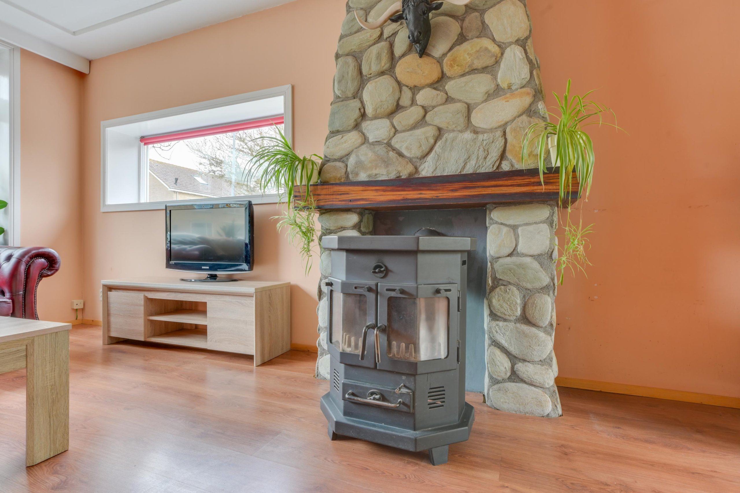 Via de voortuin loop je naar de entree van de woning. In de hal vind je de meterkast, trapkast en de trapopgang naar de eerste verdieping. Vanuit de hal stap je binnen in het leefgedeelte met de open keuken aan de acherzijde. De houten keuken is ingericht met een 4-pits gaskookplaat, afzuigkap, losse koelkast en een met grenen hout beklede wand. De doorzonwoonkamer is door het extra raam aan de zijkant van de woning lekker licht. De laminaatvloer loopt door over de gehele begane grond en er staat een houtkachel voor extra sfeer en fijne warmte. Via dubbele deuren stap je zo de achtertuin in. Aangrenzend aan de keuken tref je de bijkeuken, voorzien van een wastafel, wasmachineaansluiting, het toilet en een extra deur naar de tuin.