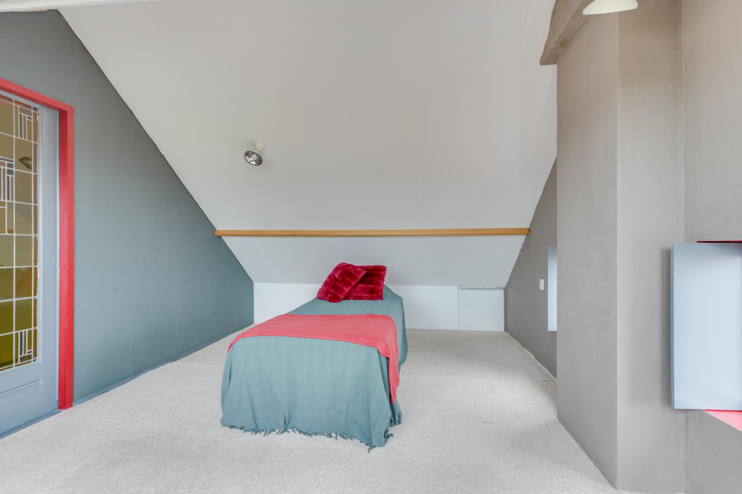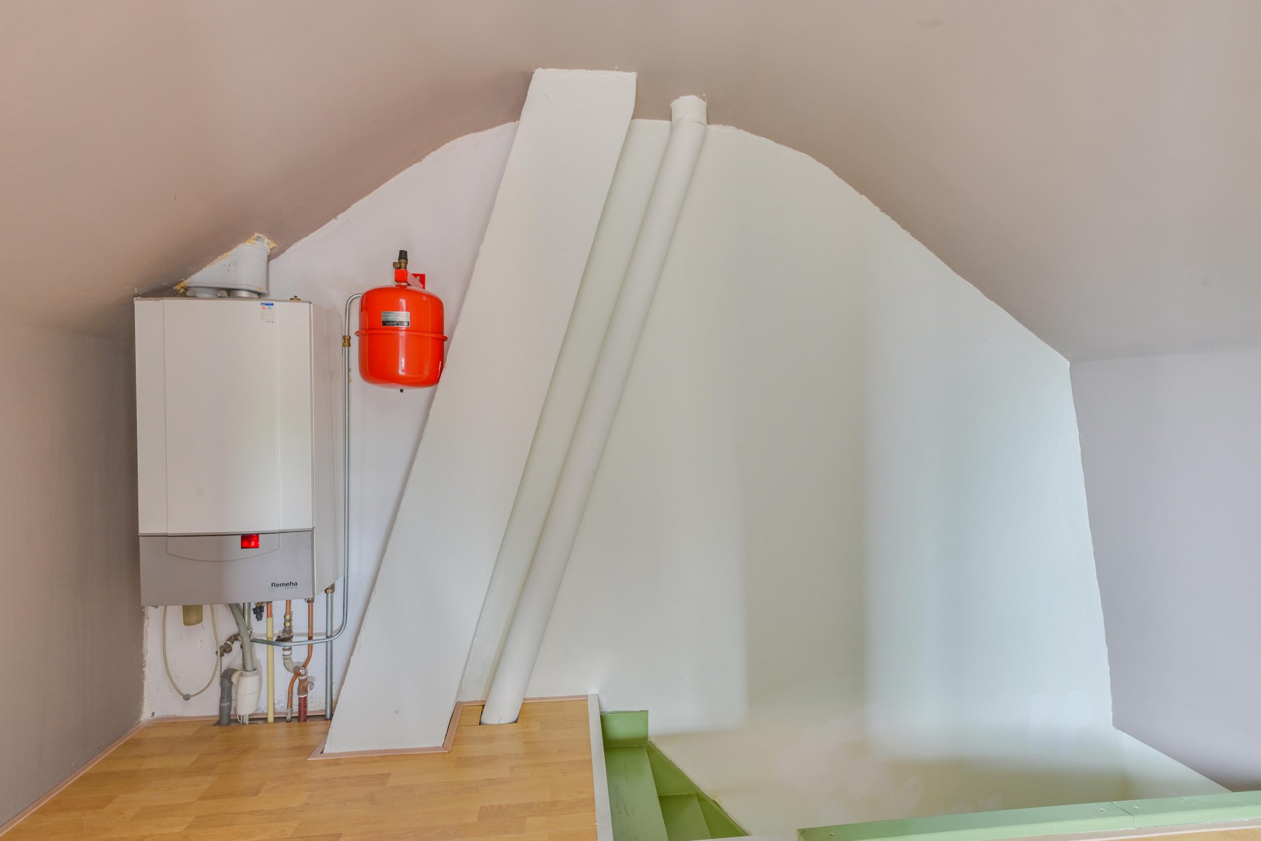 Via de vaste trap bereik je de tweede verdieping met een voorzolder waar de cv-installatie staat én een ruime slaapkamer met dakkapel en een zijraam.