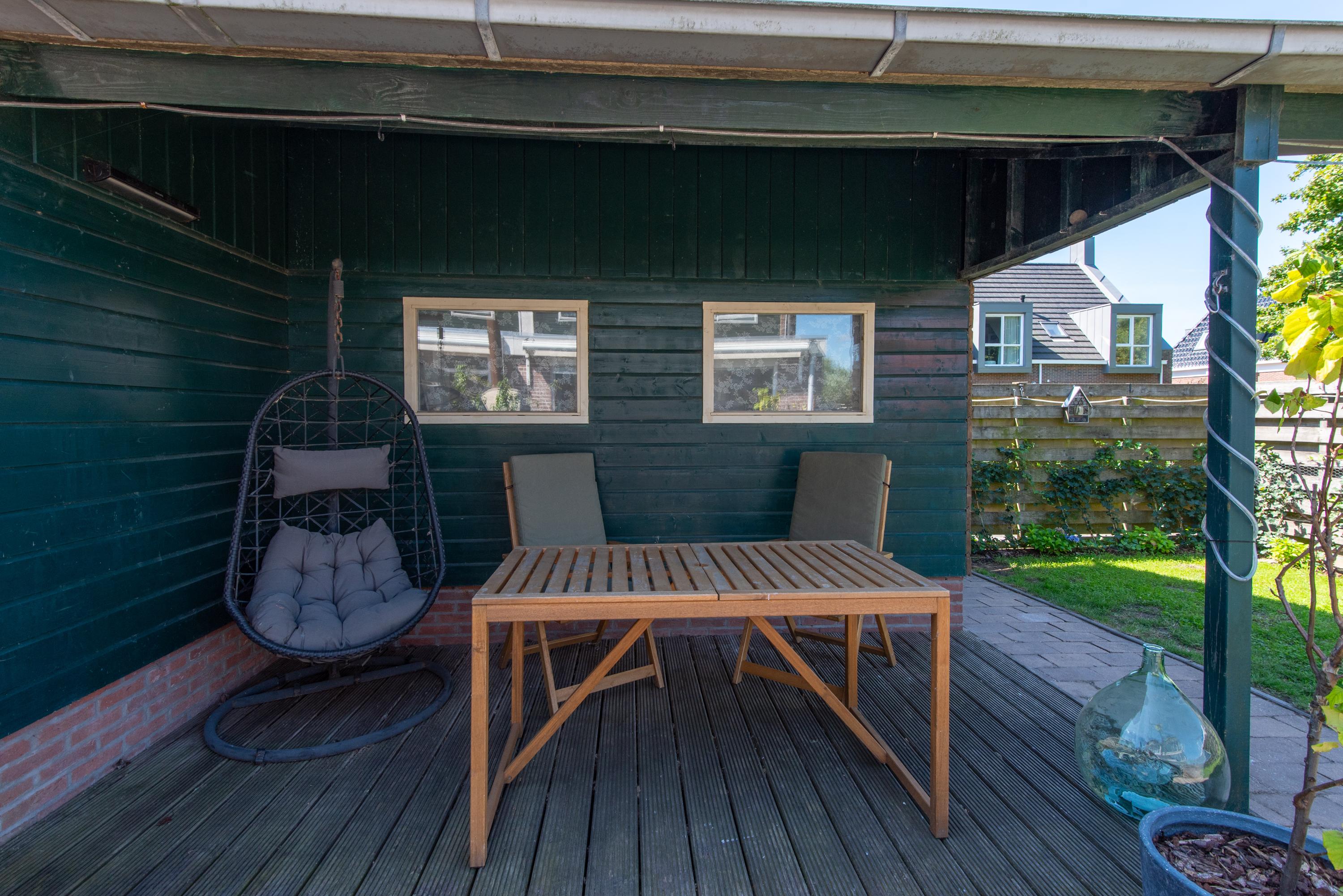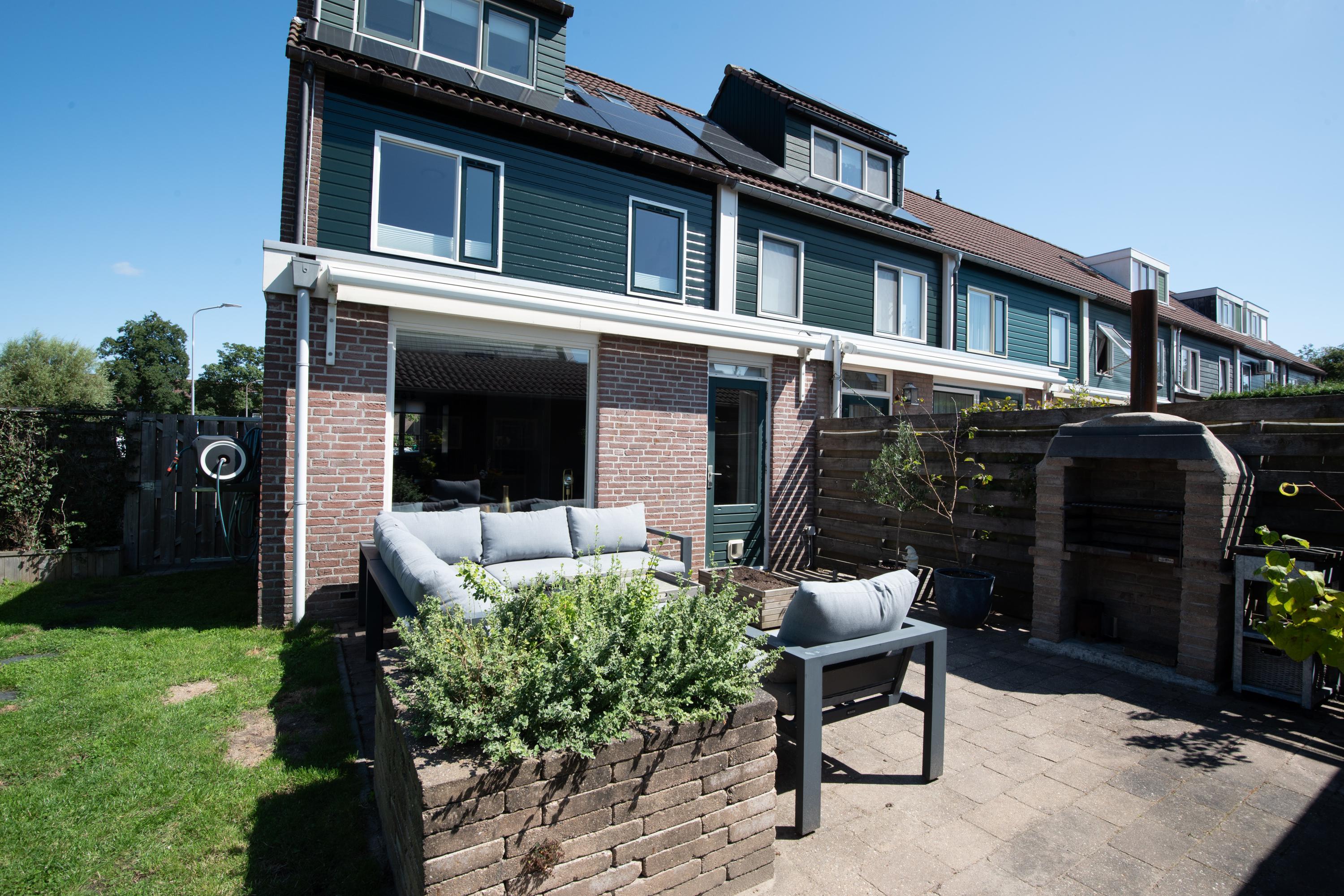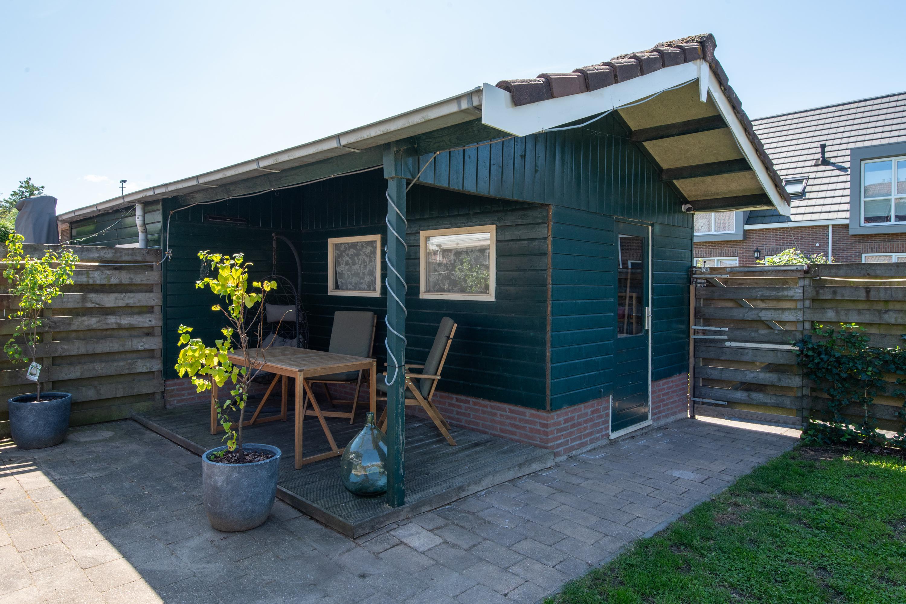 De achtertuin ligt op het zuidwesten en is keurig aangelegd: onderhoudsvriendelijk, maar met genoeg sfeer om hier het hele voorjaar en zomer van te genieten. Met het elektrisch zonnescherm creëer je eenvoudig een schaduwrijk plekje. Achterin de tuin staat een houten berging met elektra en een achterom. De voortuin is eveneens verzorgd aangelegd en naast de woning parkeer je je auto op eigen terrein. Ideaal!