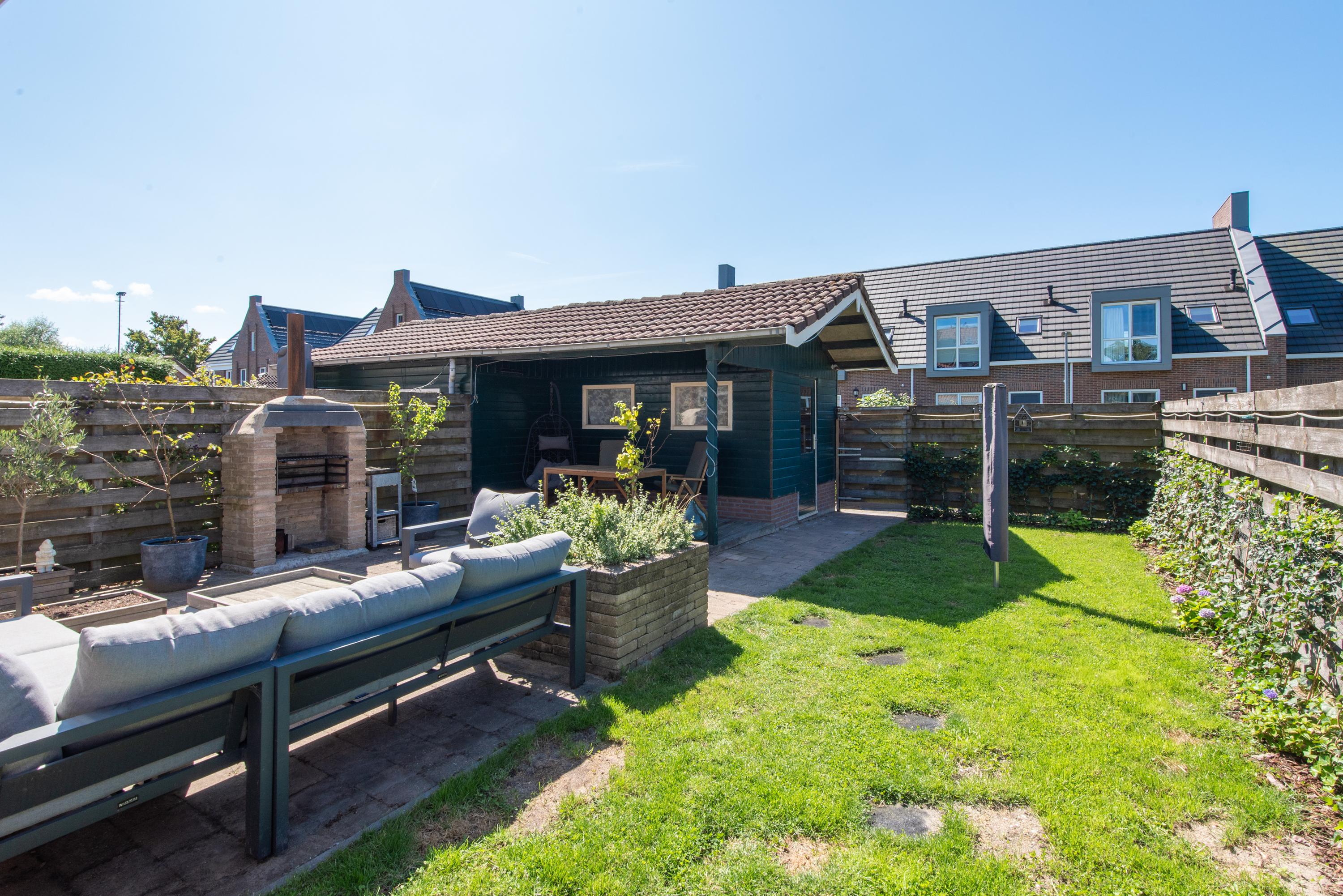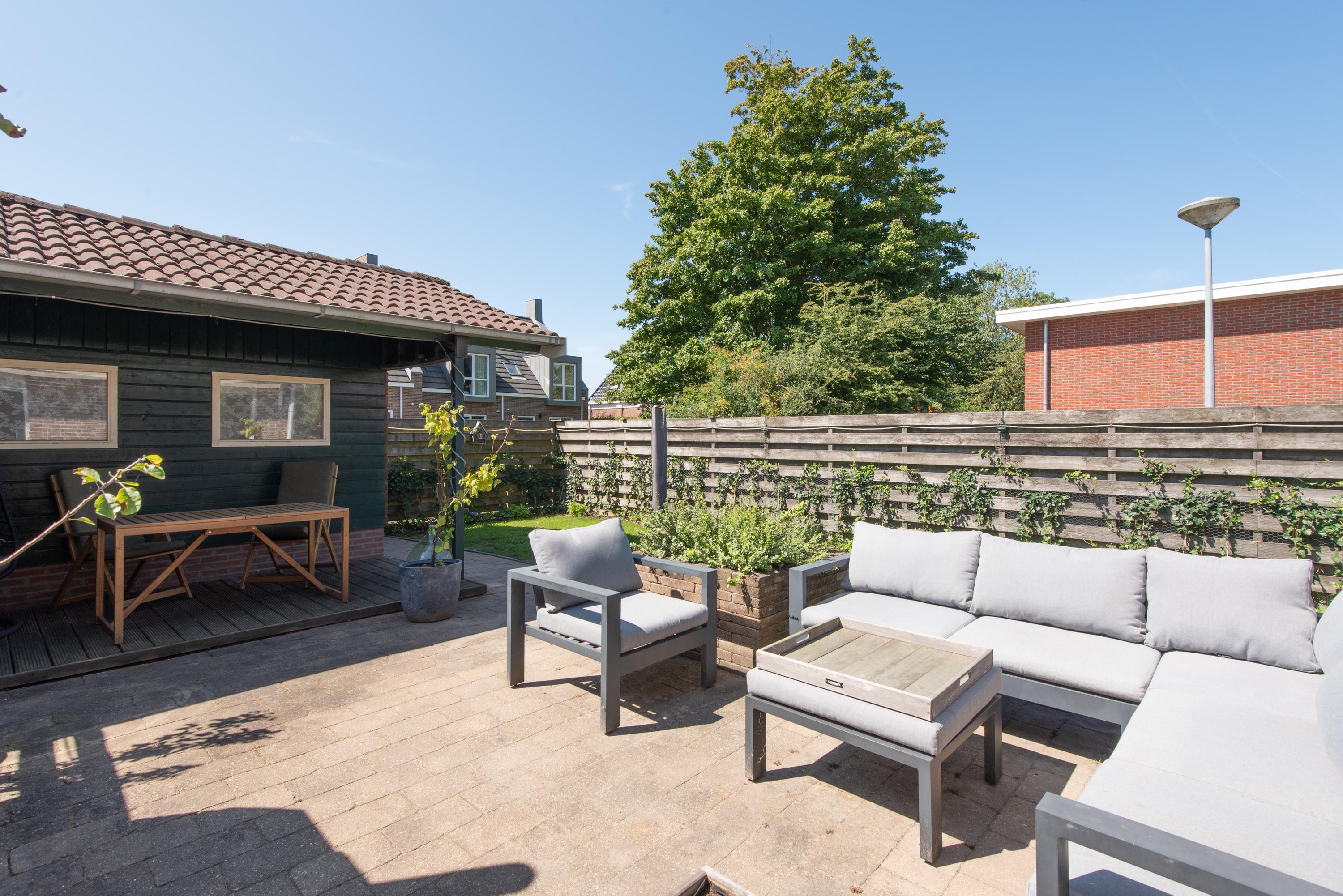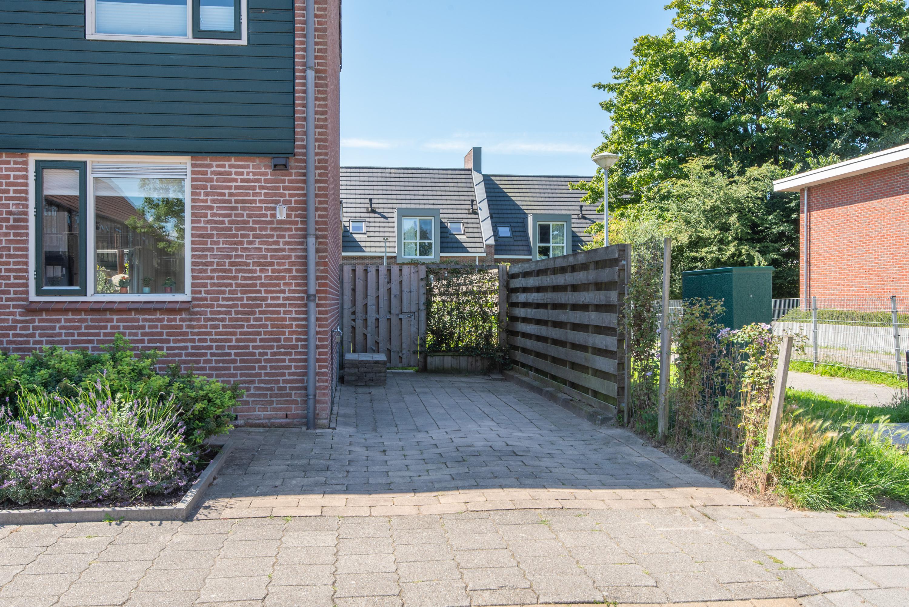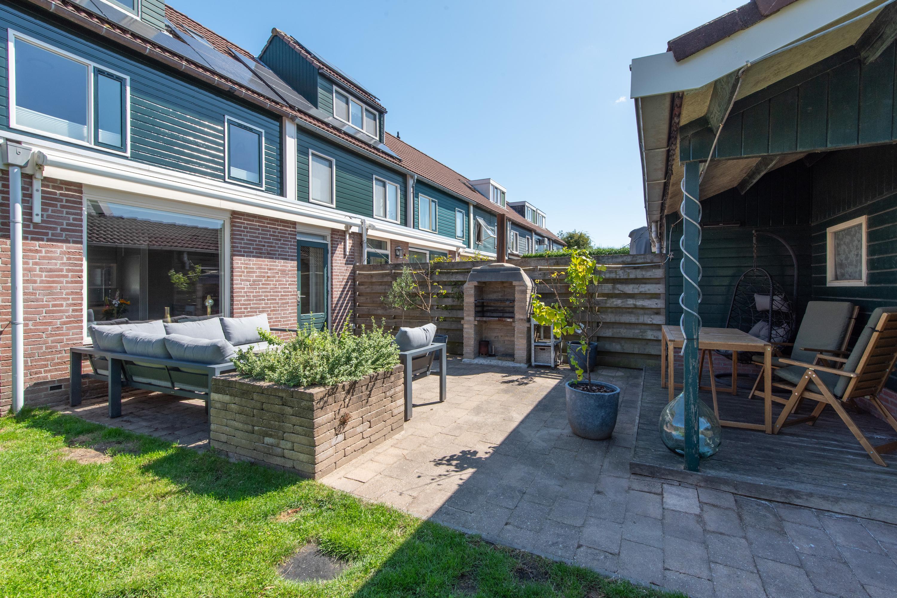 De achtertuin ligt op het zuidwesten en is keurig aangelegd: onderhoudsvriendelijk, maar met genoeg sfeer om hier het hele voorjaar en zomer van te genieten. Met het elektrisch zonnescherm creëer je eenvoudig een schaduwrijk plekje. Achterin de tuin staat een houten berging met elektra en een achterom. De voortuin is eveneens verzorgd aangelegd en naast de woning parkeer je je auto op eigen terrein. Ideaal!