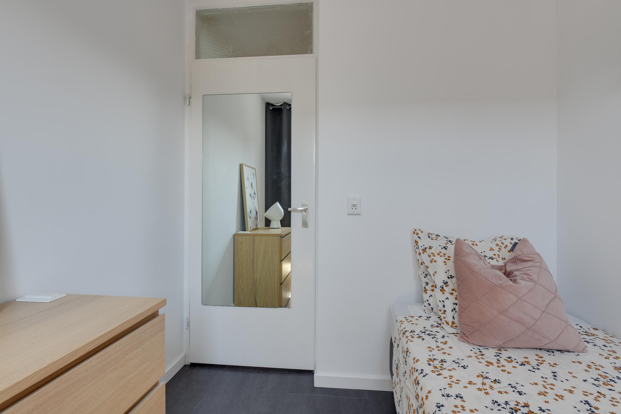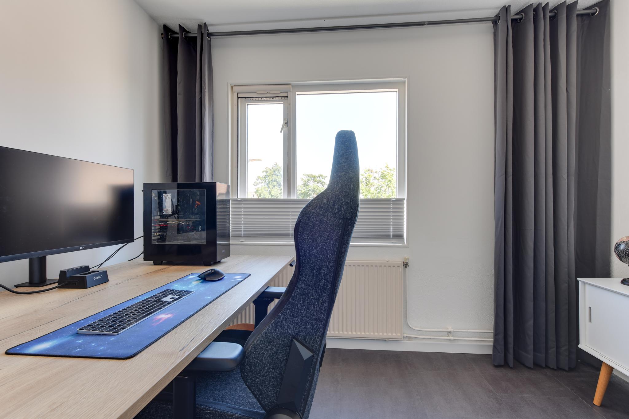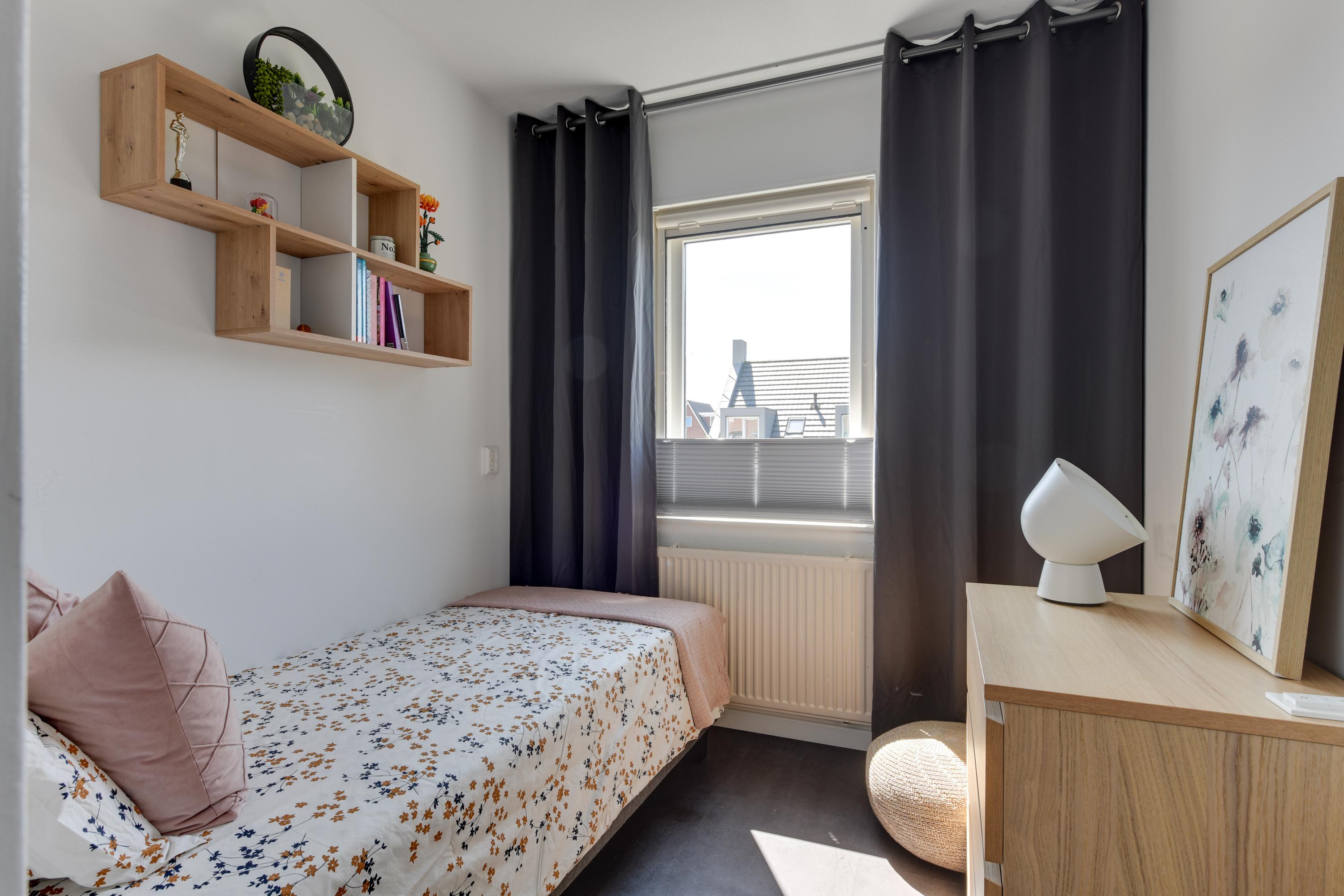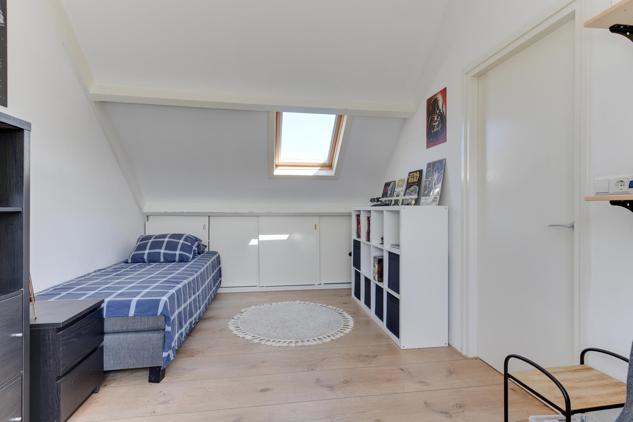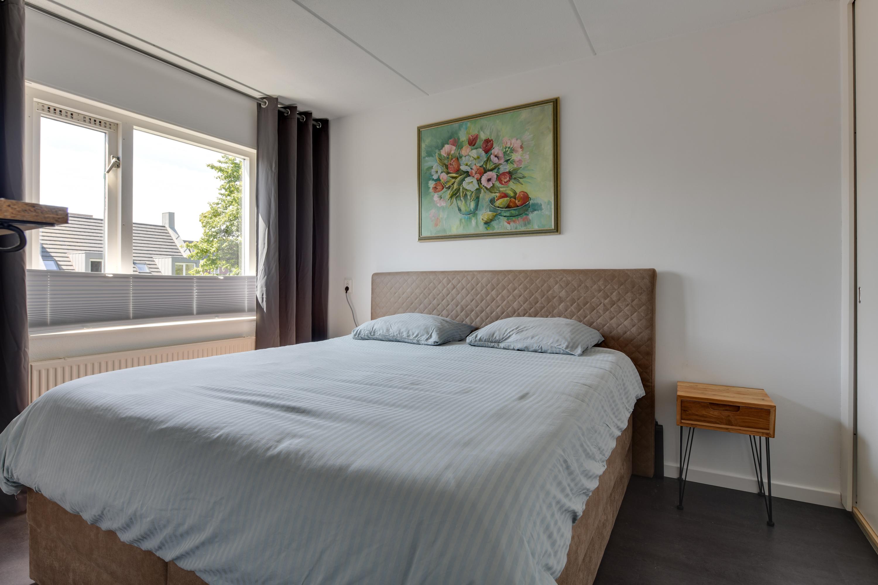 Op de eerste verdieping bevinden zich drie ruime slaapkamers, allen voorzien van vinyl. De hoofdslaapkamer aan de achterzijde beschikt over een vaste kast. De twee andere kamers zijn in gebruik als kinderkamer en als ruime werk-/slaapkamer.