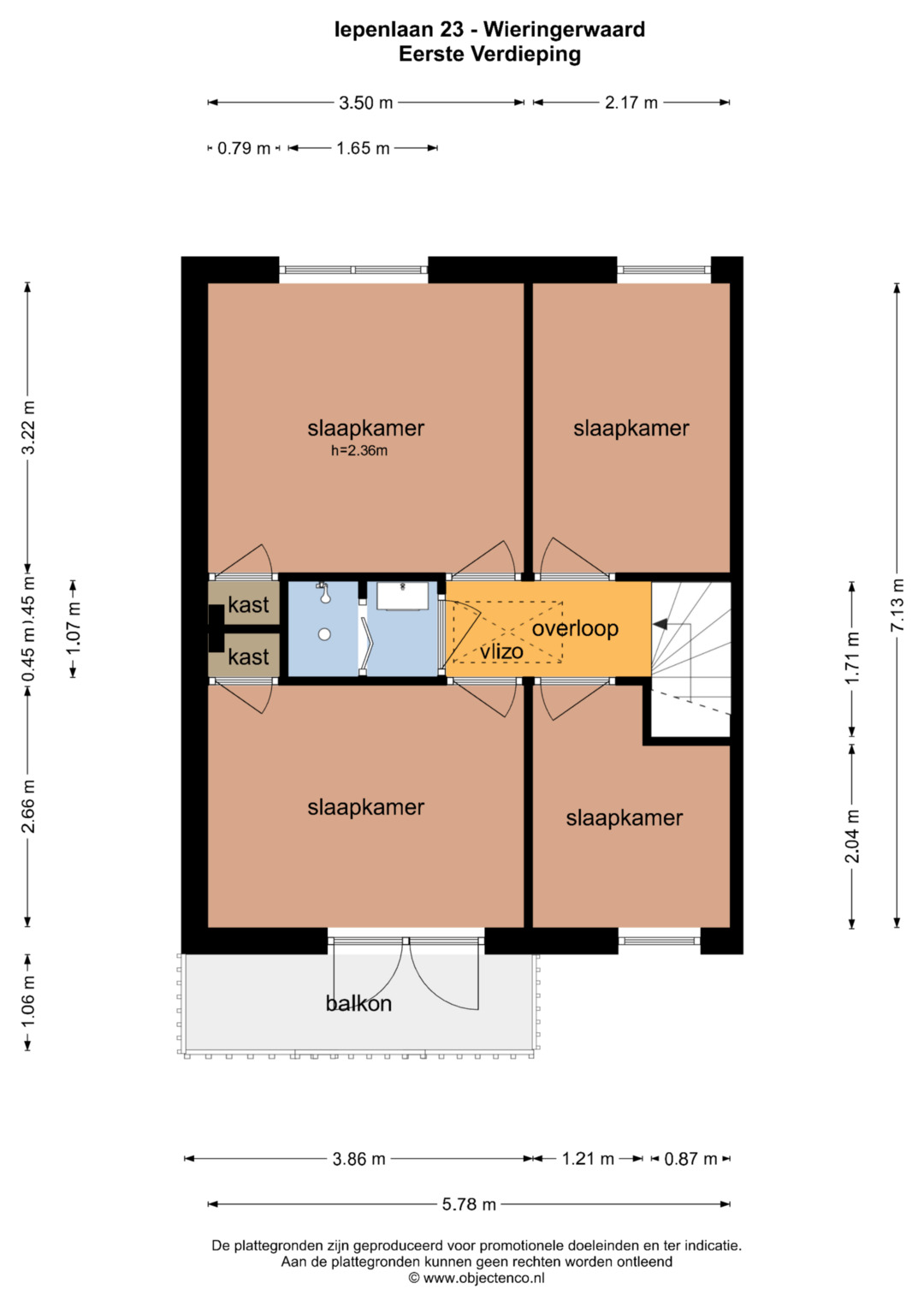 Eerste etage: Op de eerste etage bevinden zich 4 slaapkamers. Allen met rechte gevels. Tevens tref je hier een badkamer aan voorzien van een douche en wastafelmeubel.