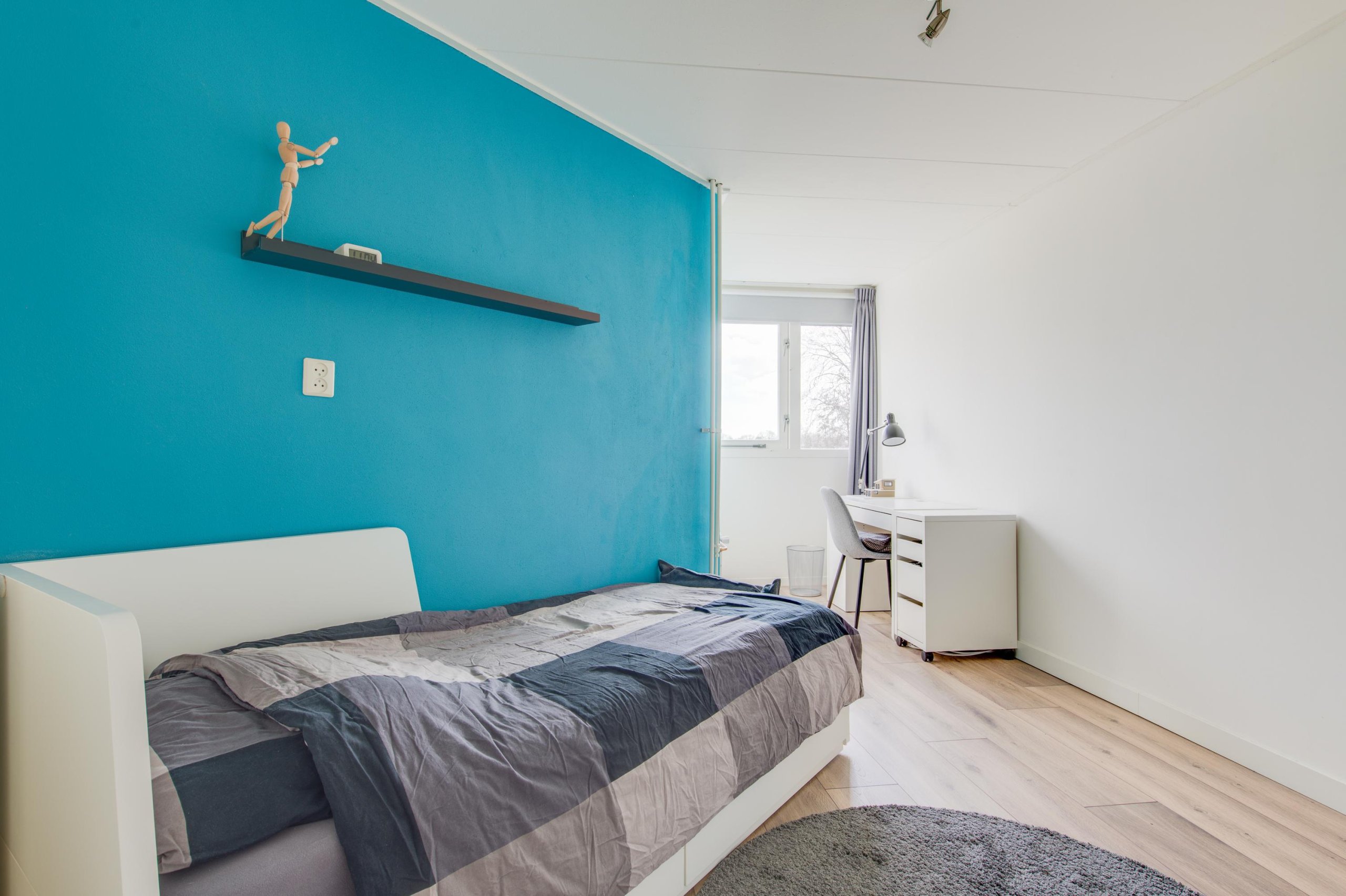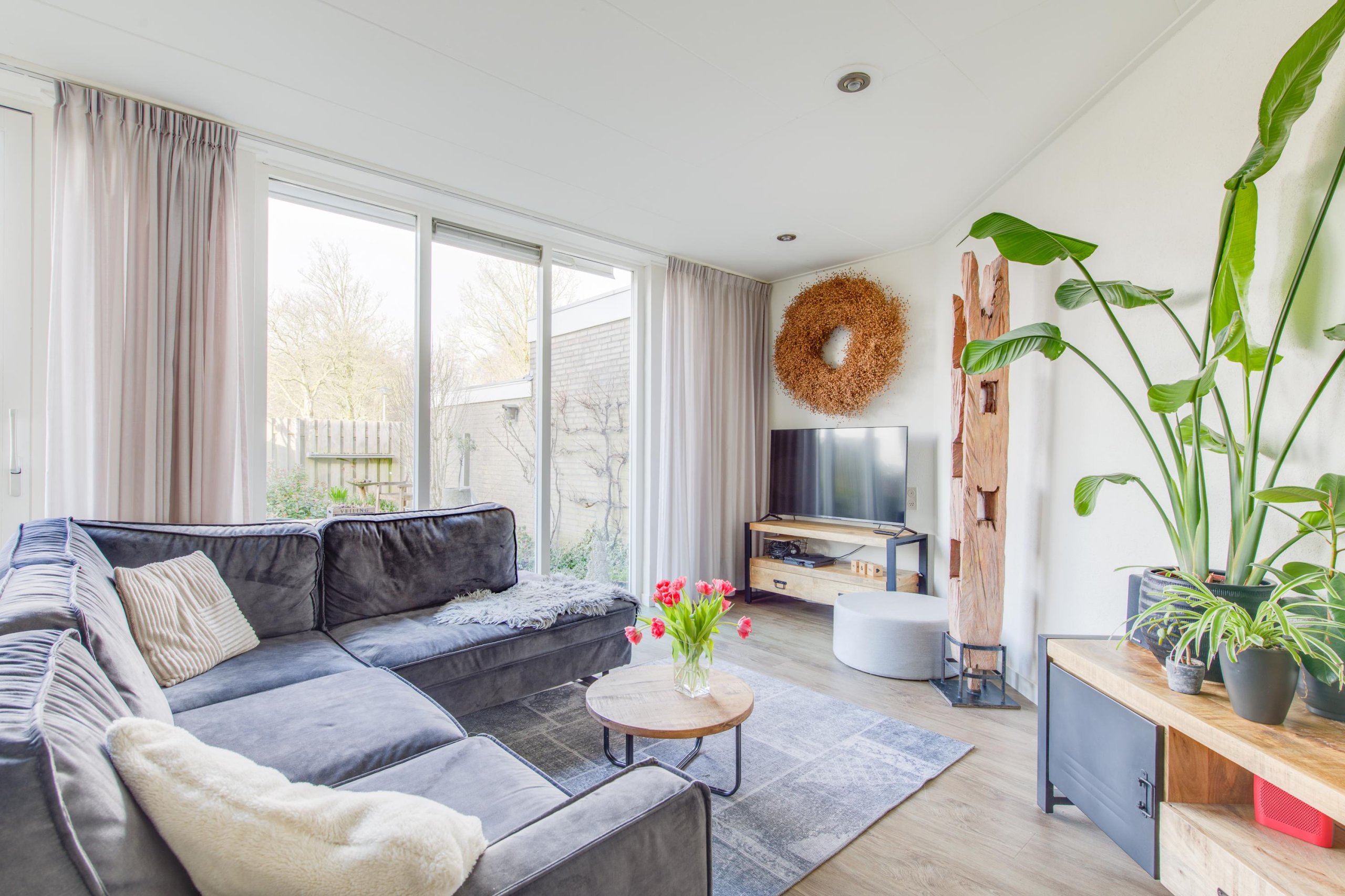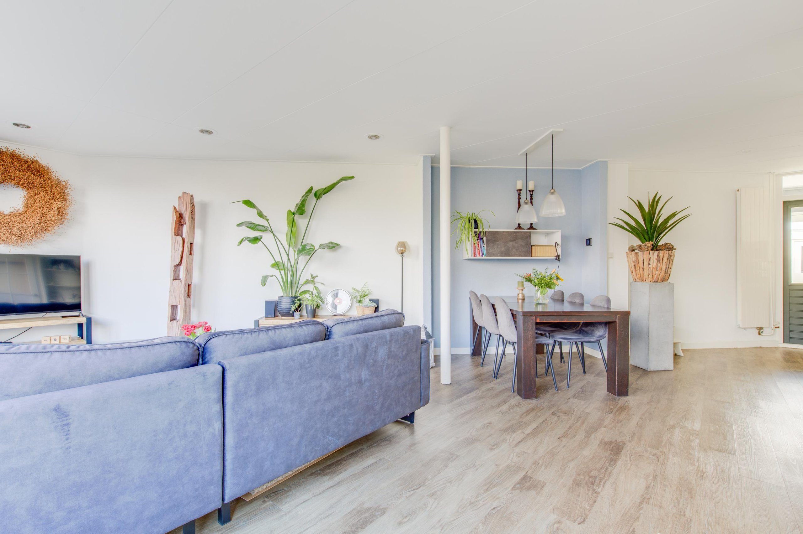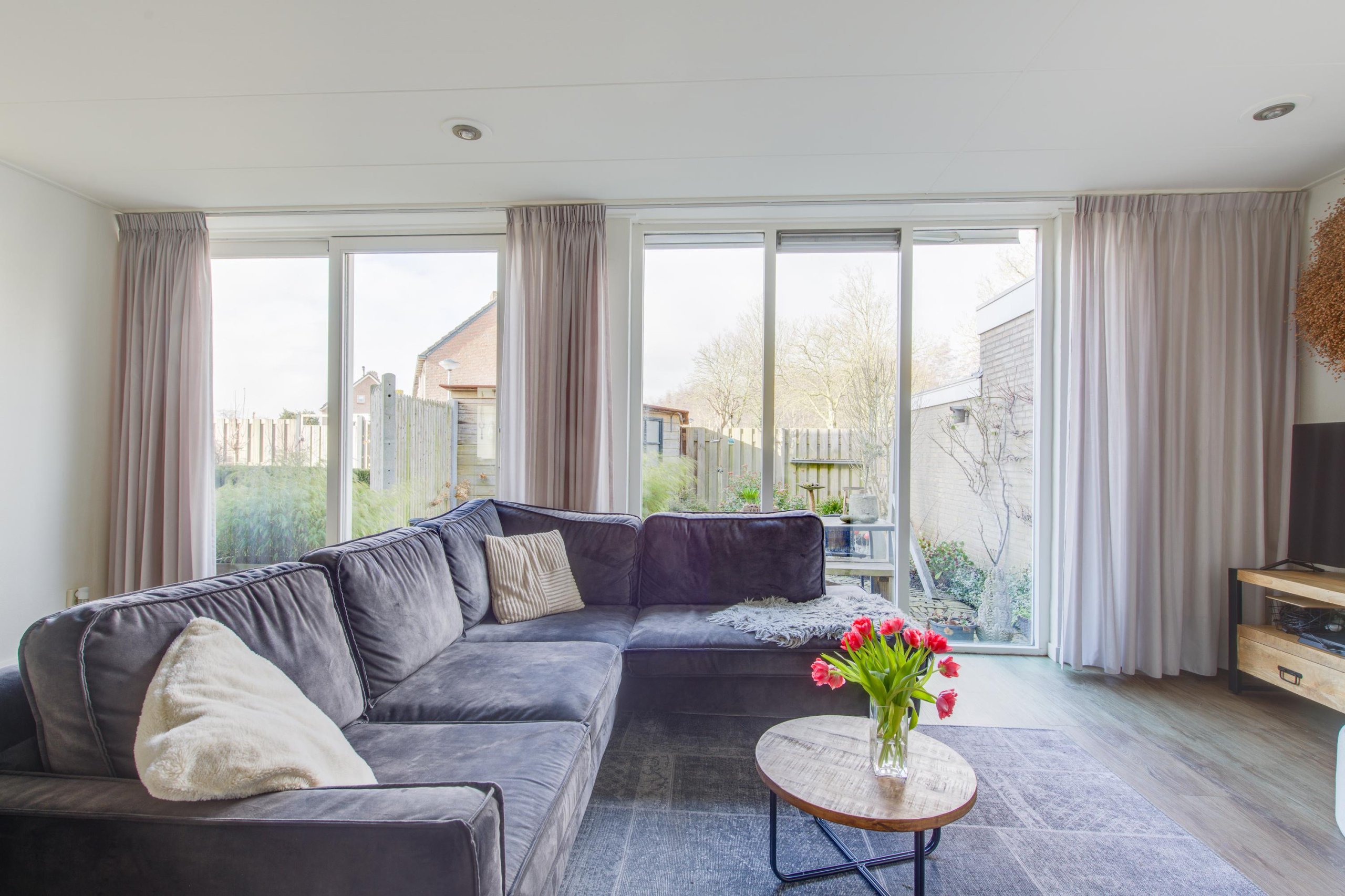 De woonkamer is licht en praktisch ingedeeld en beschikt over 1 ruime inbouwkast en 2 open kasten voor extra bergruimte. Via de schuifpui is de voortuin bereikbaar. Tevens is er een elektrisch zonnescherm aanwezig.